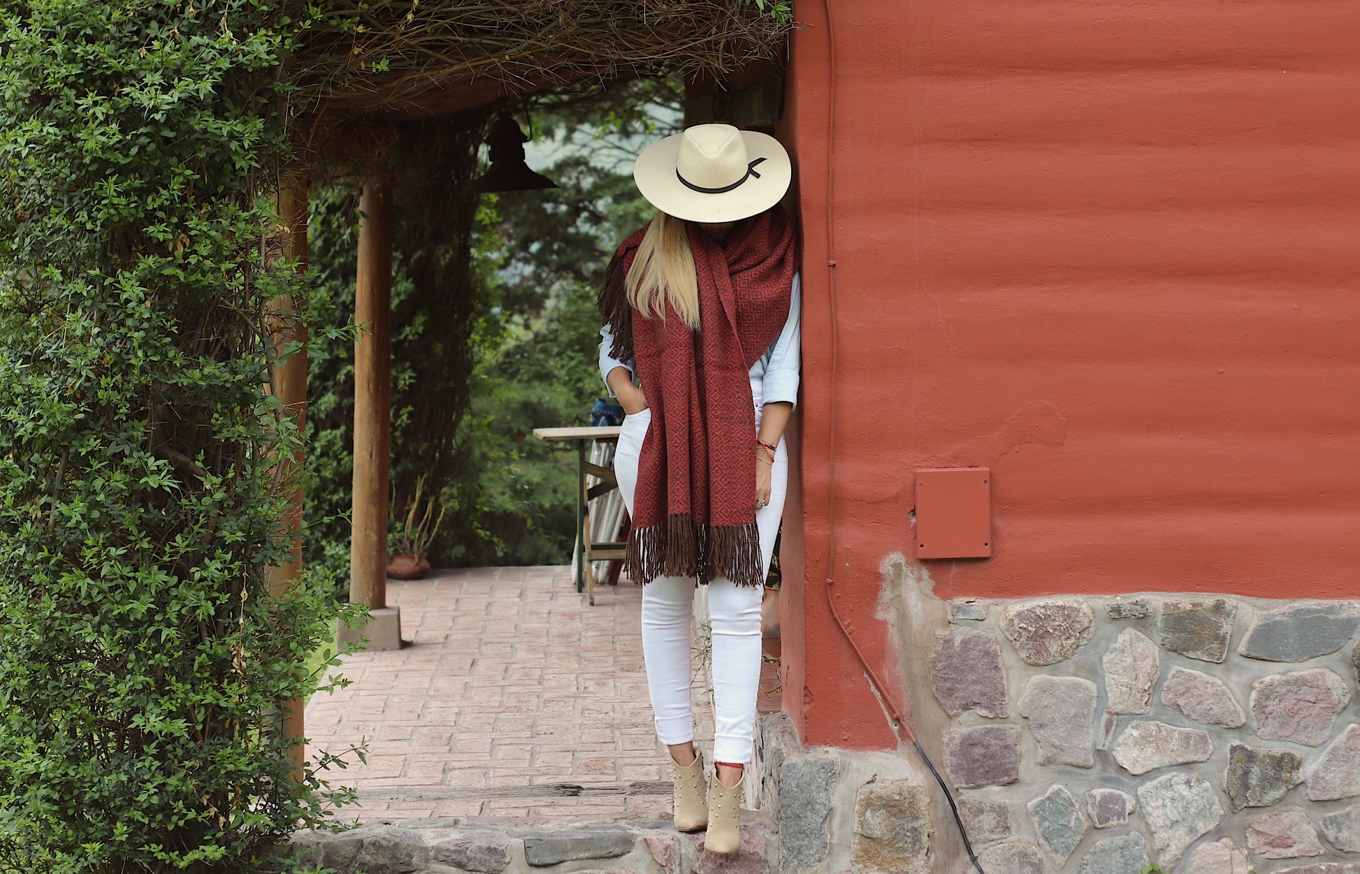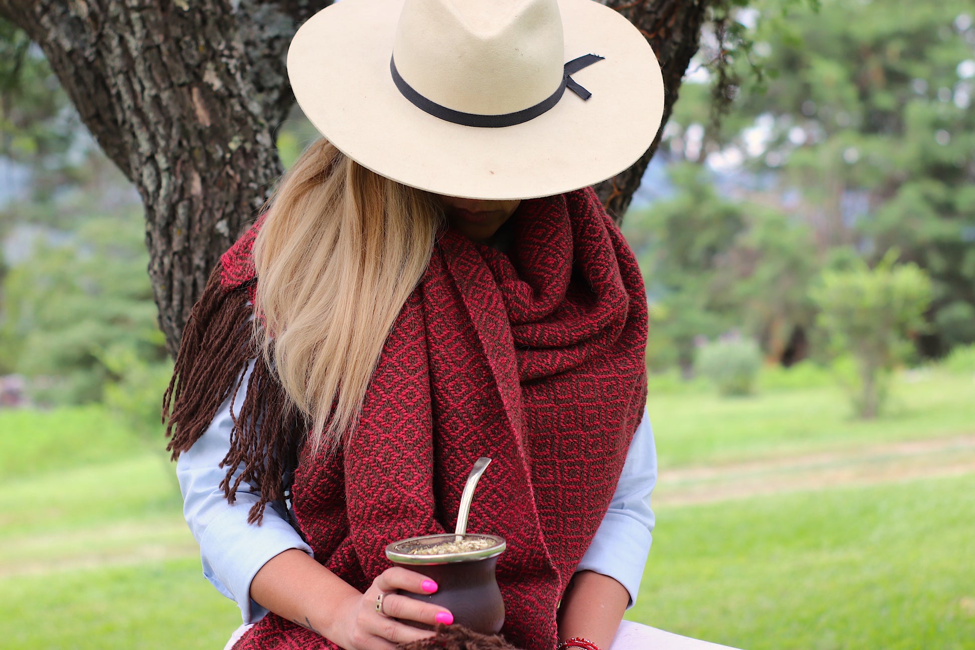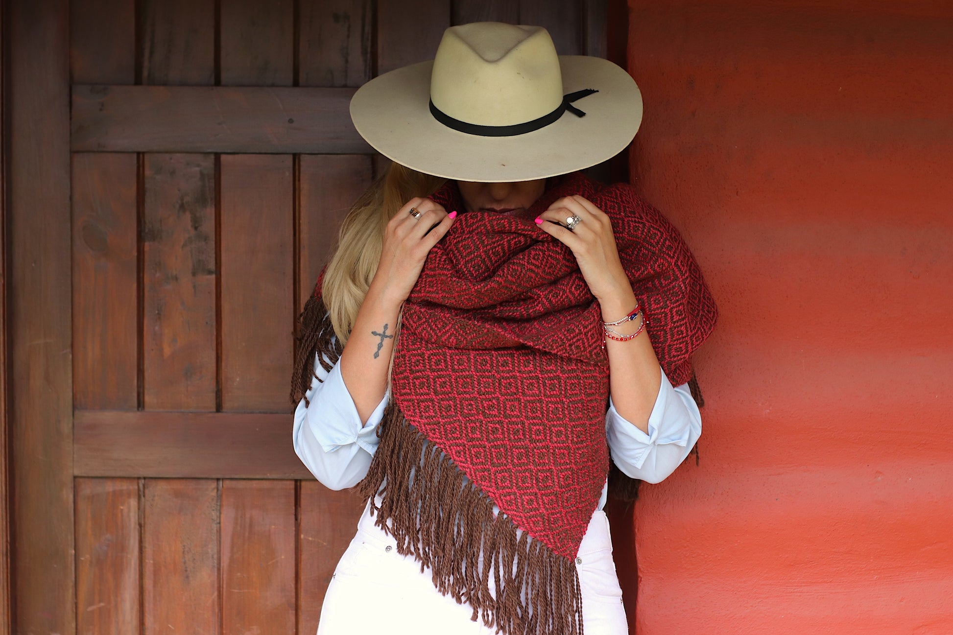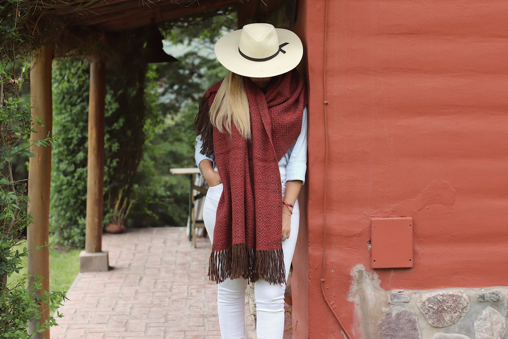 Manta AIRAMPO es parte de la colección "Las Marias" hilada de fibra de llama baby y hecha en telar con técnica Ojo de Perdiz.