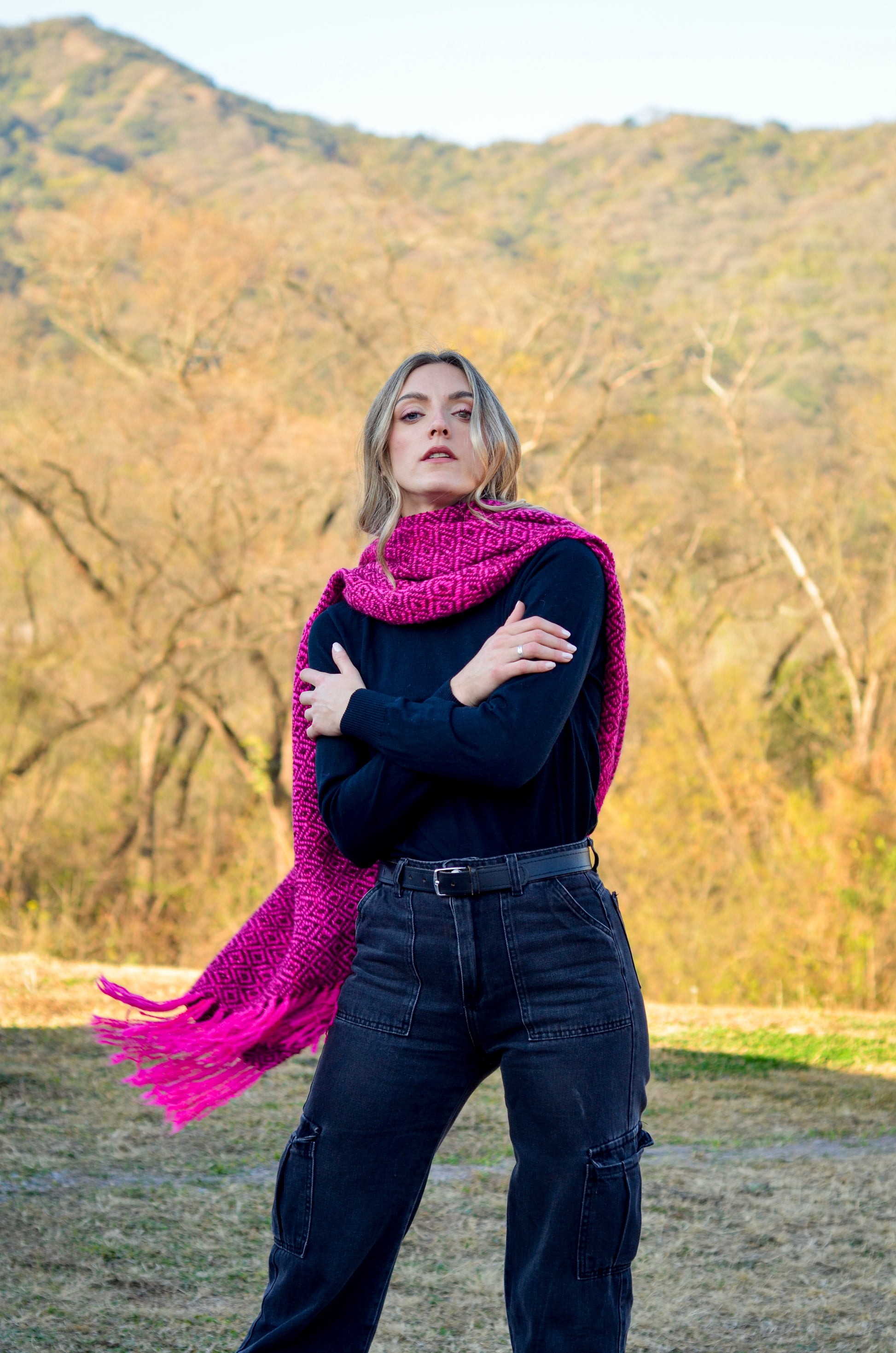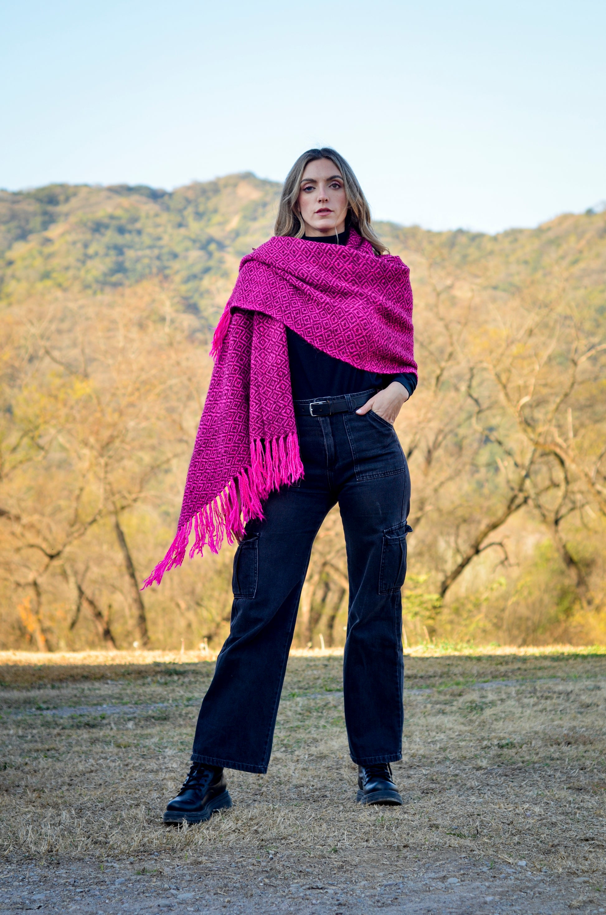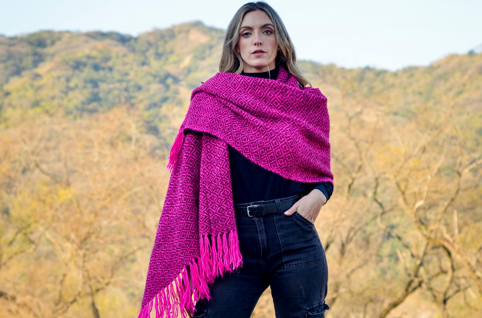 Manta "Camila" es parte de la colección "Las Marias" " hilada de fibra de llama baby y hecha en telar con técnica espiga.