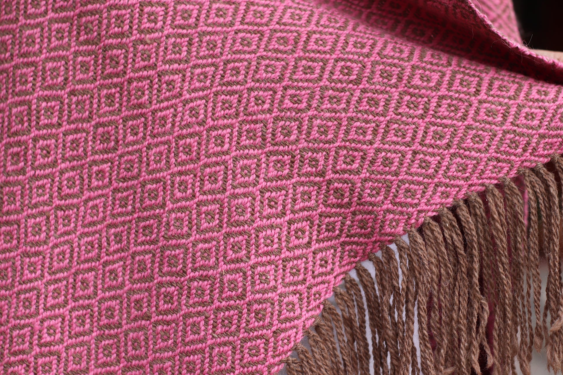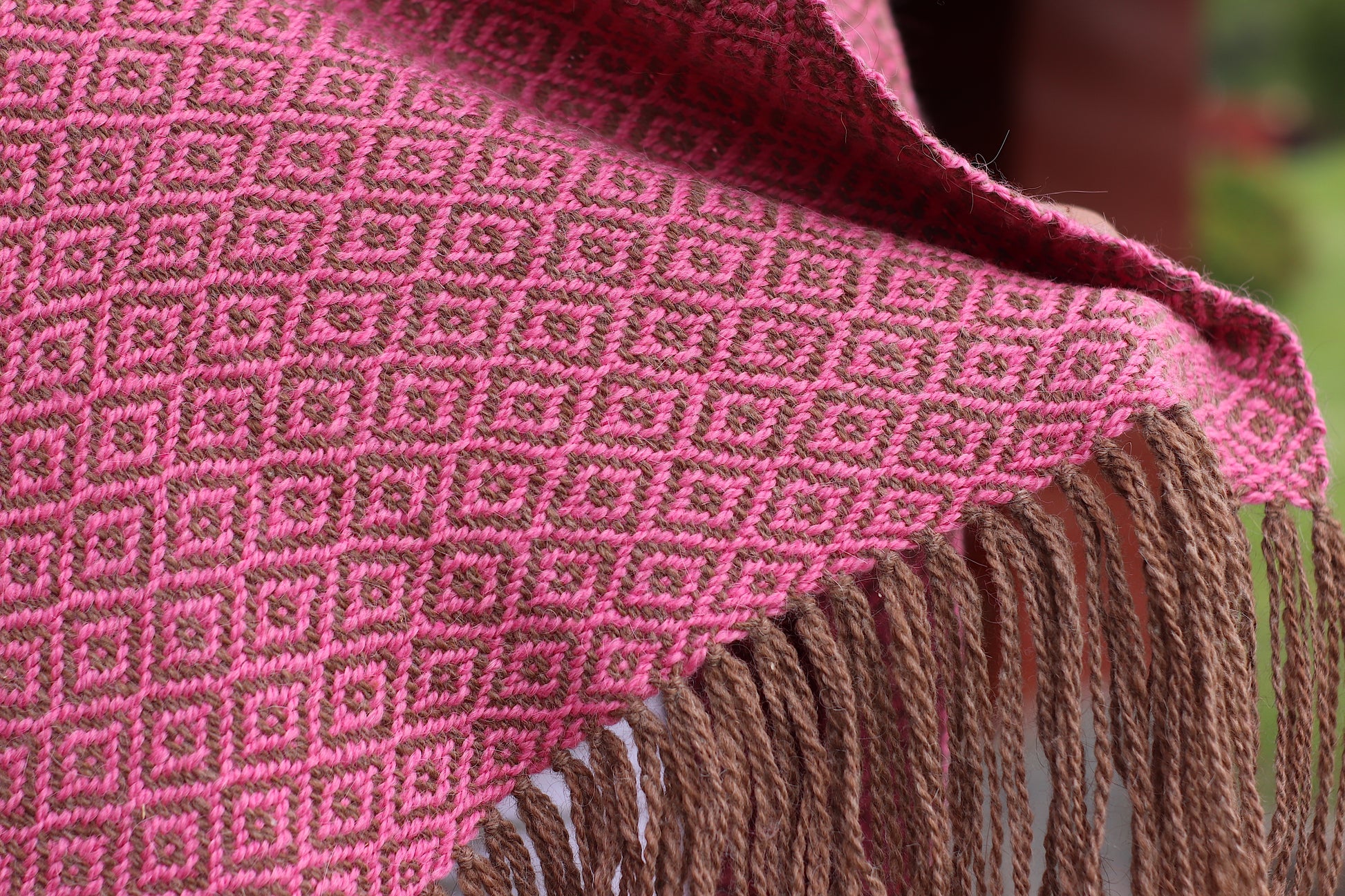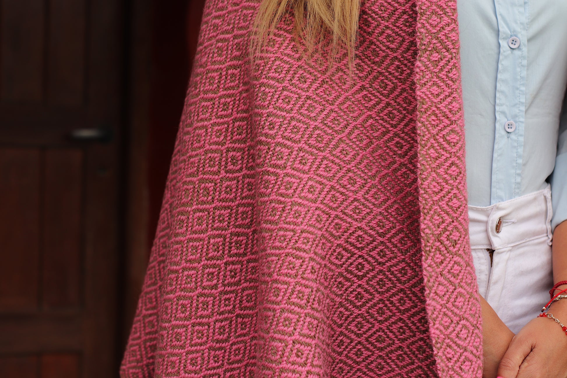 Manta CARAHUASI es parte de la colección "Las Vicuñas" " hilada de fibra de llama baby y hecha en telar con técnica Ojo de Perdiz.