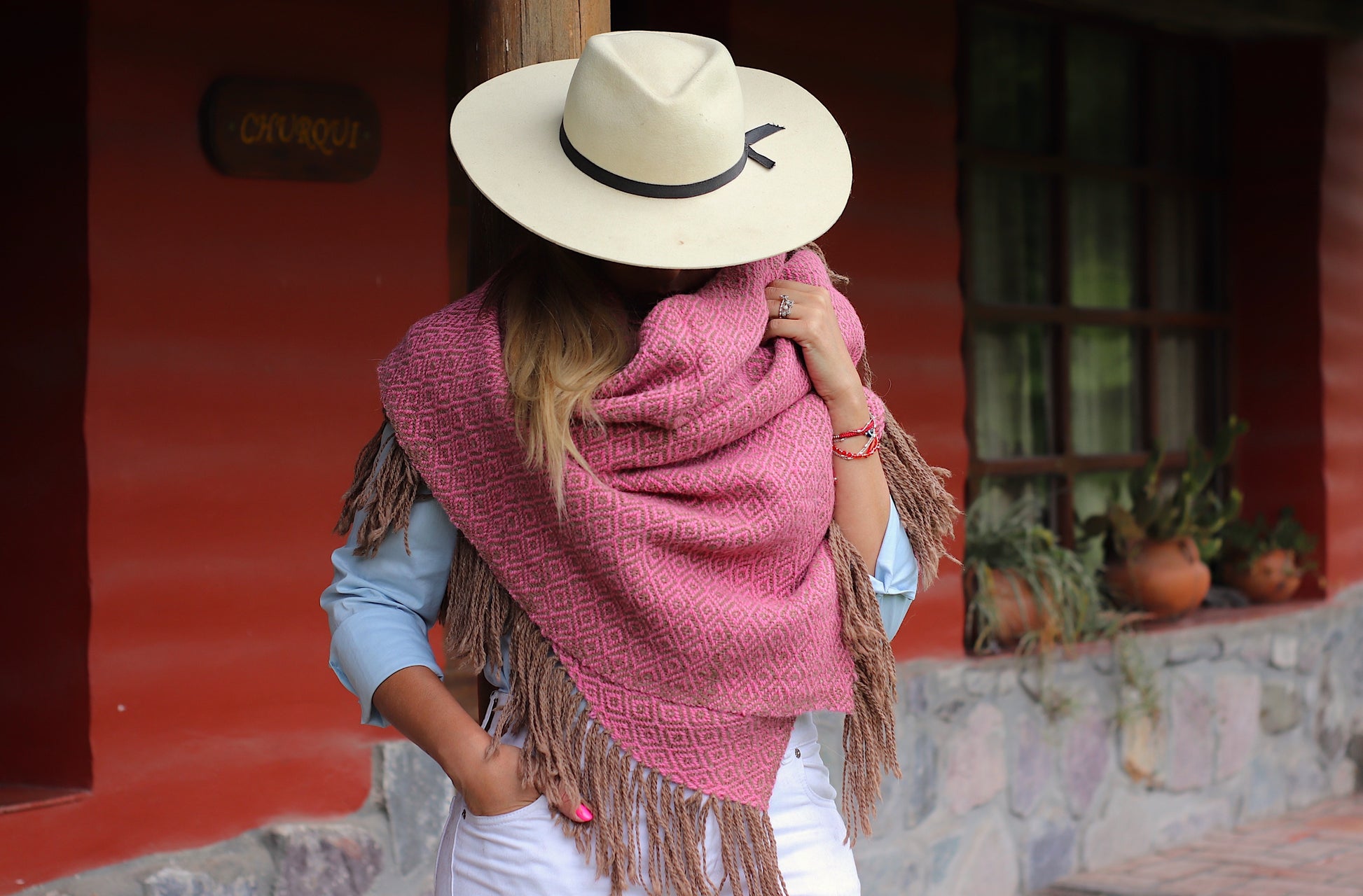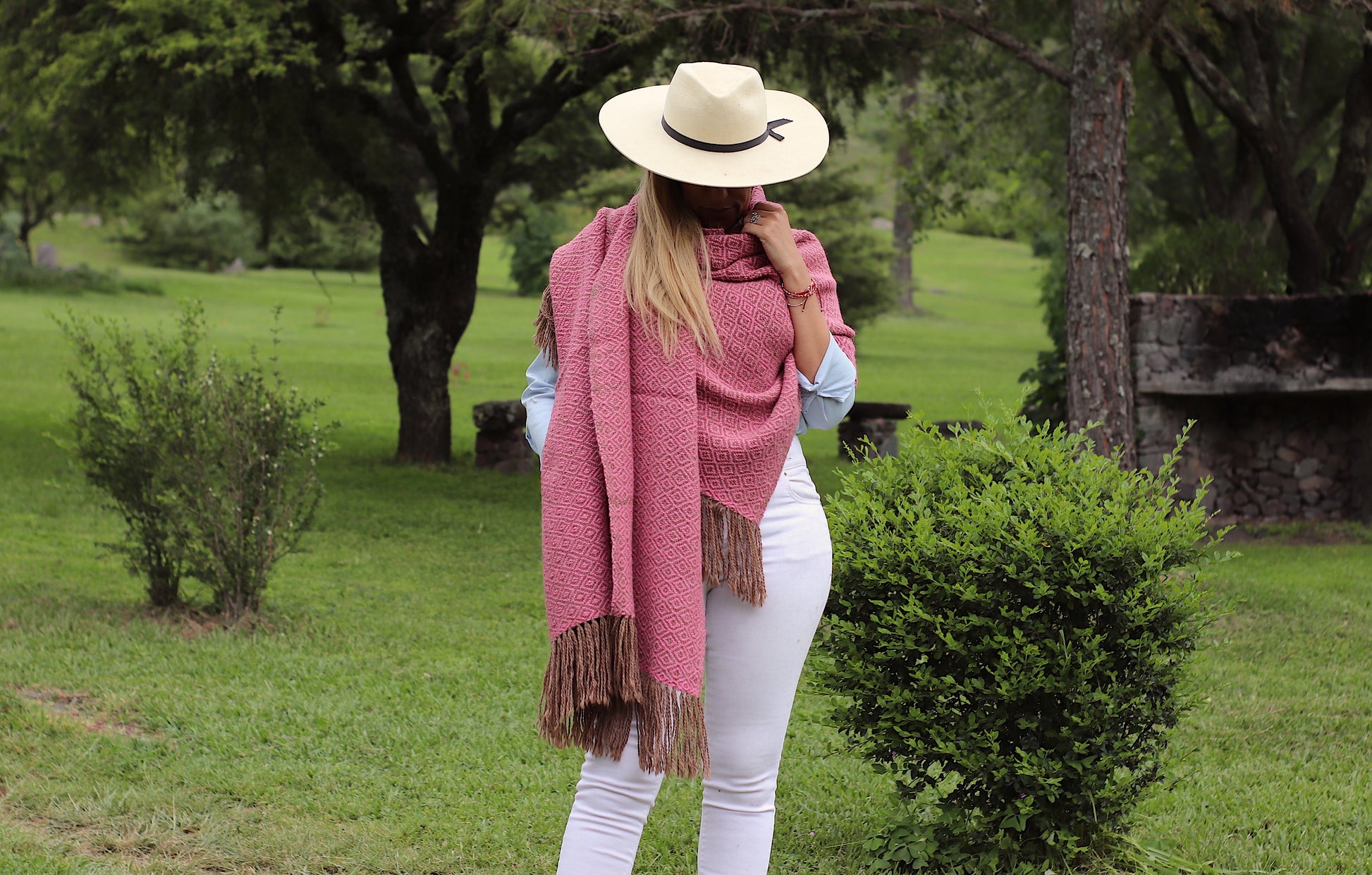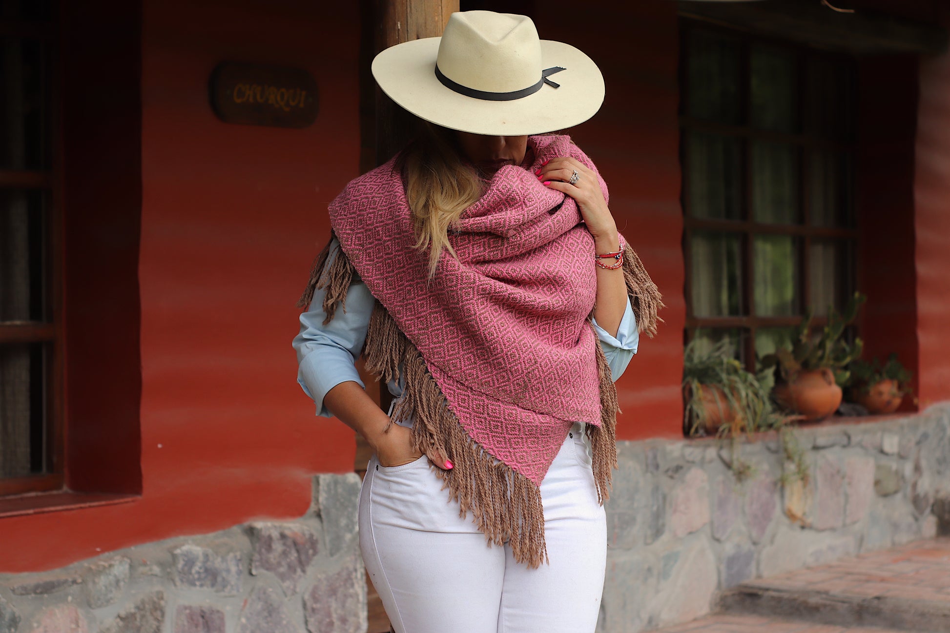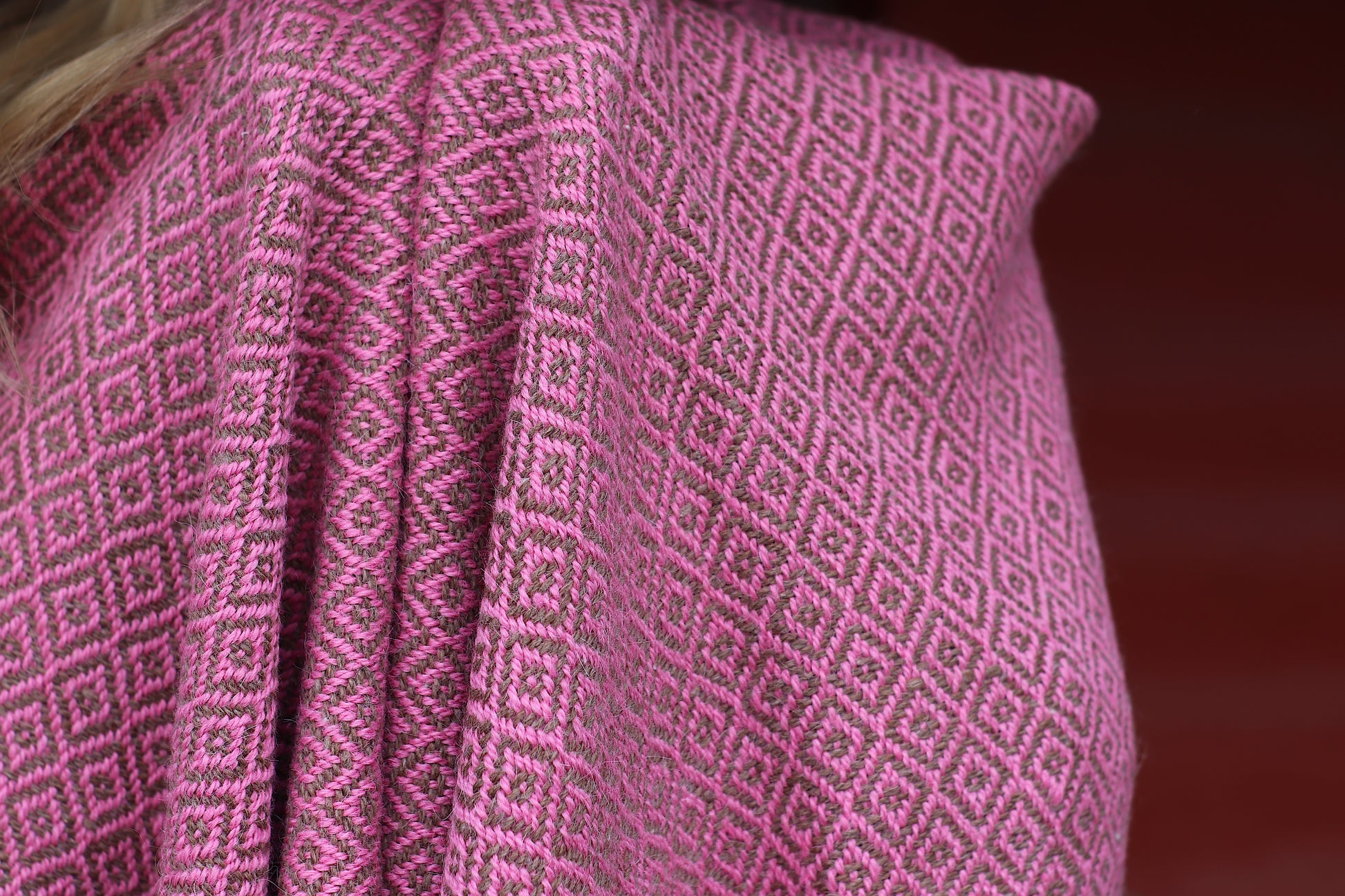 Manta CARAHUASI es parte de la colección "Las Vicuñas" " hilada de fibra de llama baby y hecha en telar con técnica Ojo de Perdiz.