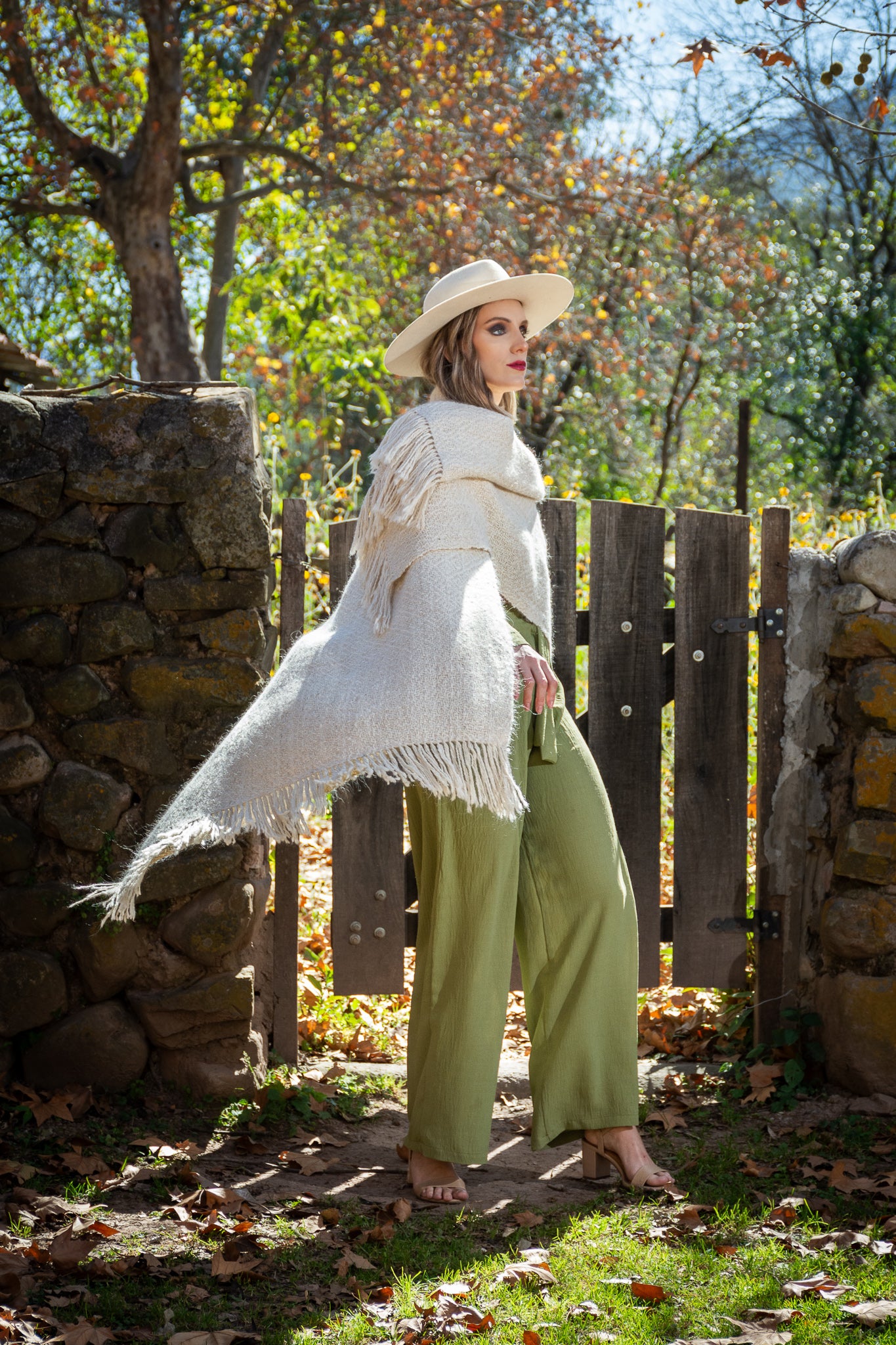 Es una pieza única tejido artesanalmente en telar criollo colore natural Marfil