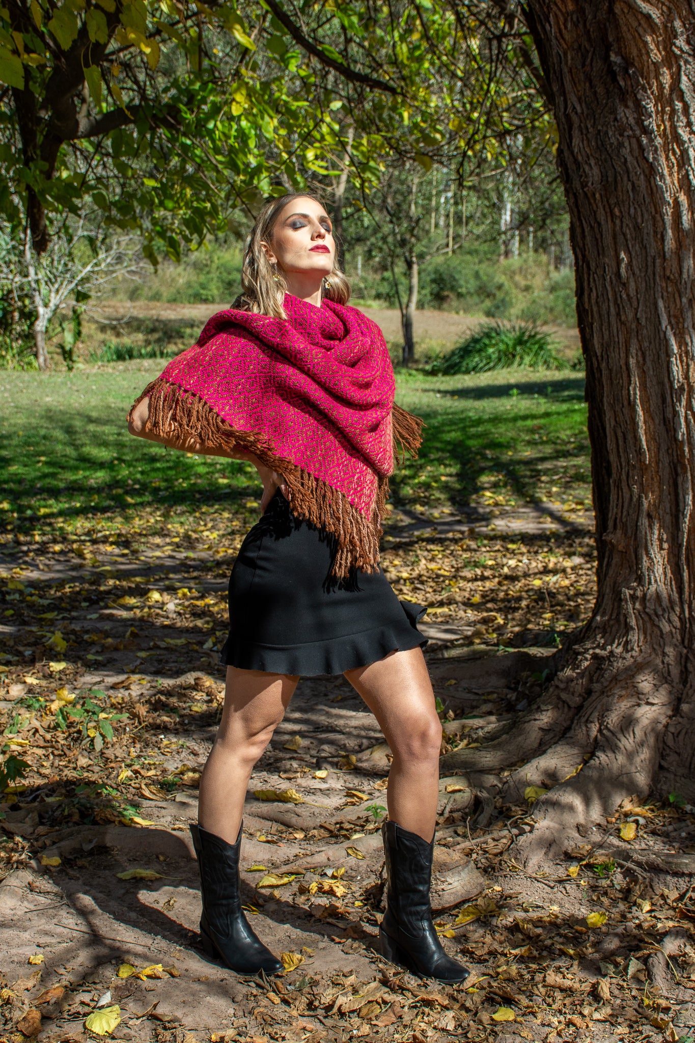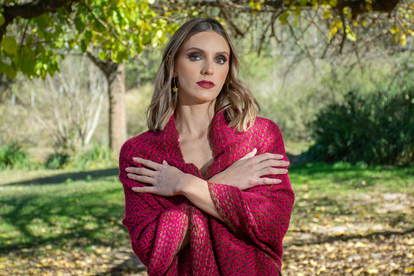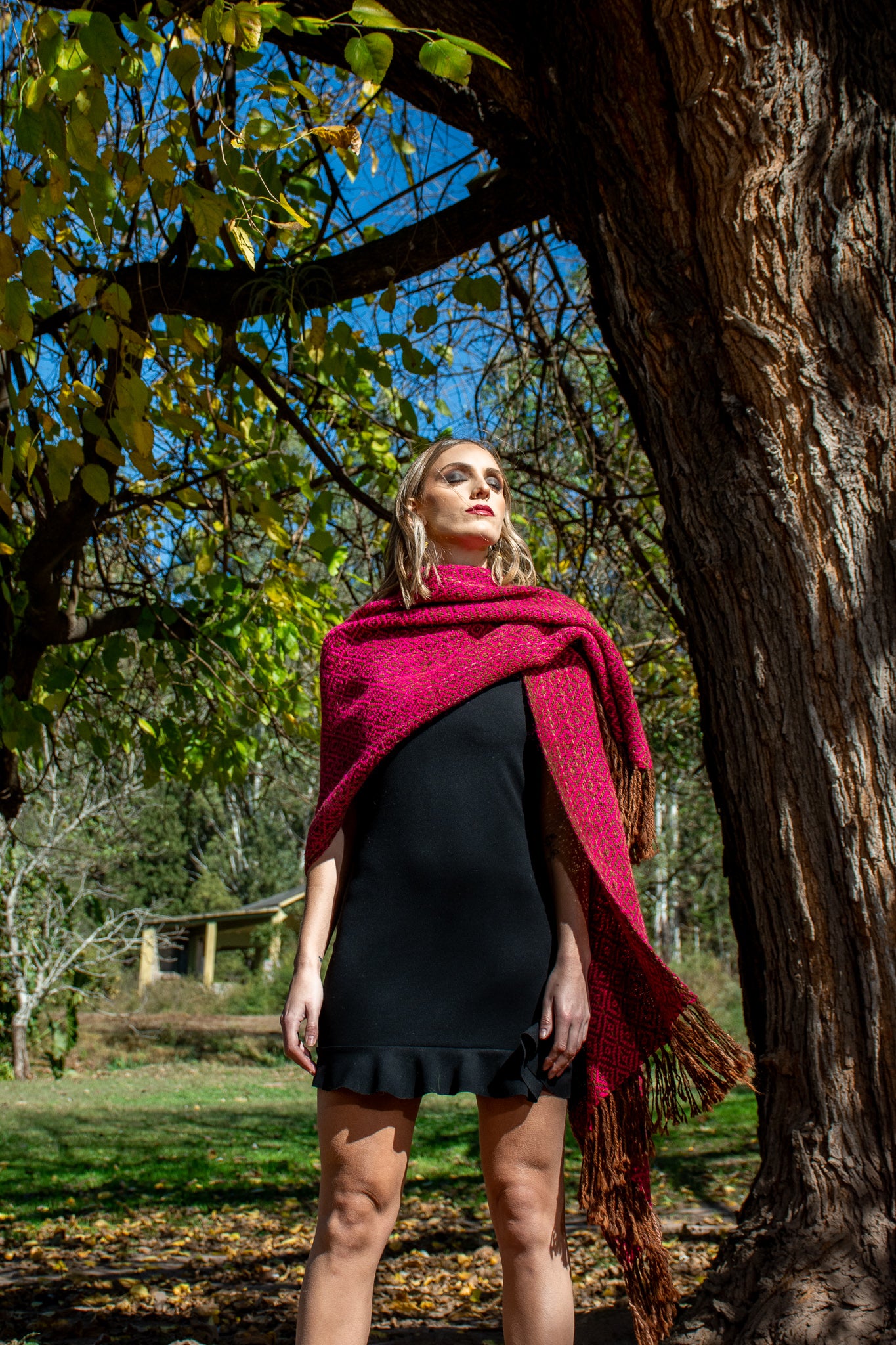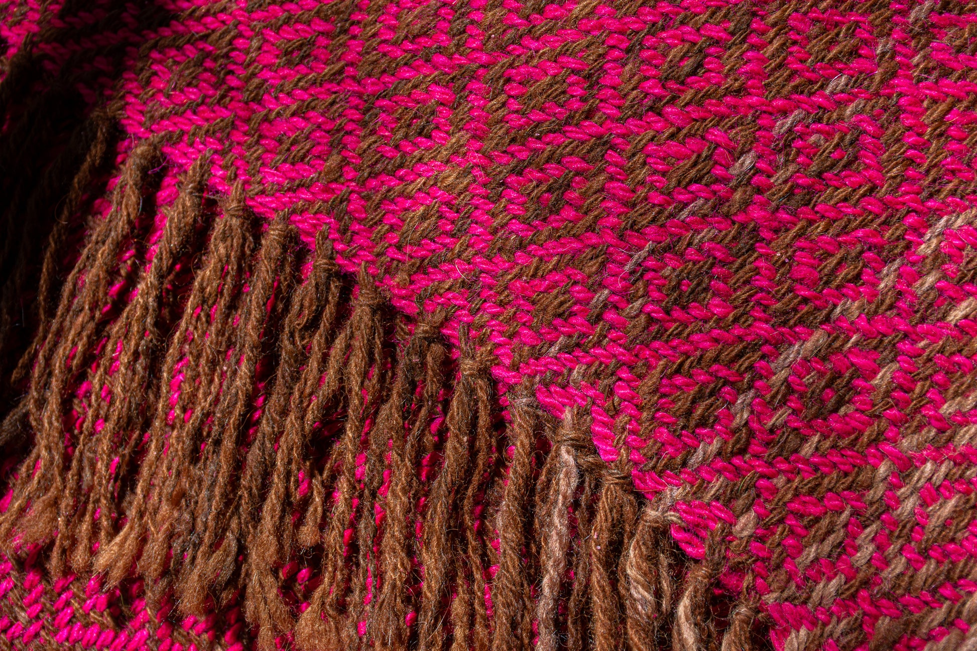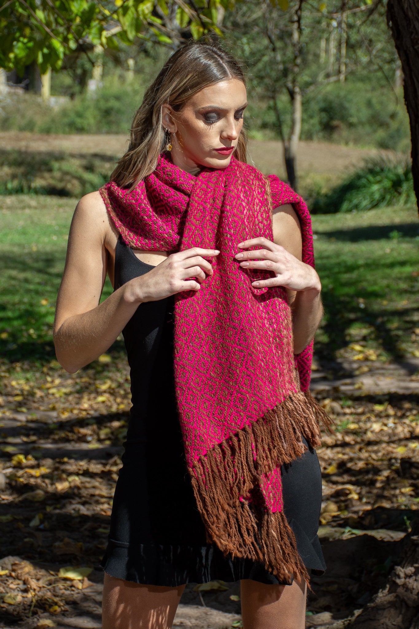 Manta IZHABELA es parte de la colección "Las Marias" hilada de fibra de llama baby y hecha en telar con técnica Ojo de Perdiz.