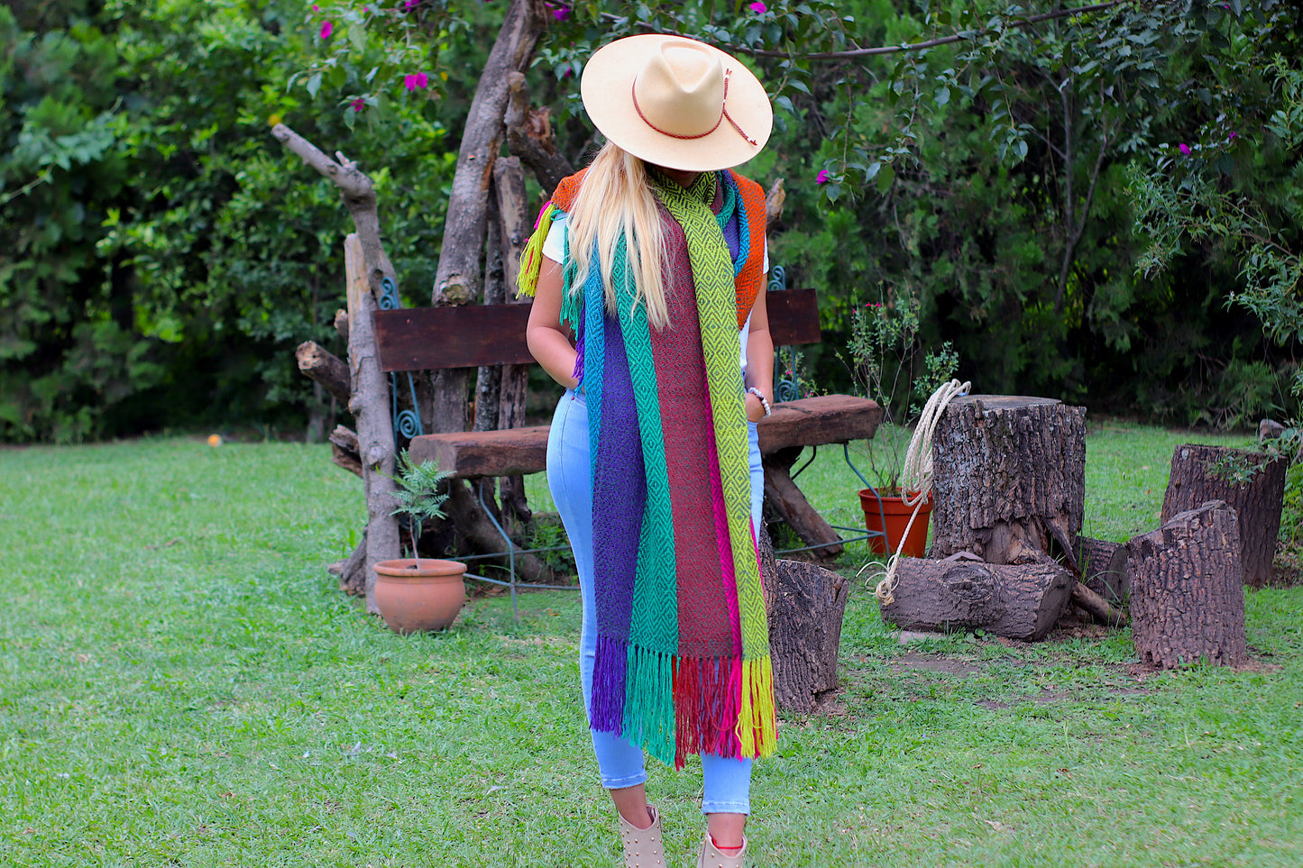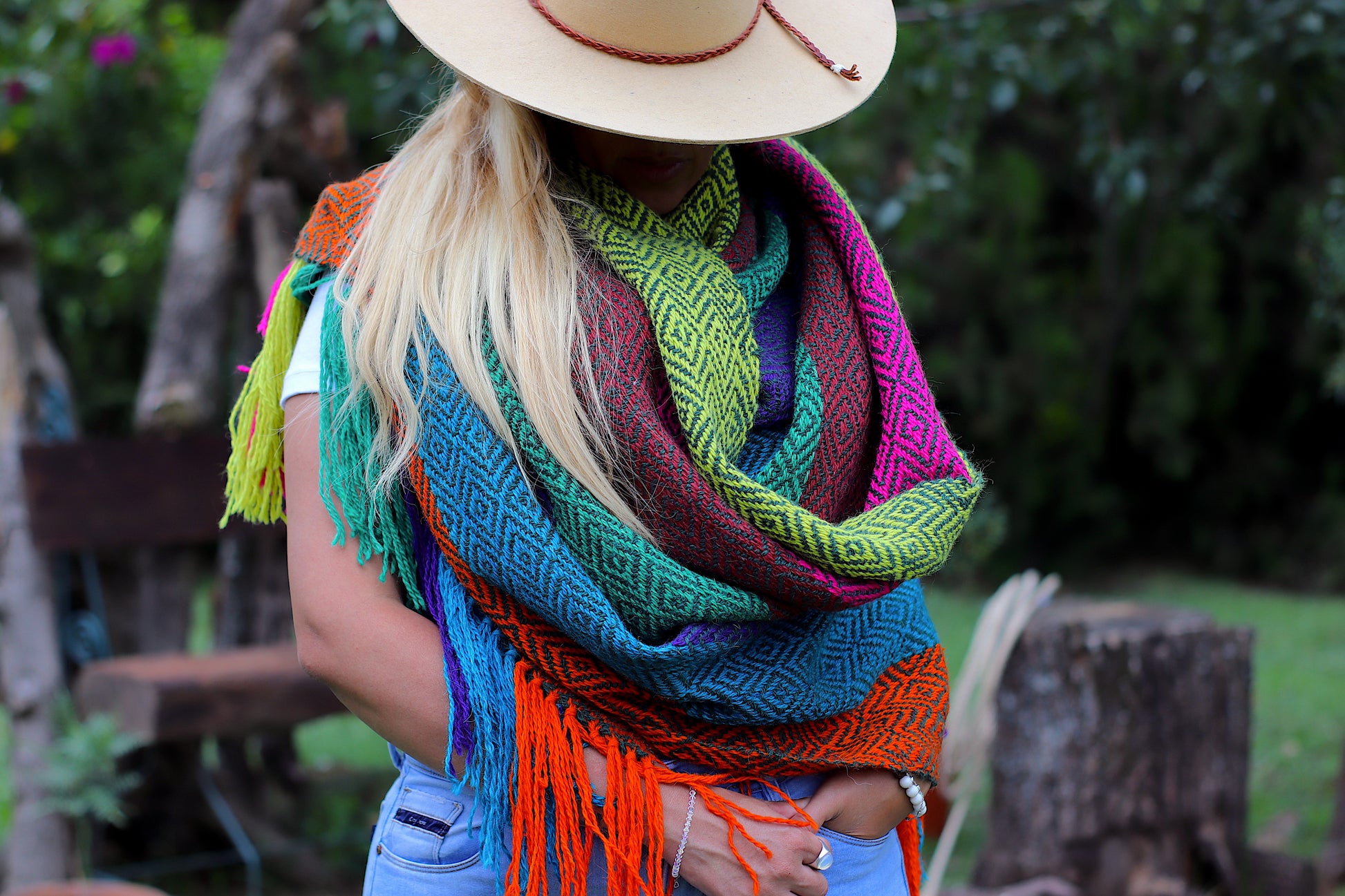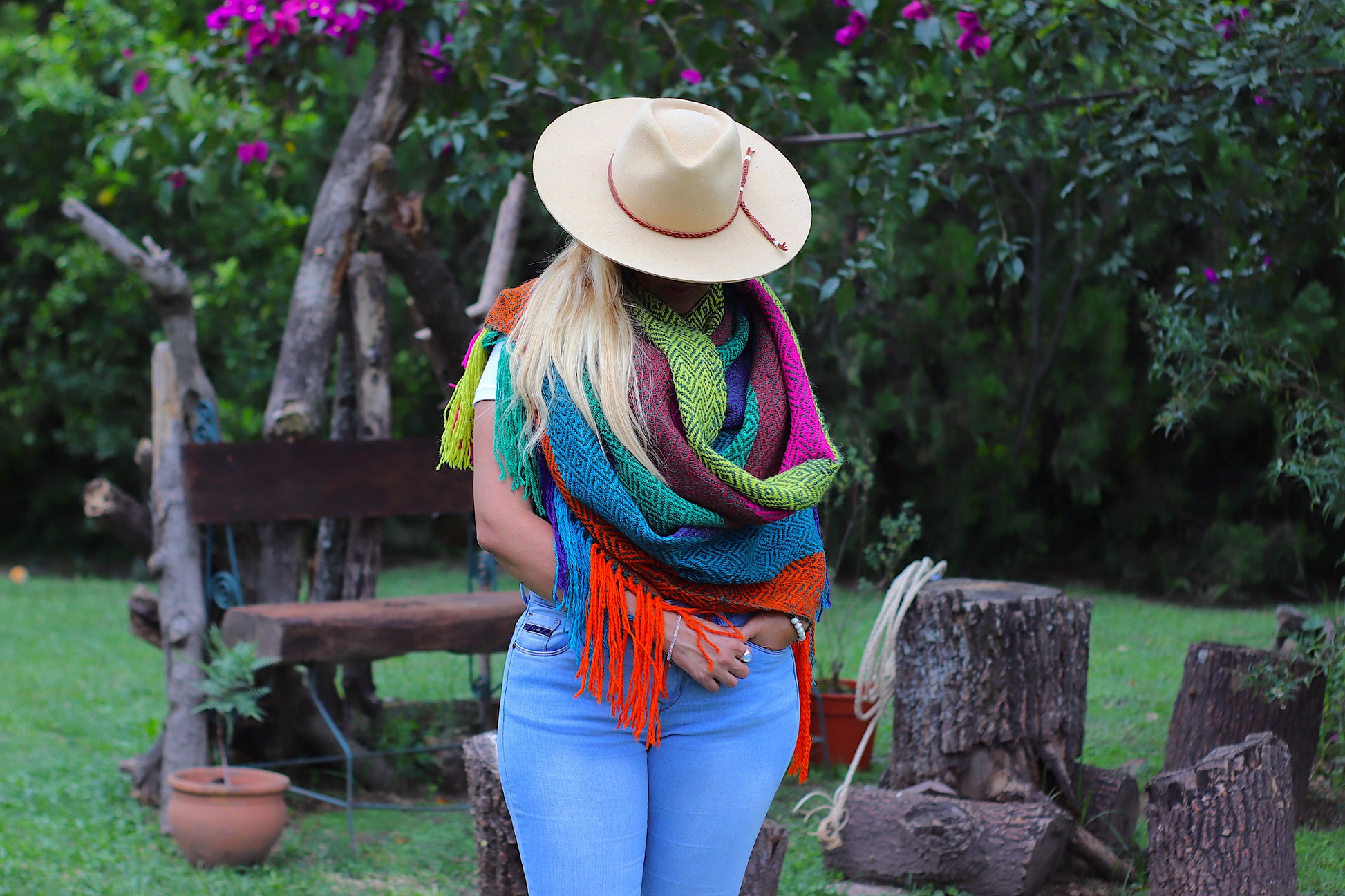 La Manta es parte de la "Colección Las Marias", está hecha en telar rústico artesanalmente con hilos de llama baby.
