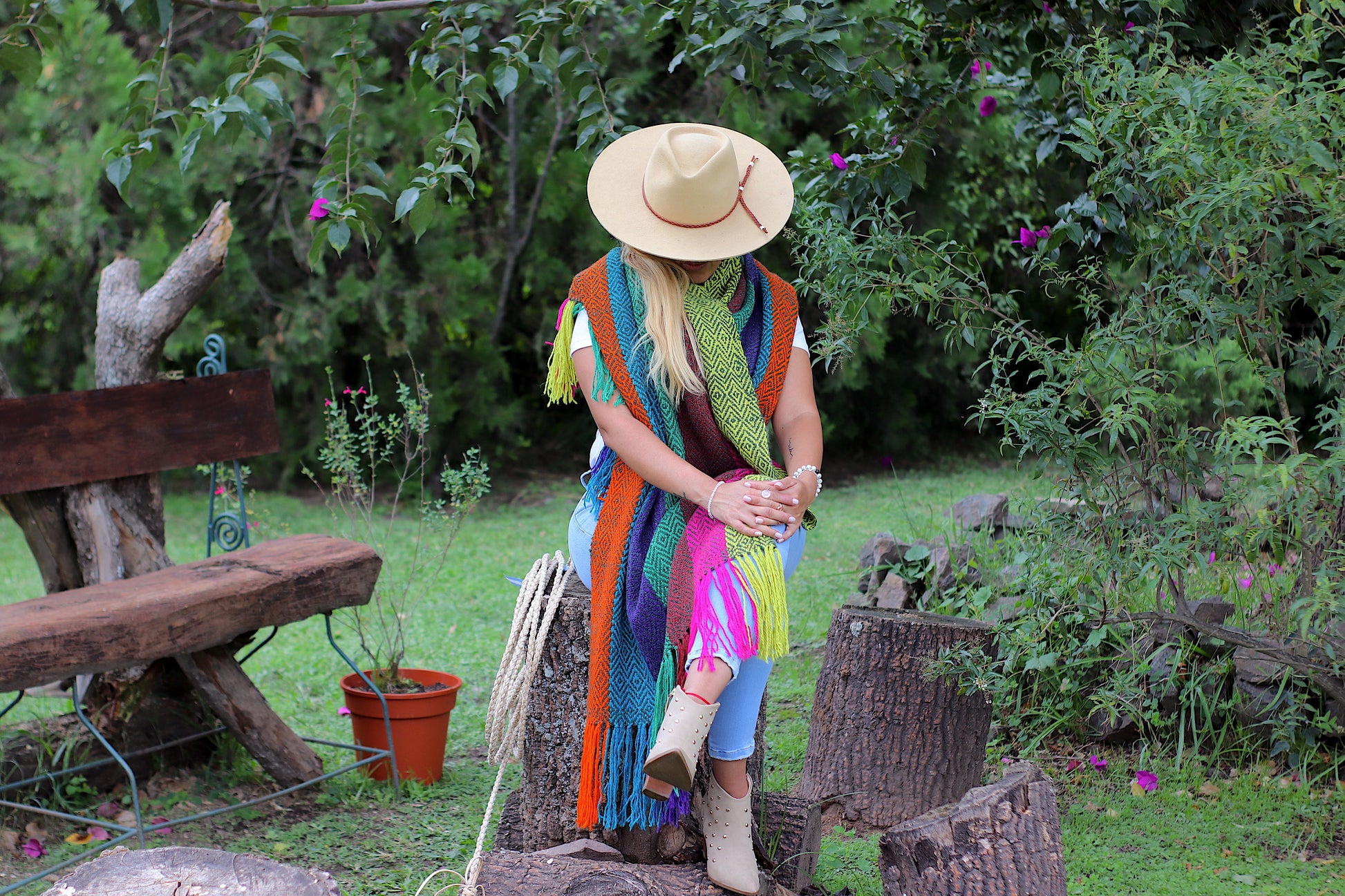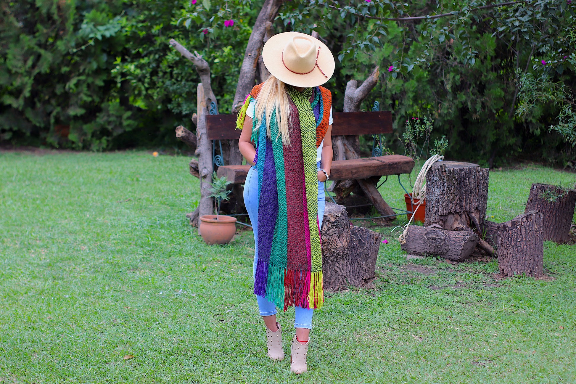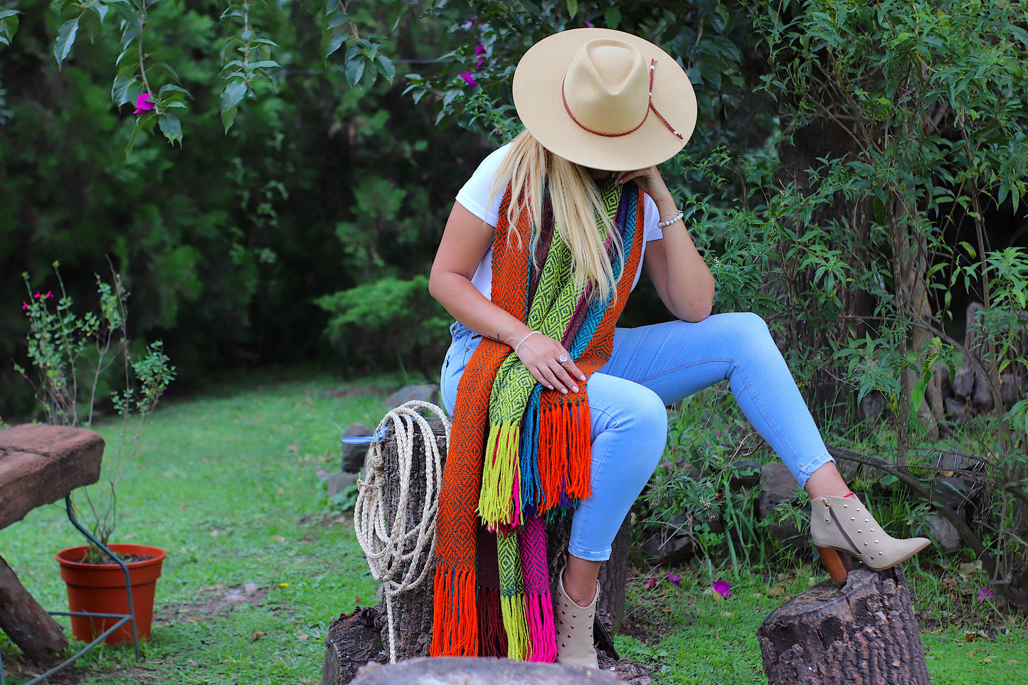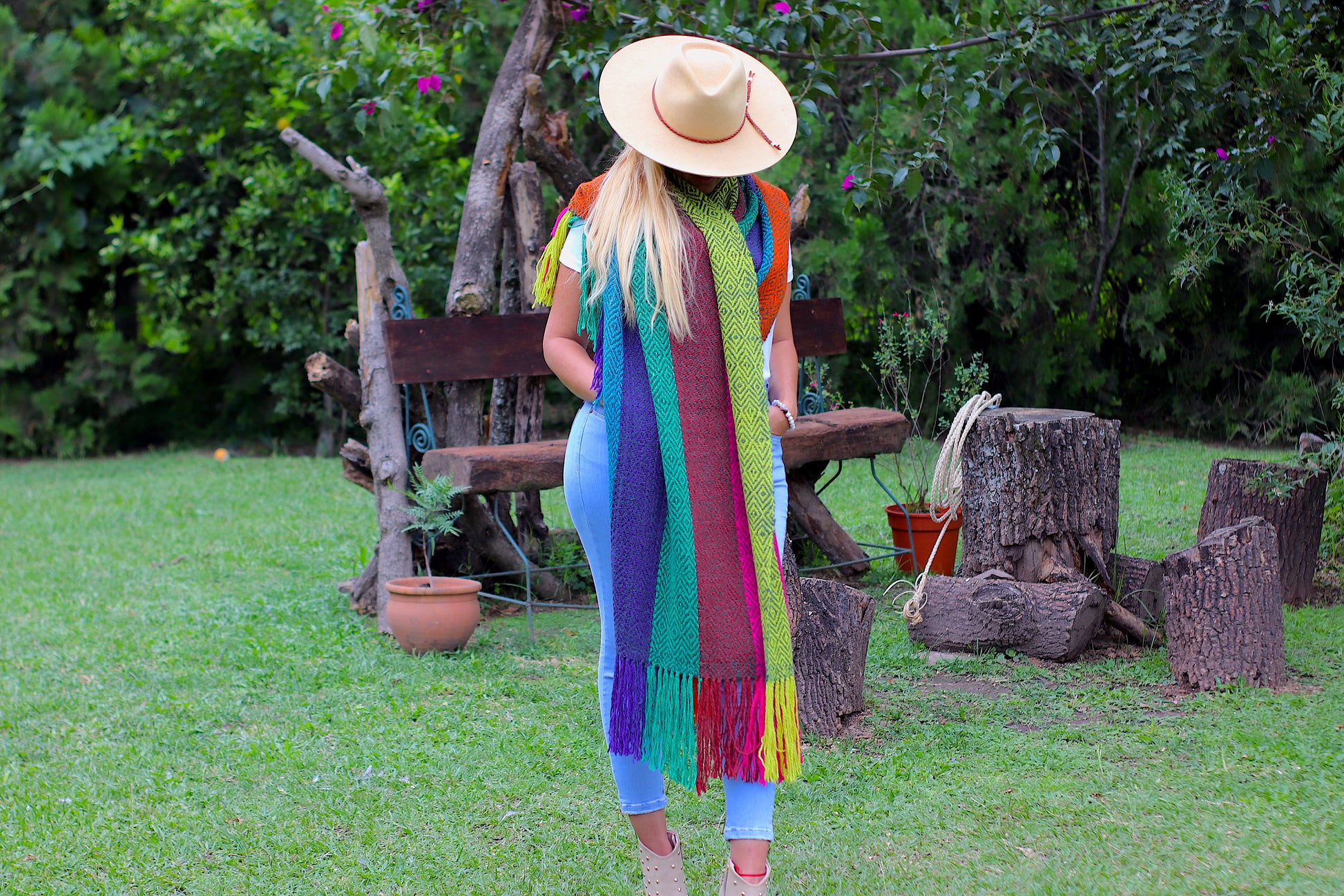 La Manta es parte de la "Colección Las Marias", está hecha en telar rústico artesanalmente con hilos de llama baby.