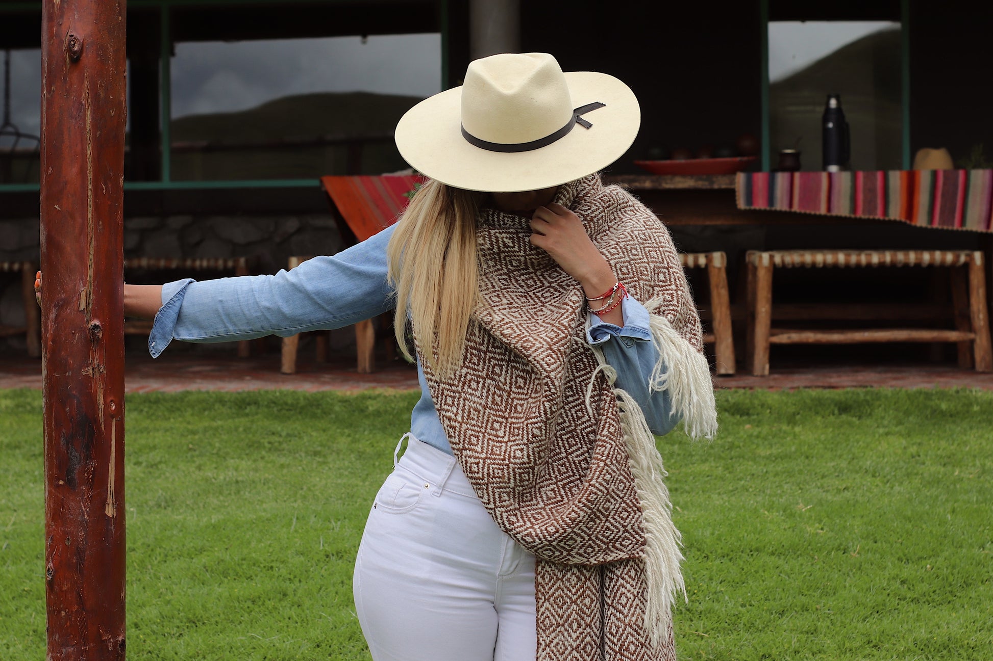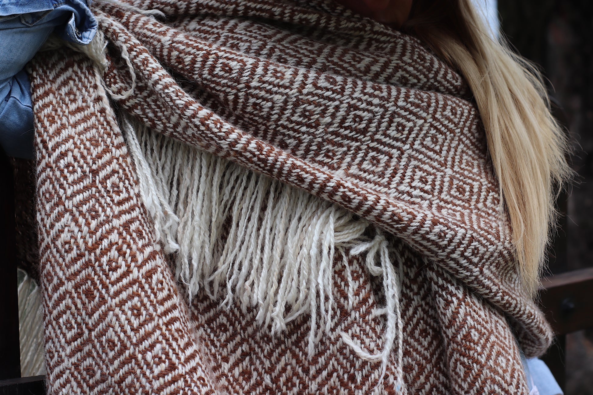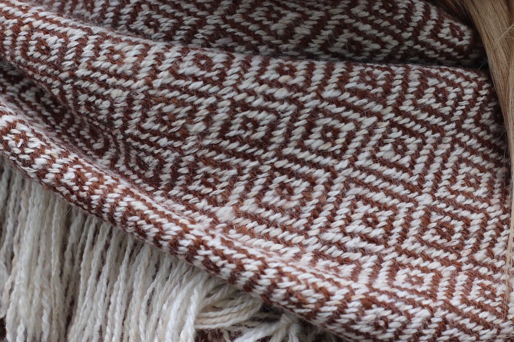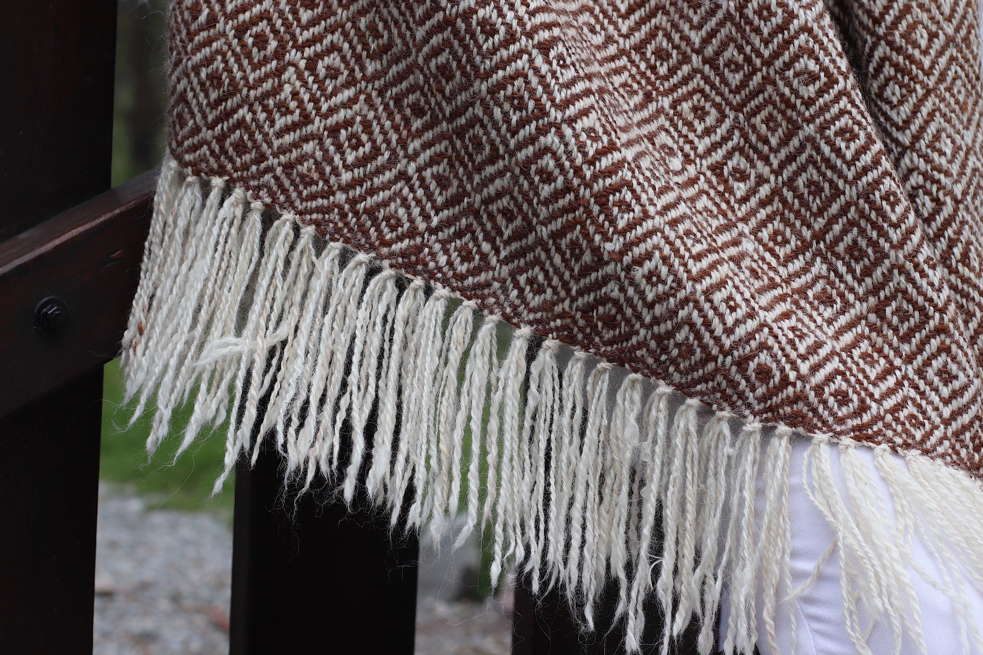 Manta "Estancia" es parte de la colección "Las Marias" " hilada de fibra de llama baby y hecha en telar con técnica Ojo de Perdiz