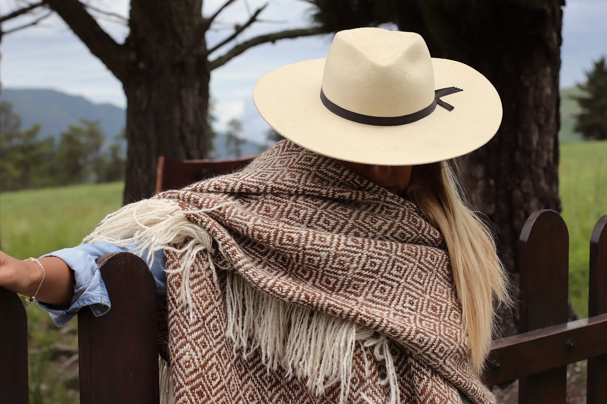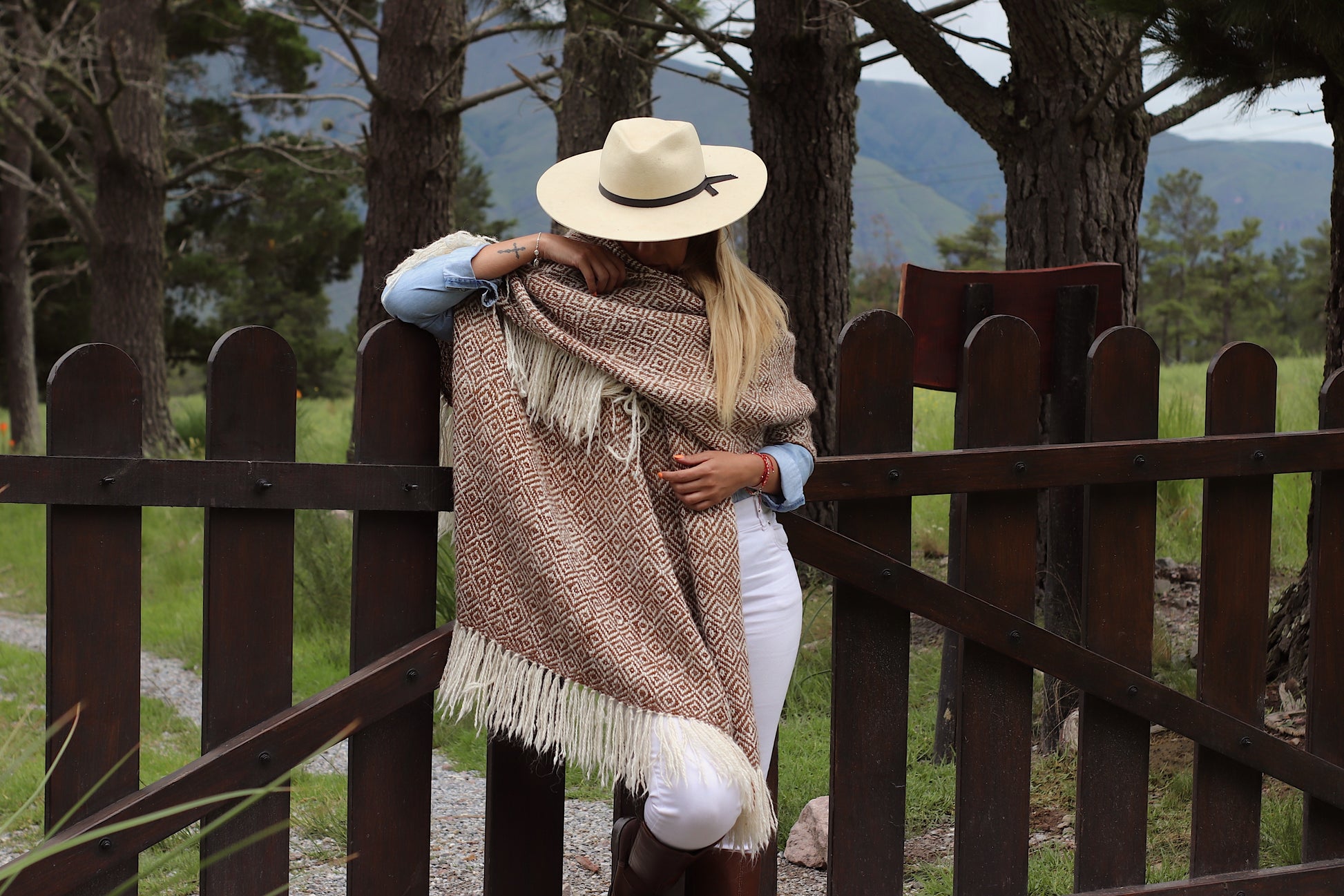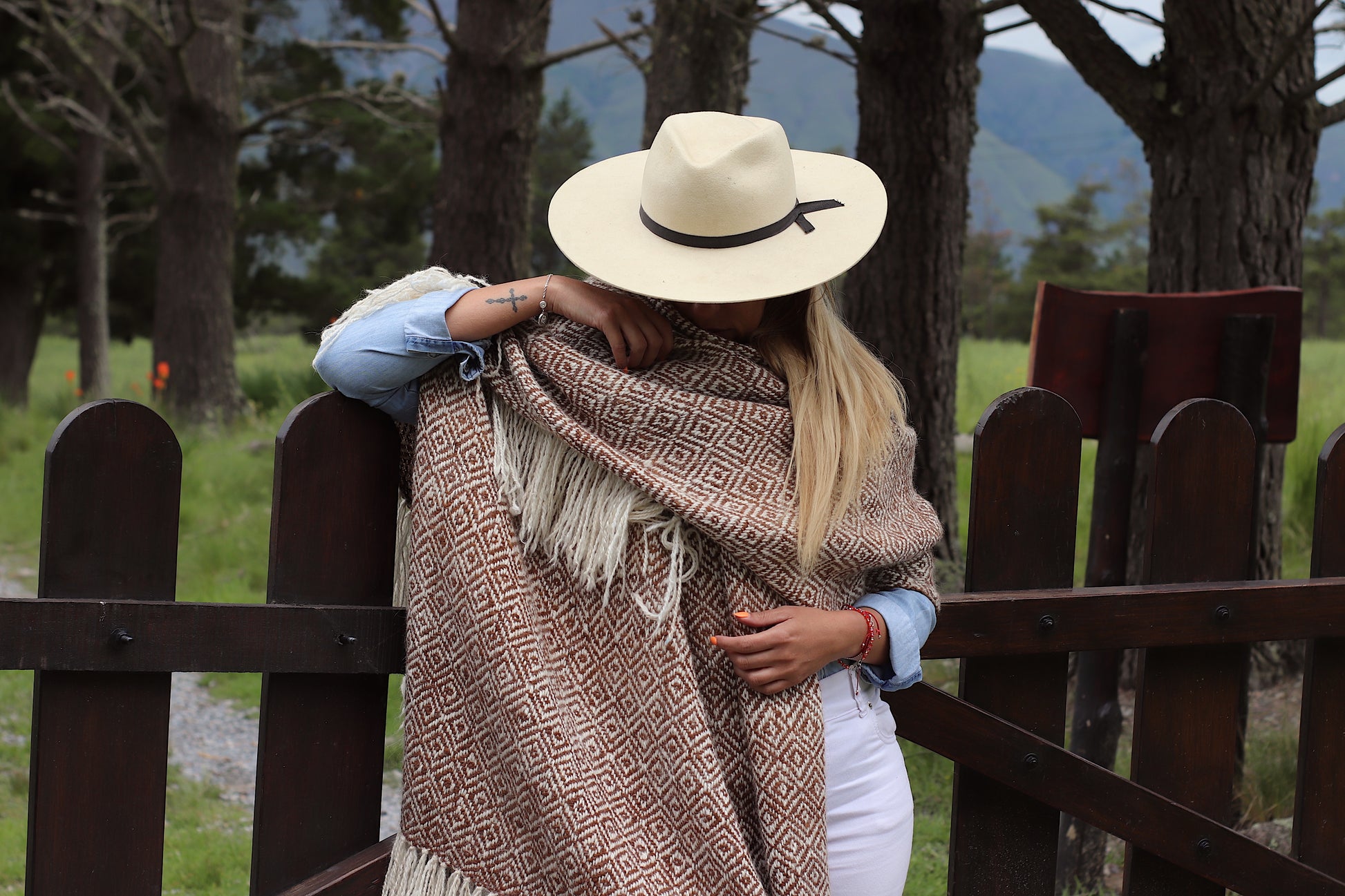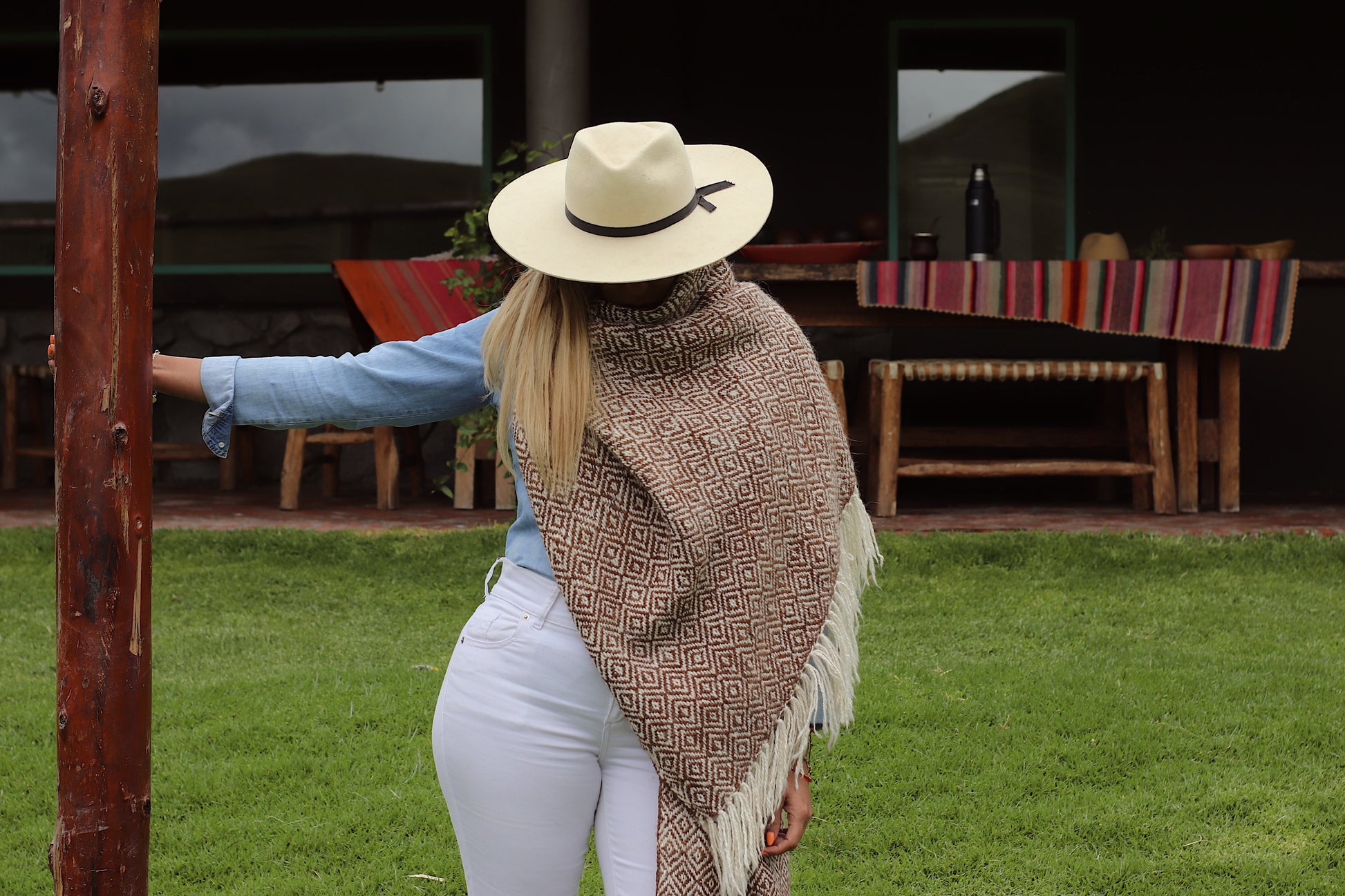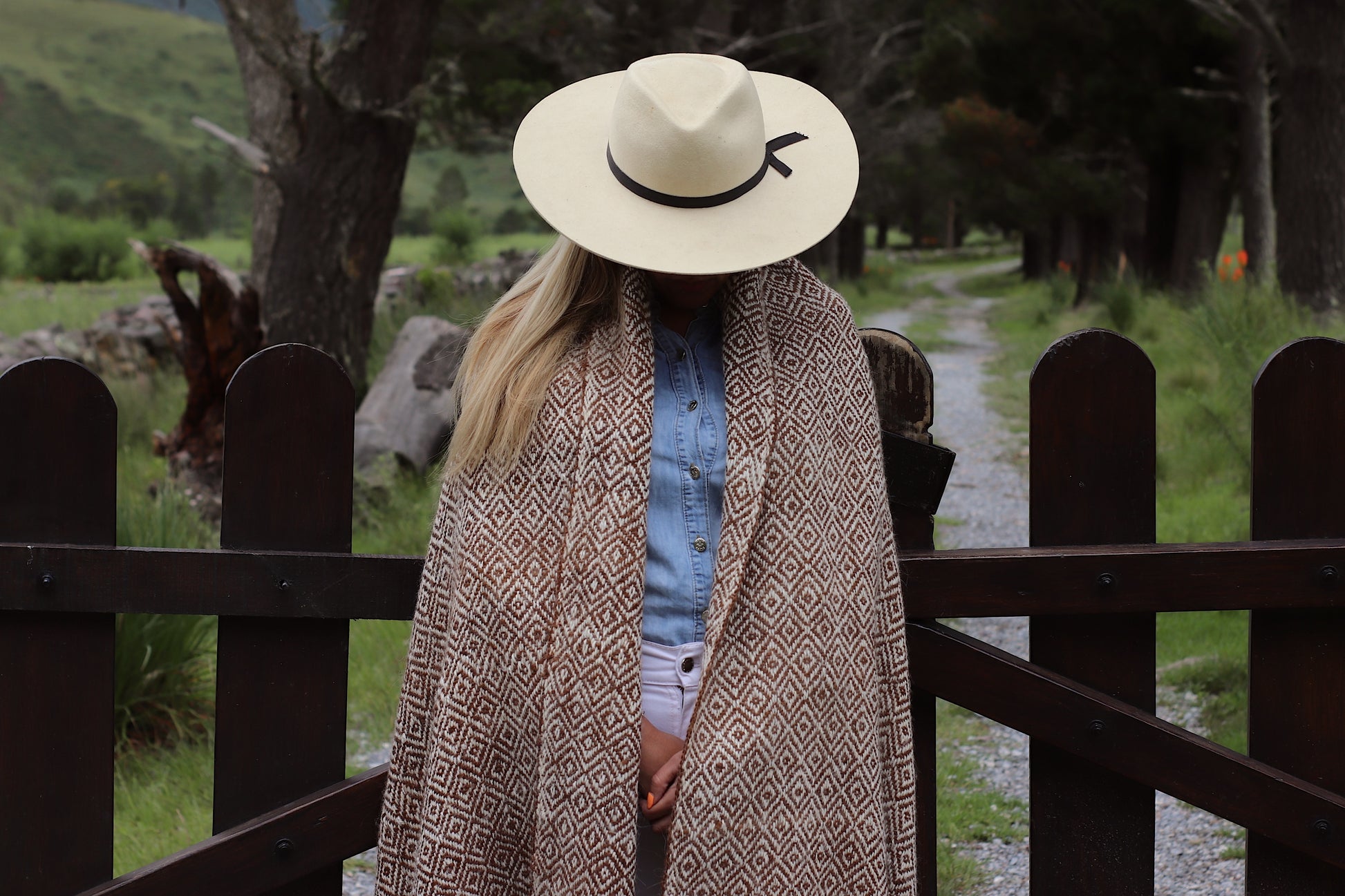 Manta "Estancia" es parte de la colección "Las Marias" " hilada de fibra de llama baby y hecha en telar con técnica Ojo de Perdiz