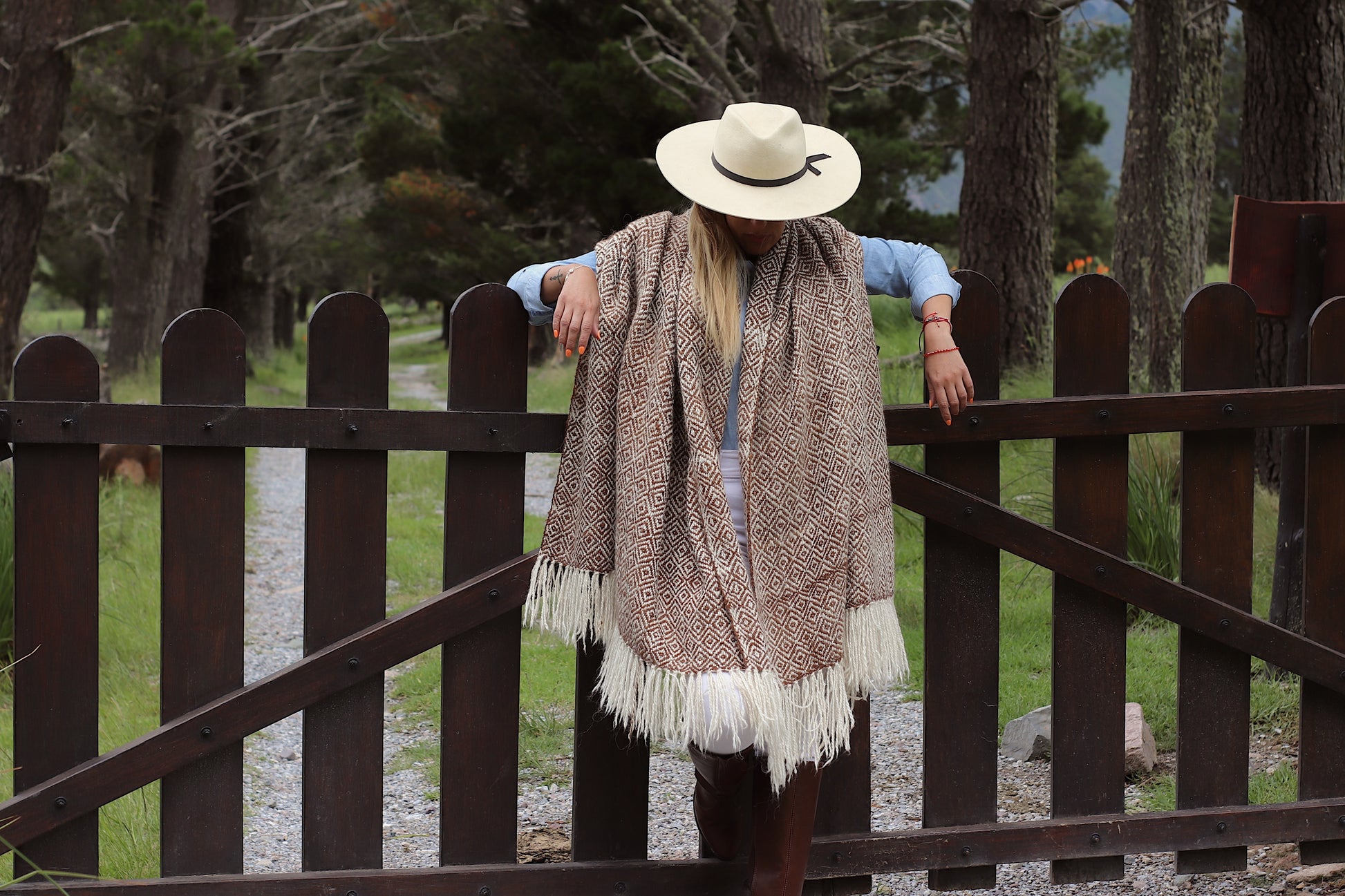 Es una pieza única tejido artesanalmente en telar criollo en colores naturales Chocolate y Blanco