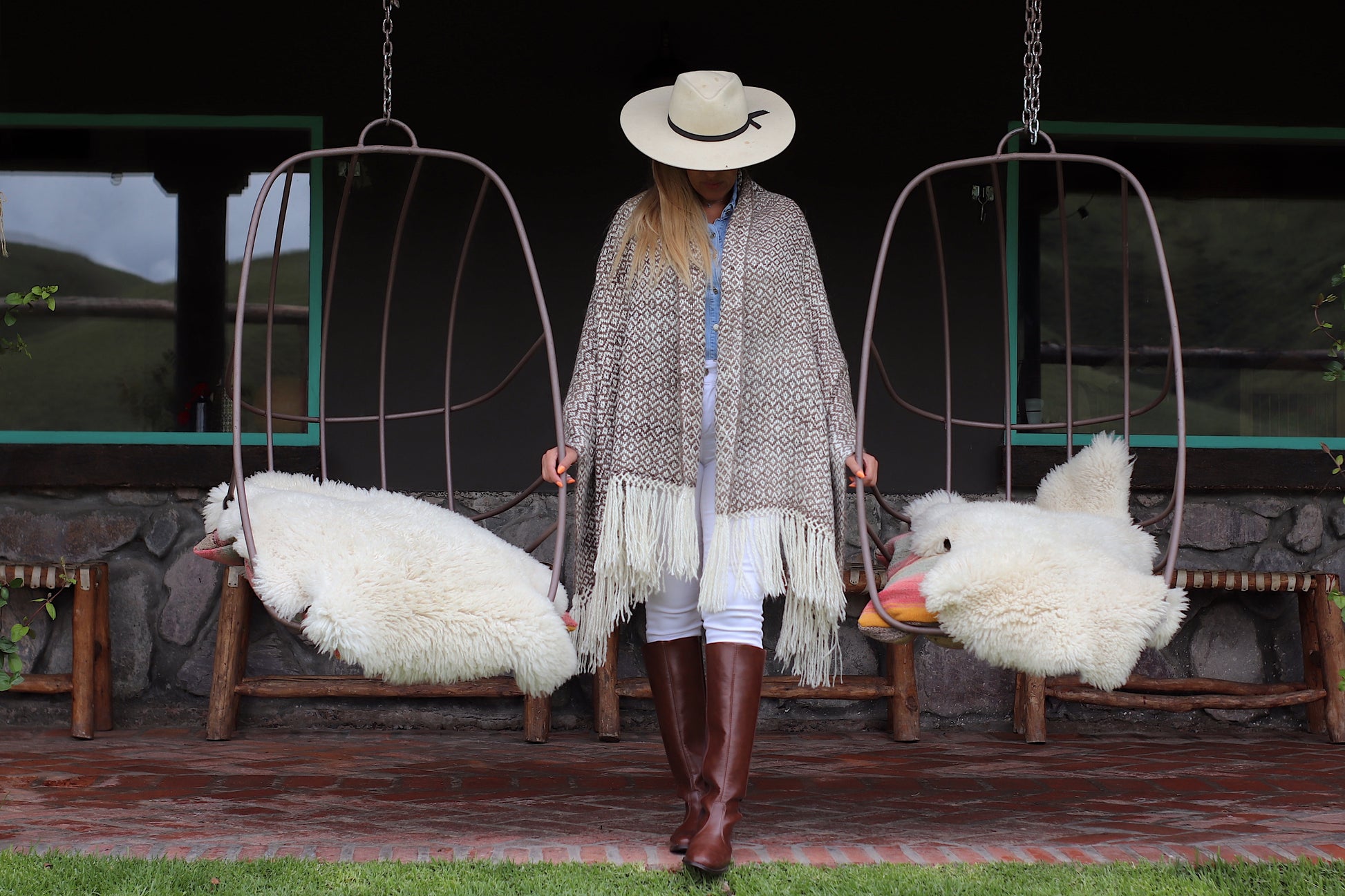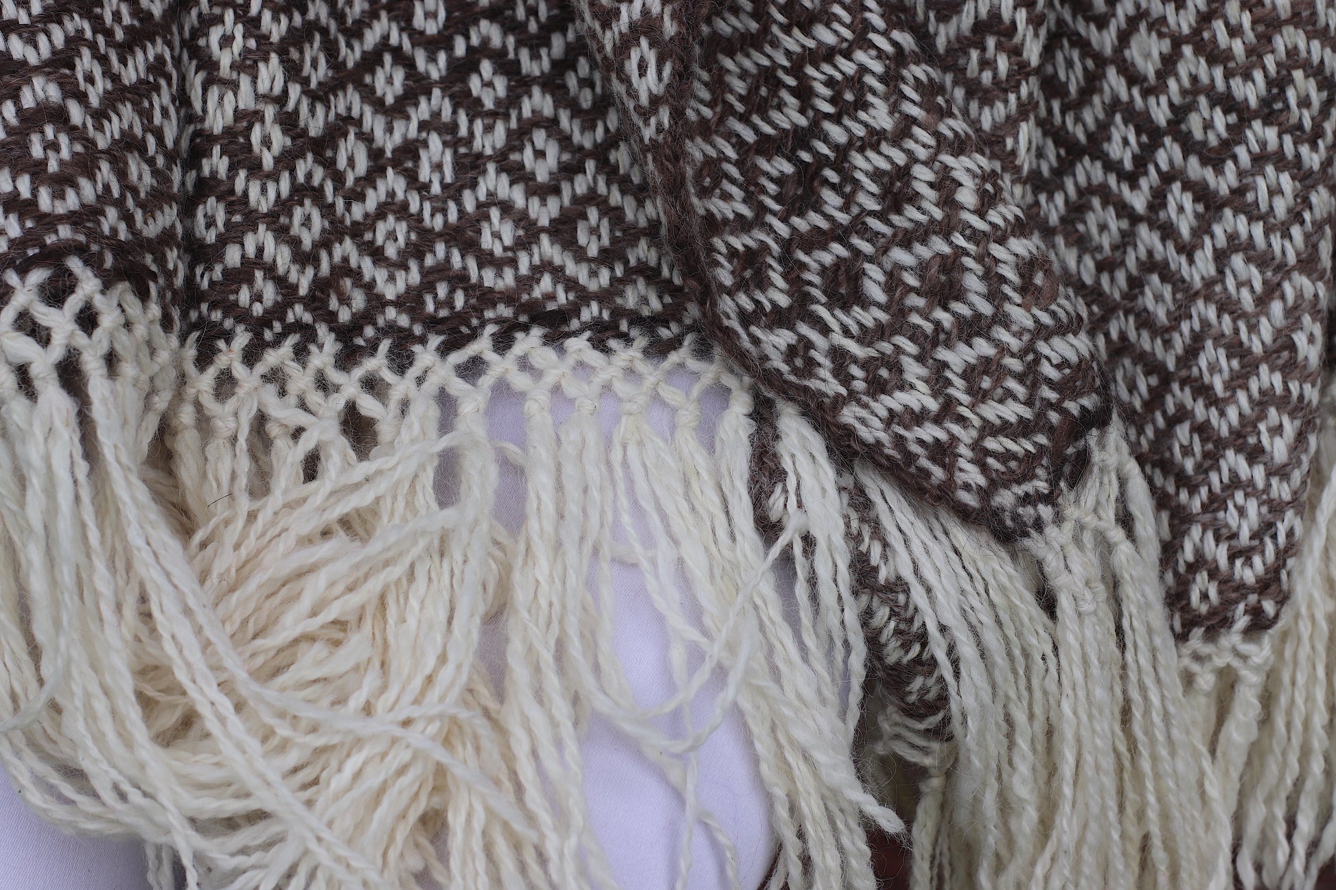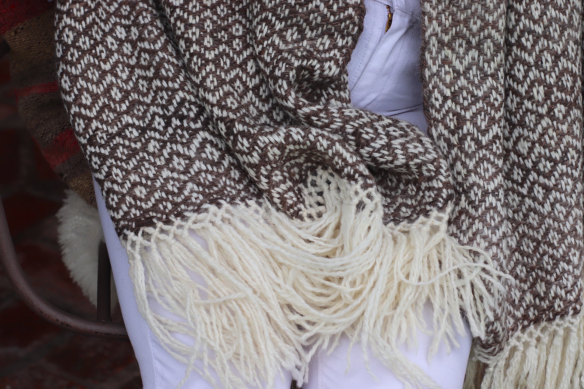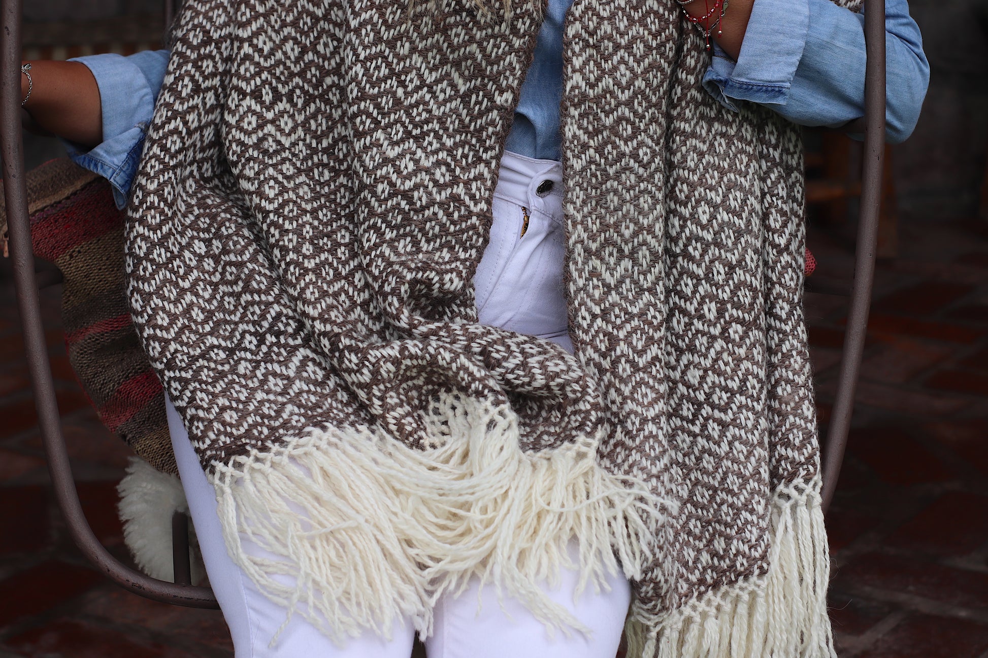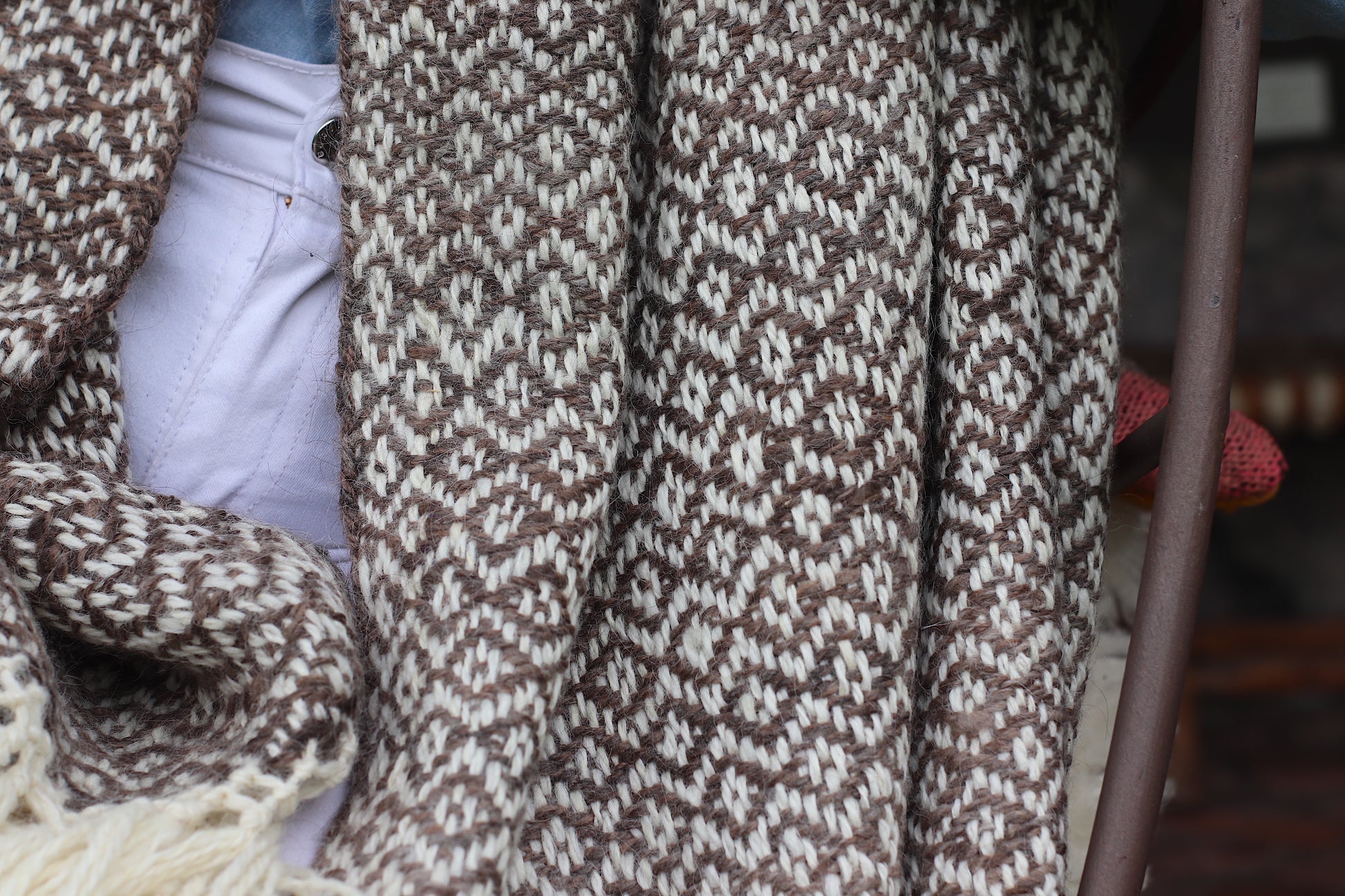 Manta "Mercedes" es parte de la colección "Las Marias" " hilada de fibra de llama baby y hecha en telar con técnica "ojo de perdiz".
