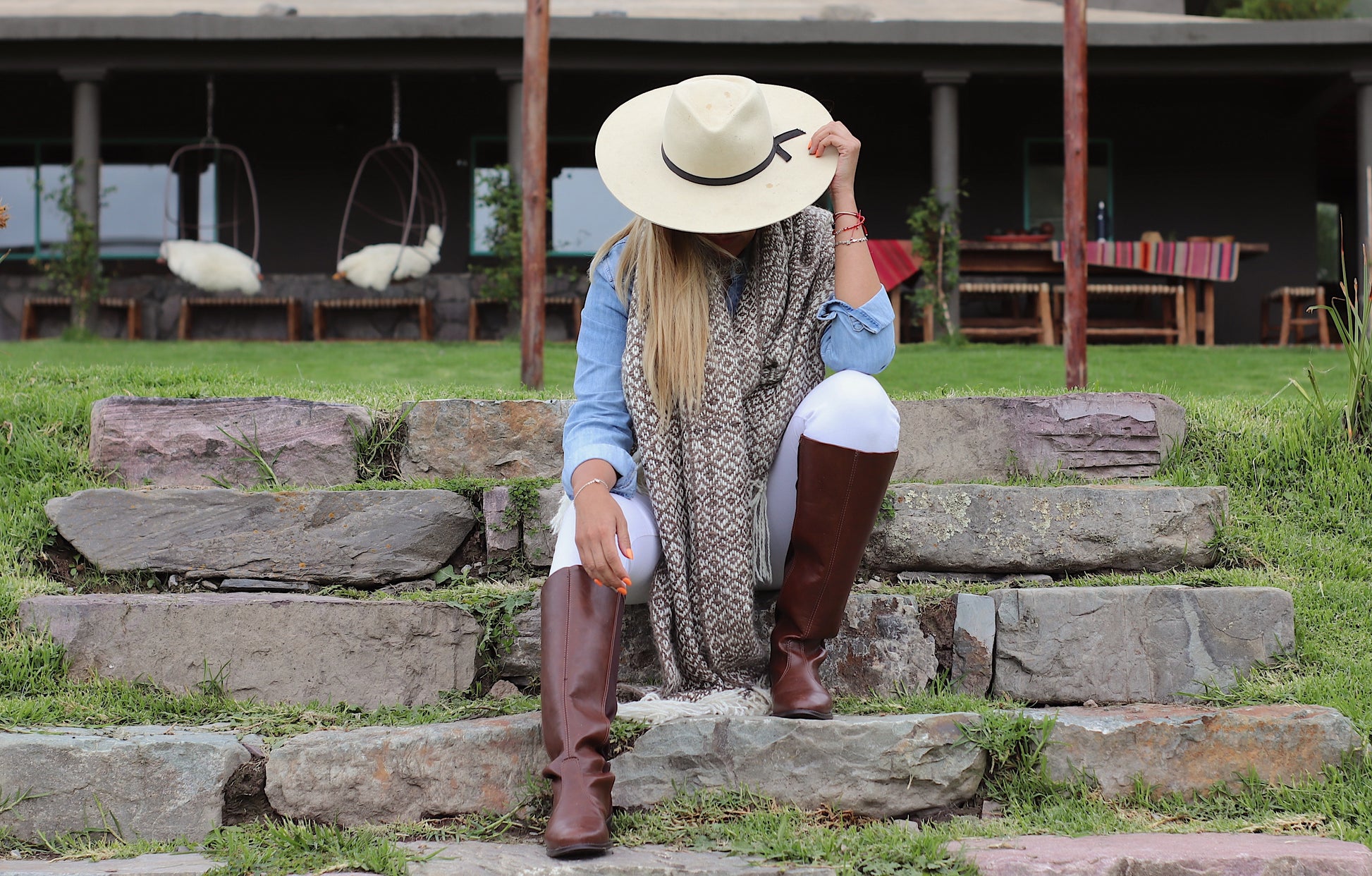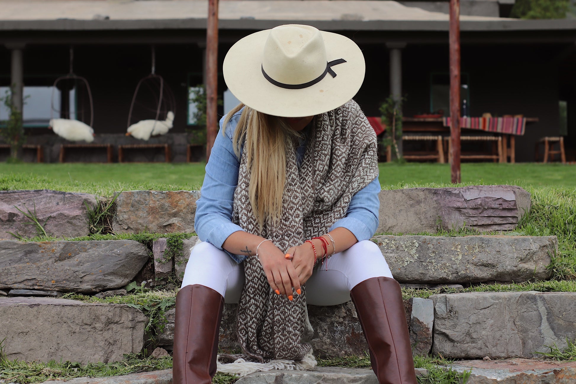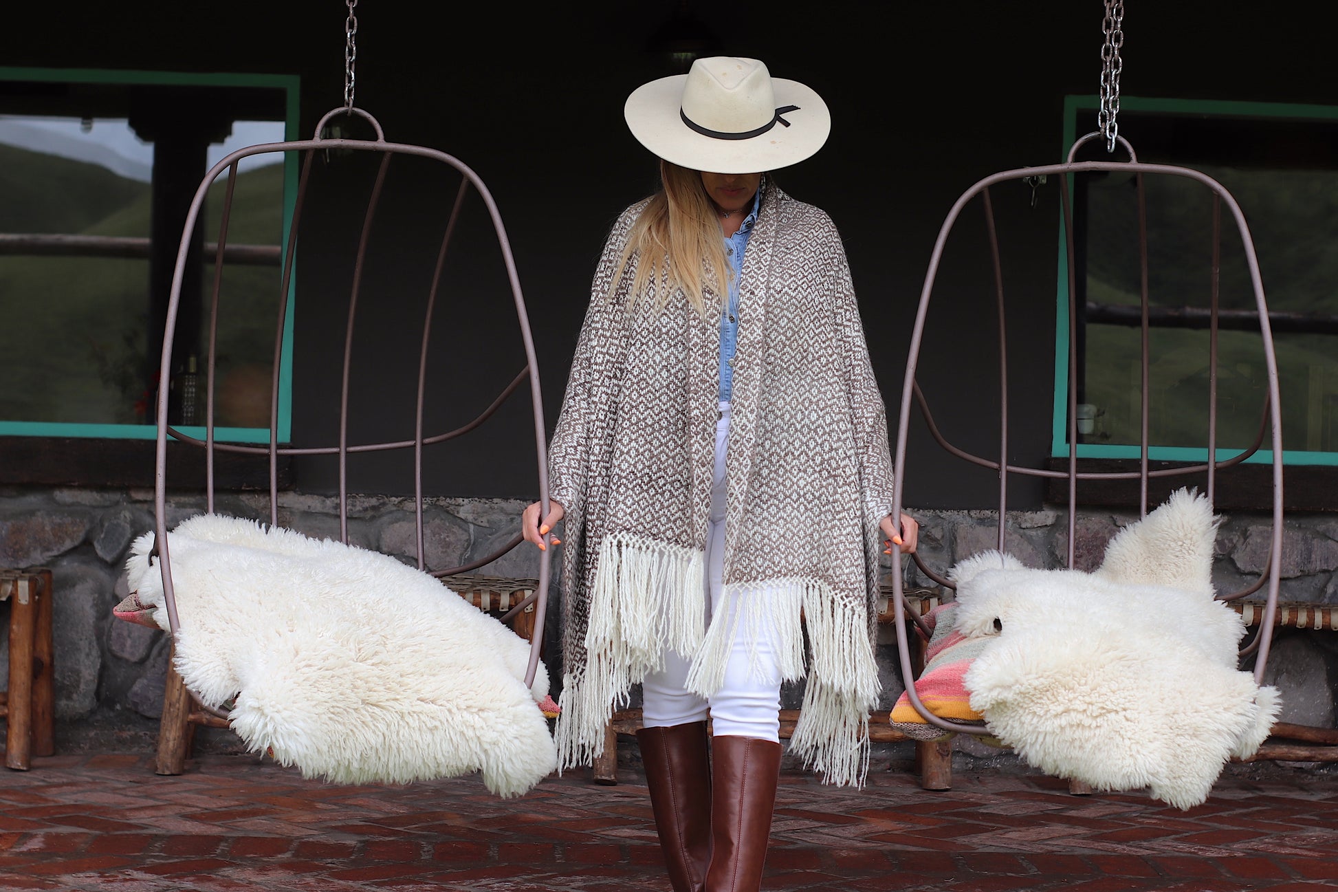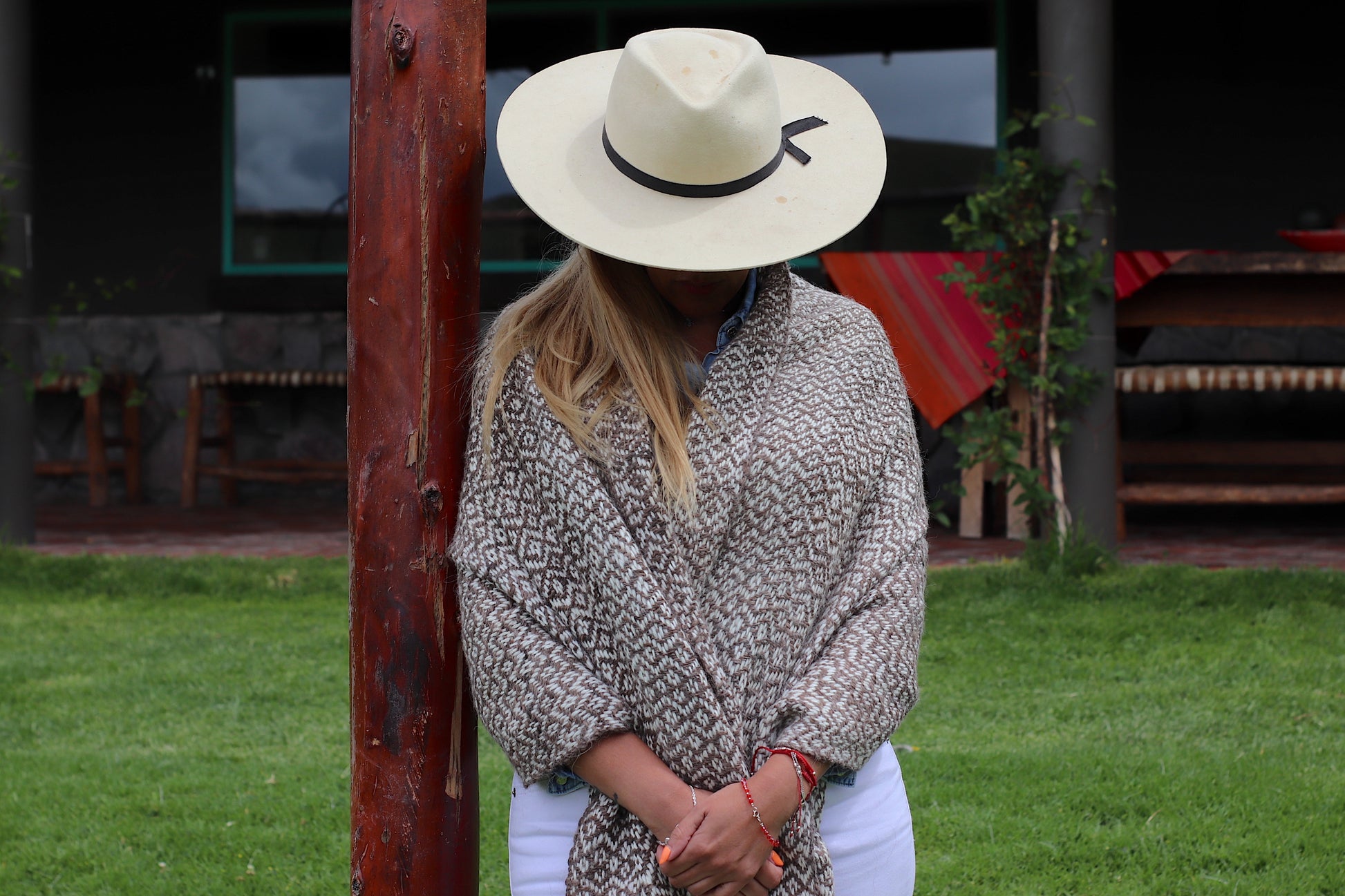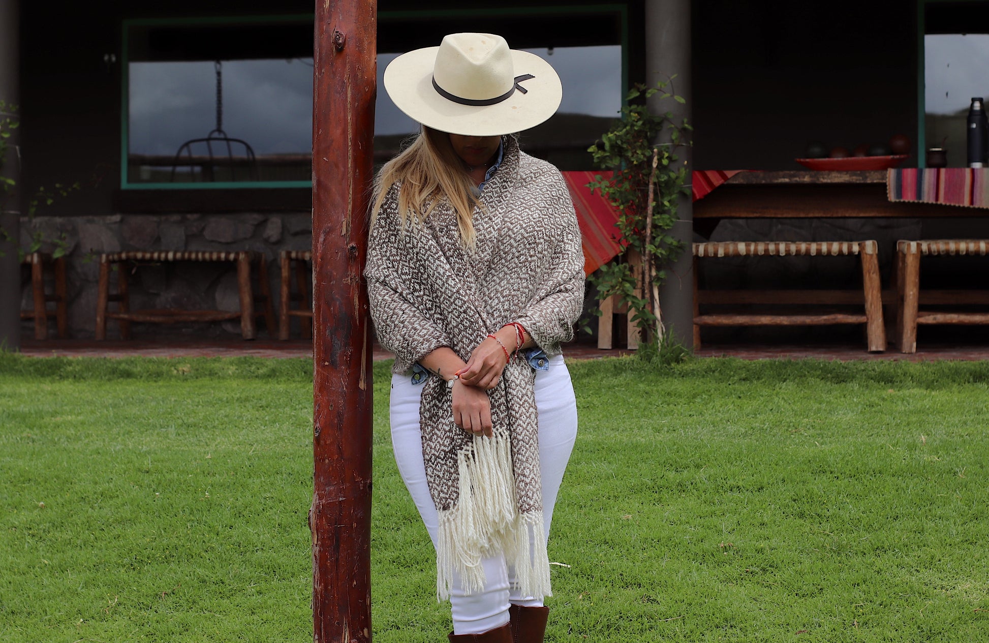 Manta "Mercedes" es parte de la colección "Las Marias" " hilada de fibra de llama baby y hecha en telar con técnica "ojo de perdiz".