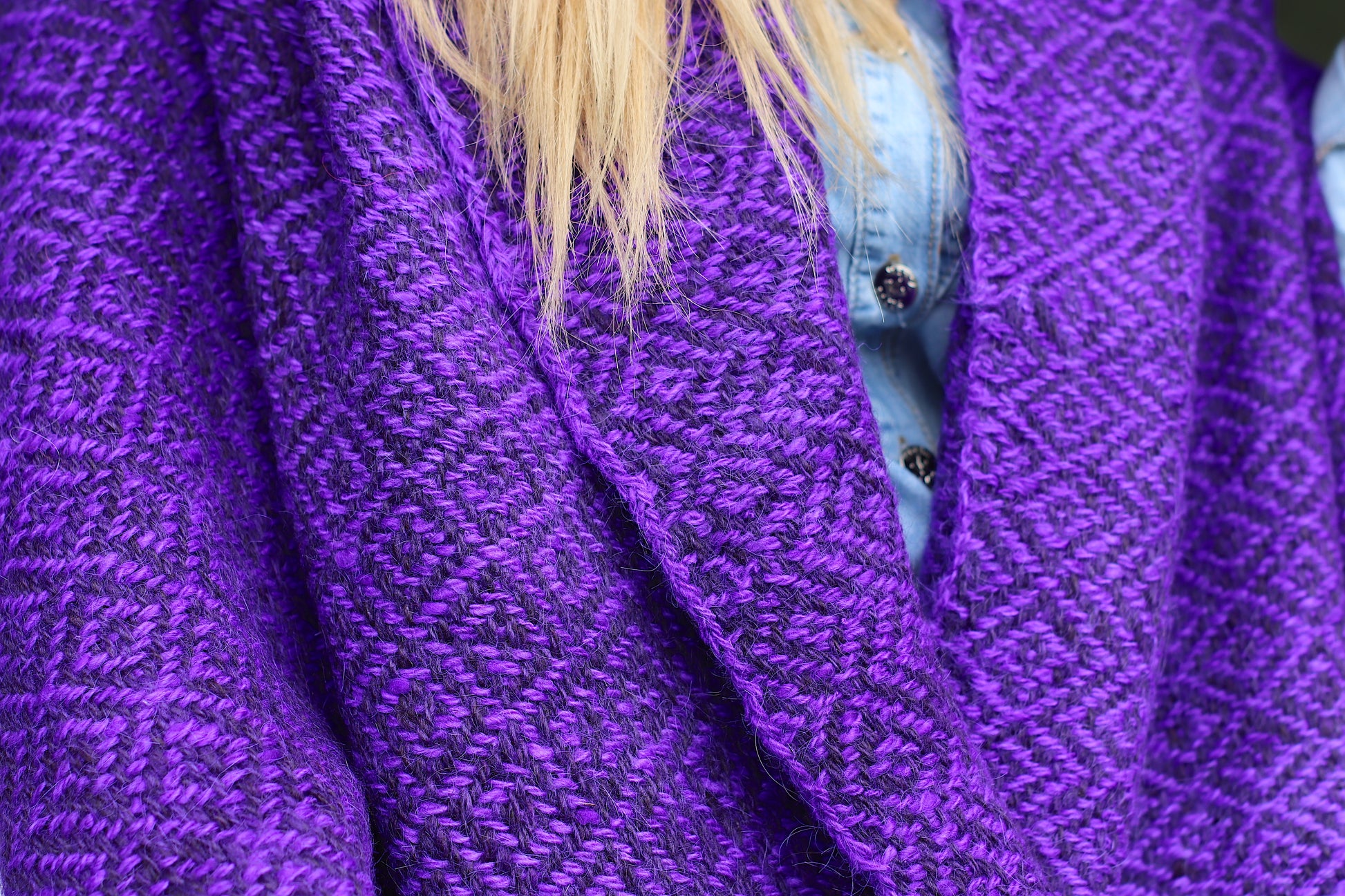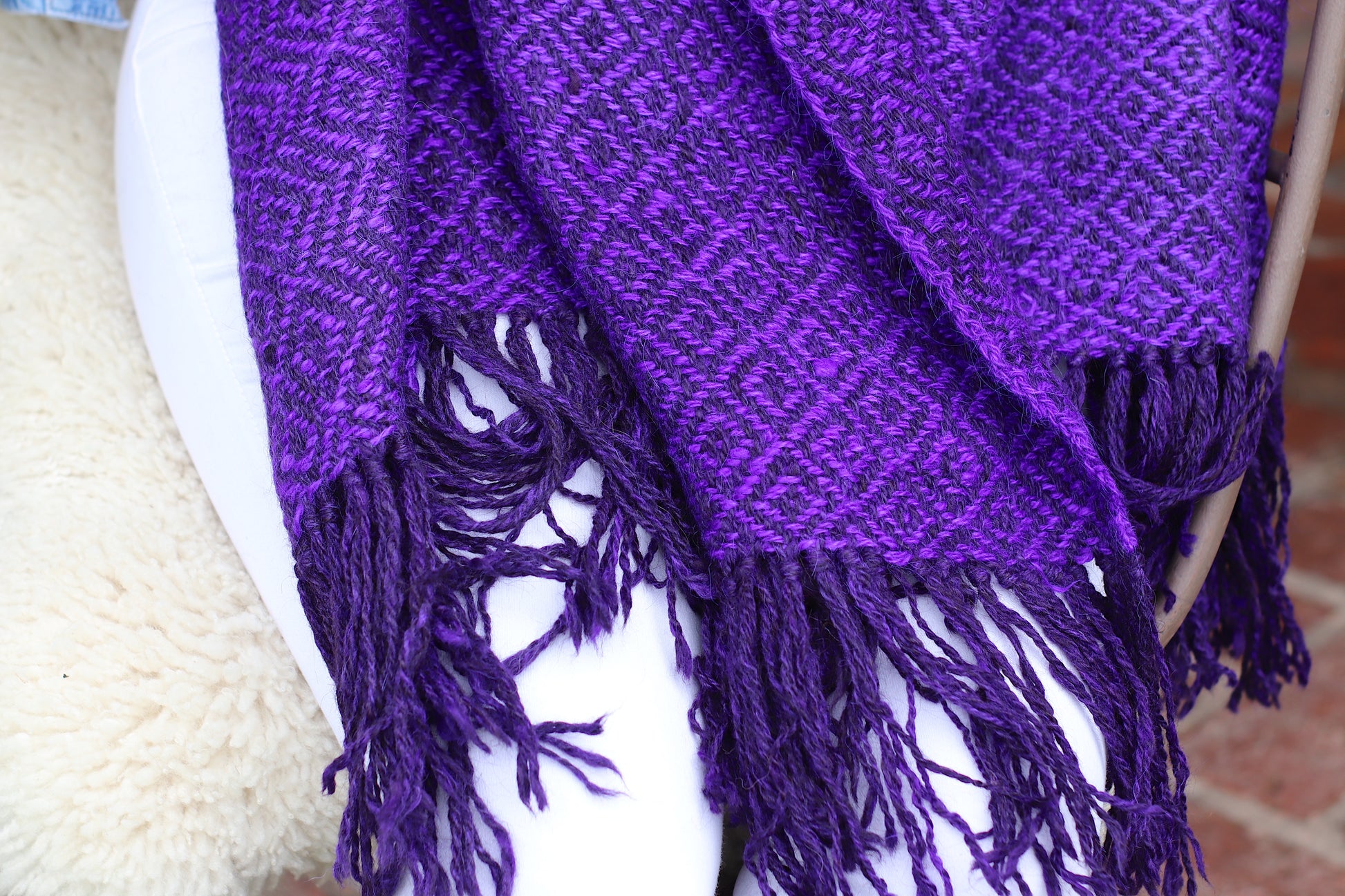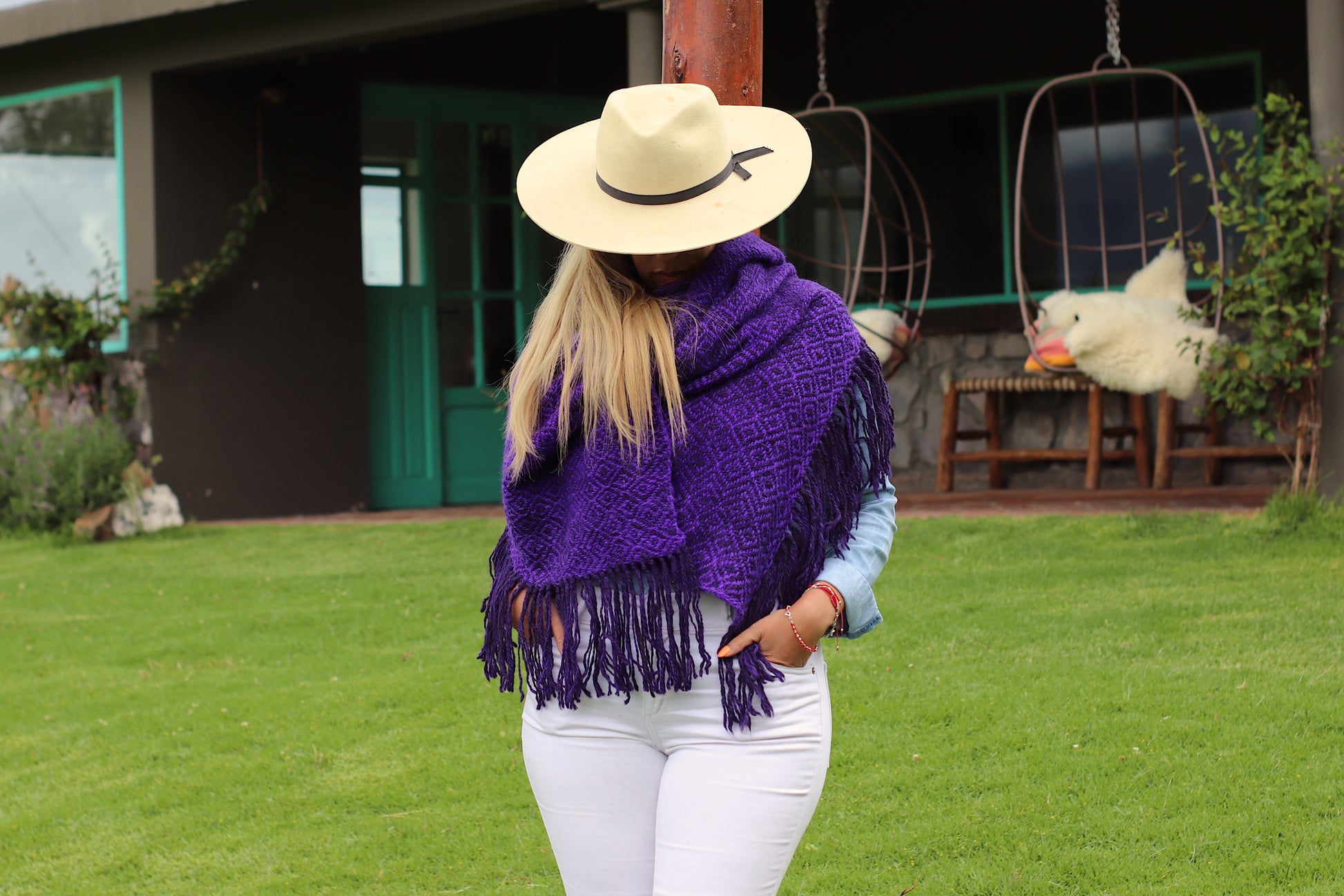 Manta MORA es parte de la colección "Las Vicuñas" hilada de fibra de llama baby y hecha en telar con técnica Ojo de Perdiz.