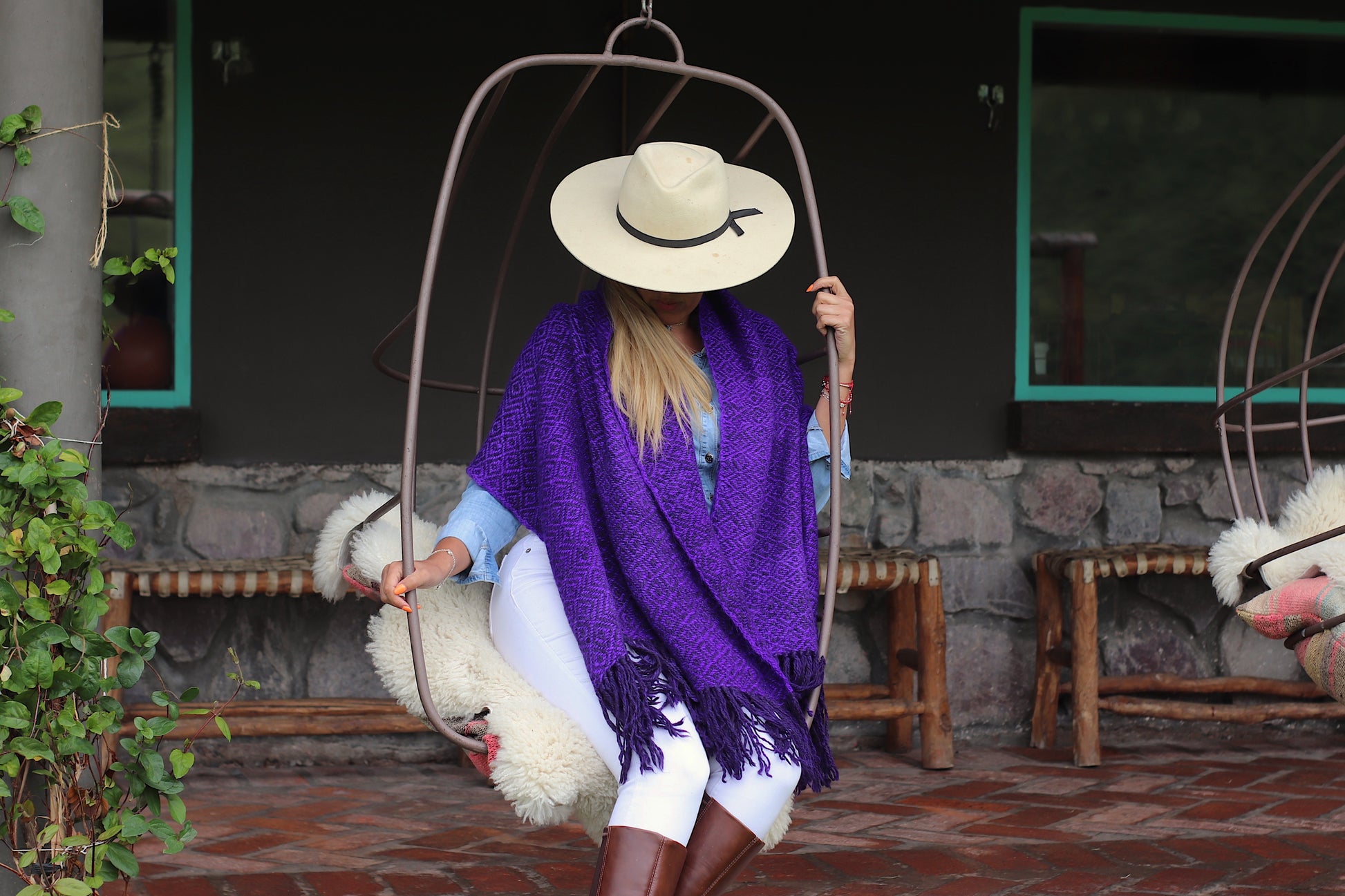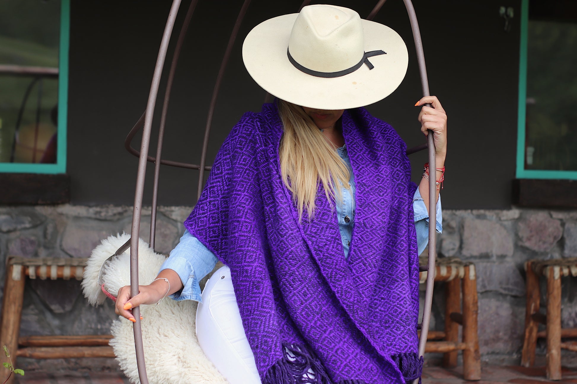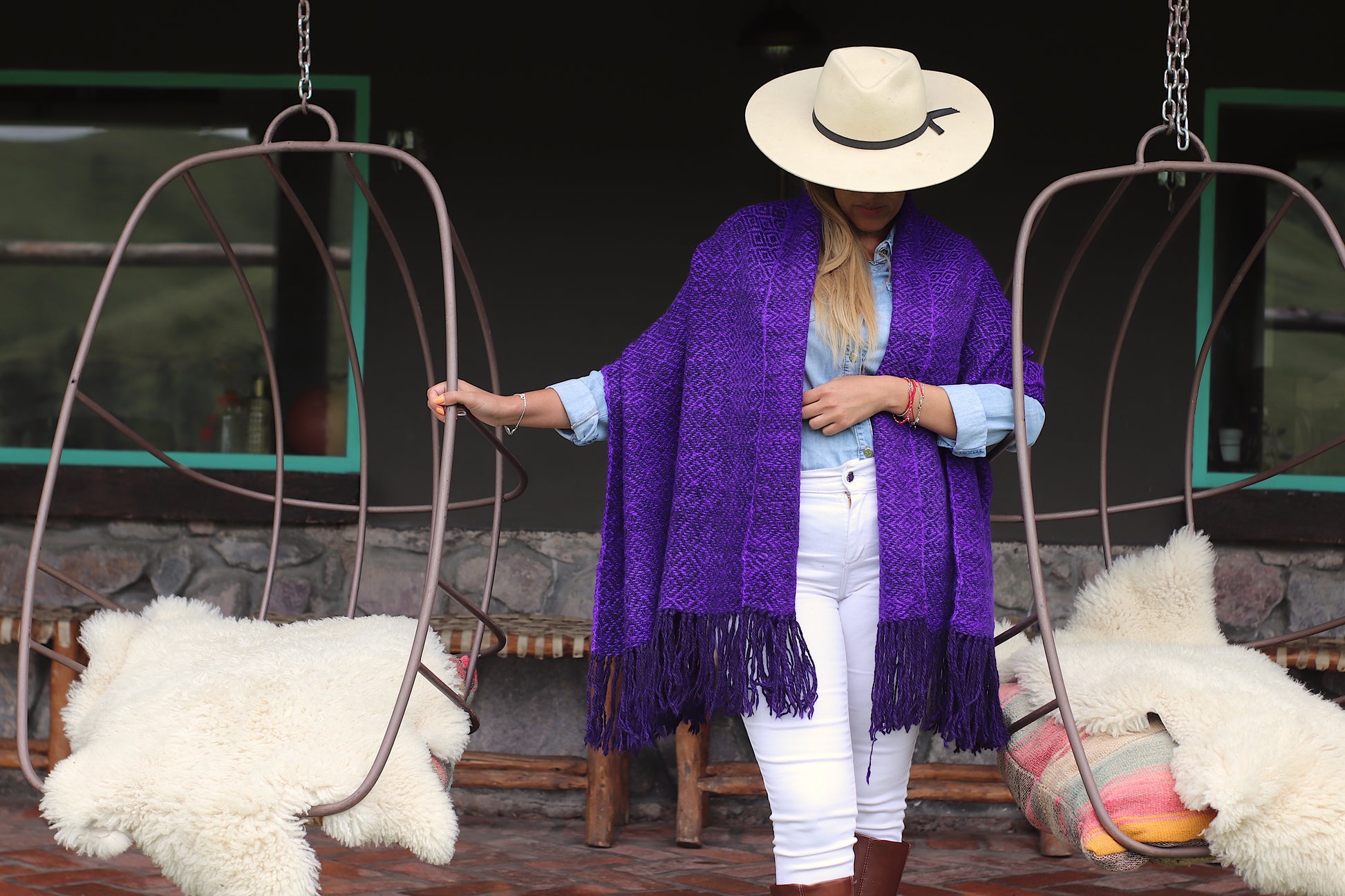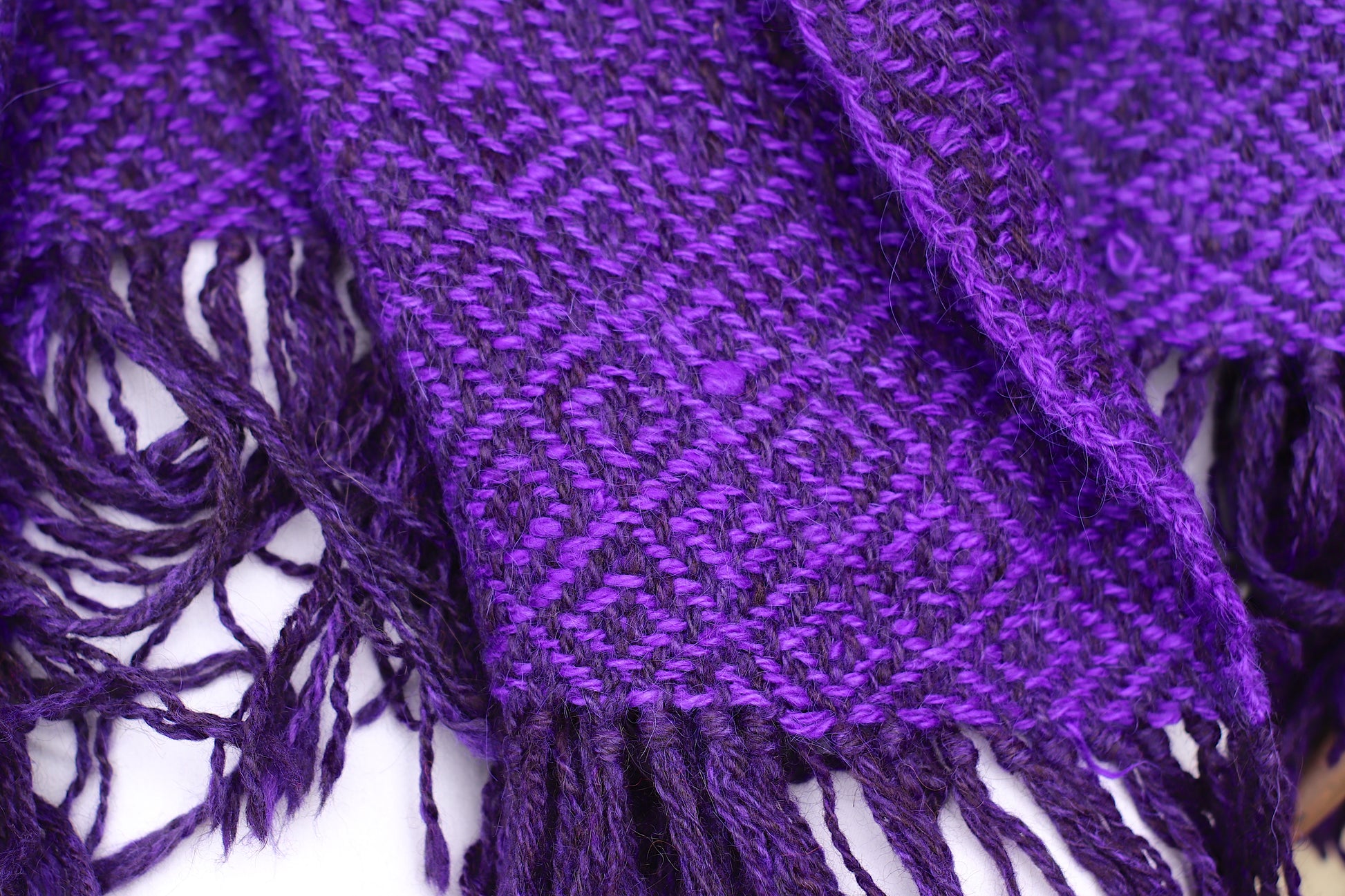 Manta MORA es parte de la colección "Las Vicuñas" hilada de fibra de llama baby y hecha en telar con técnica Ojo de Perdiz.