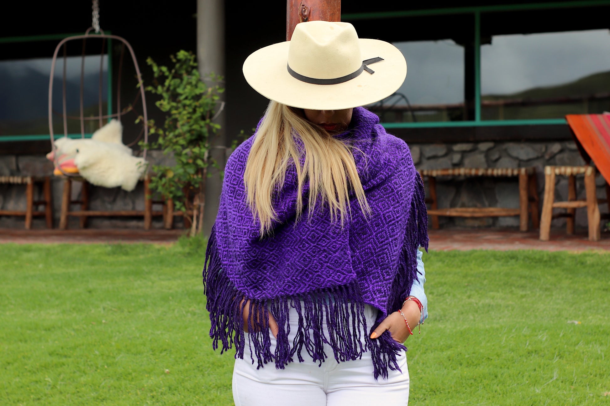Es artesanal desde la esquila, lavado de la fibra, cardado e hilado en rueca y confección en telar antiguo.