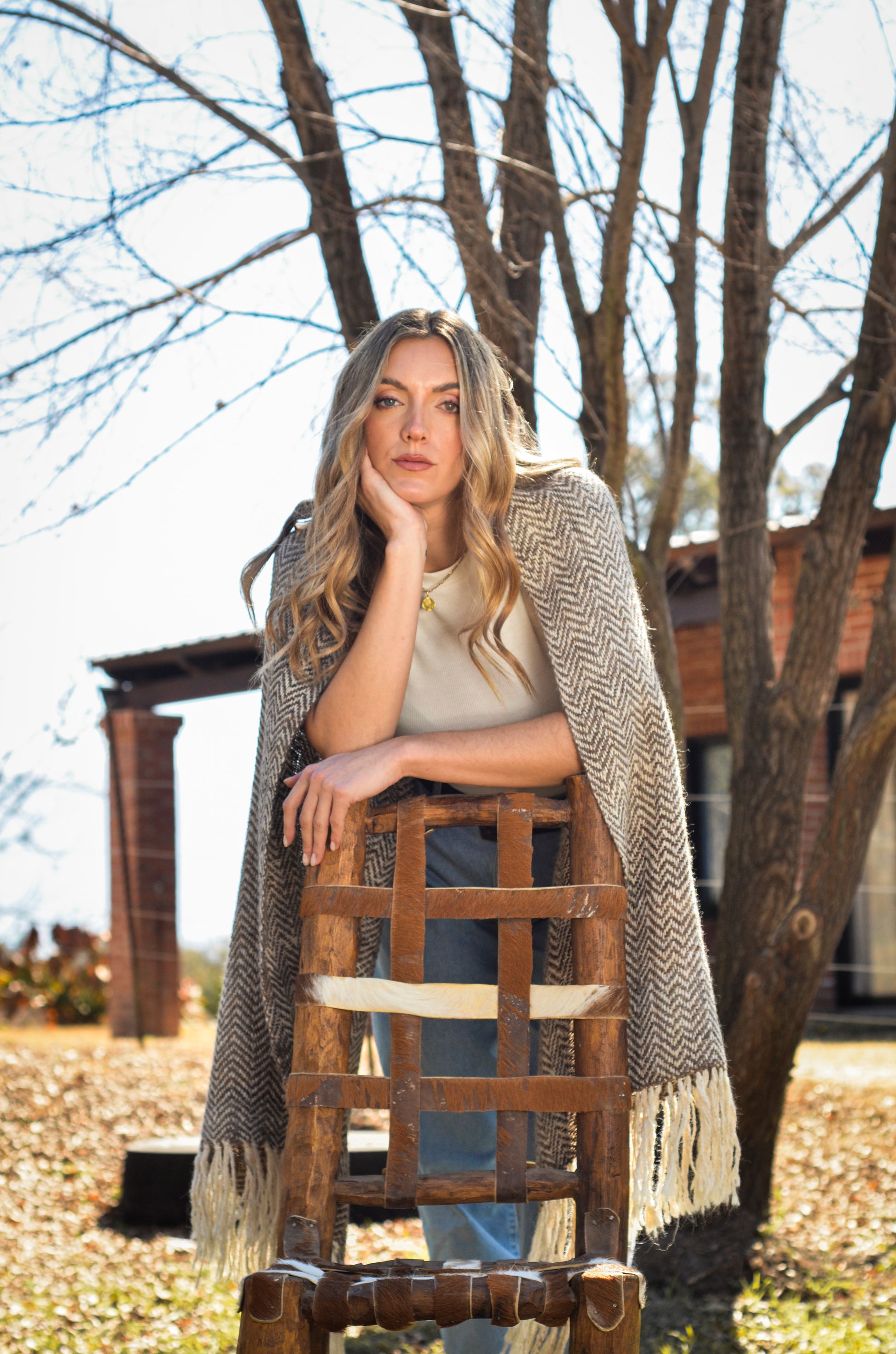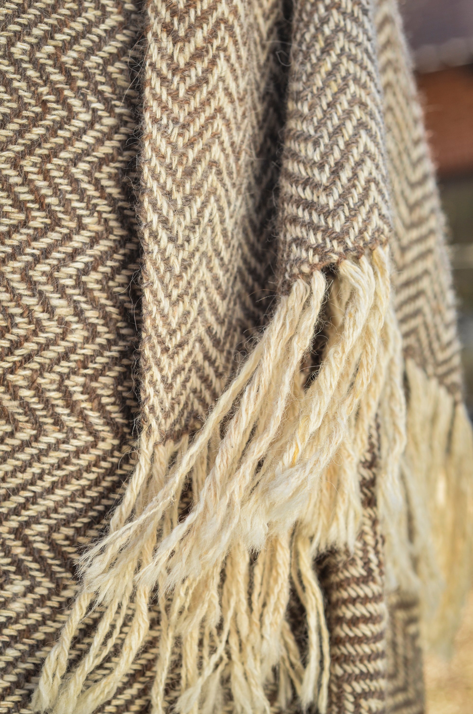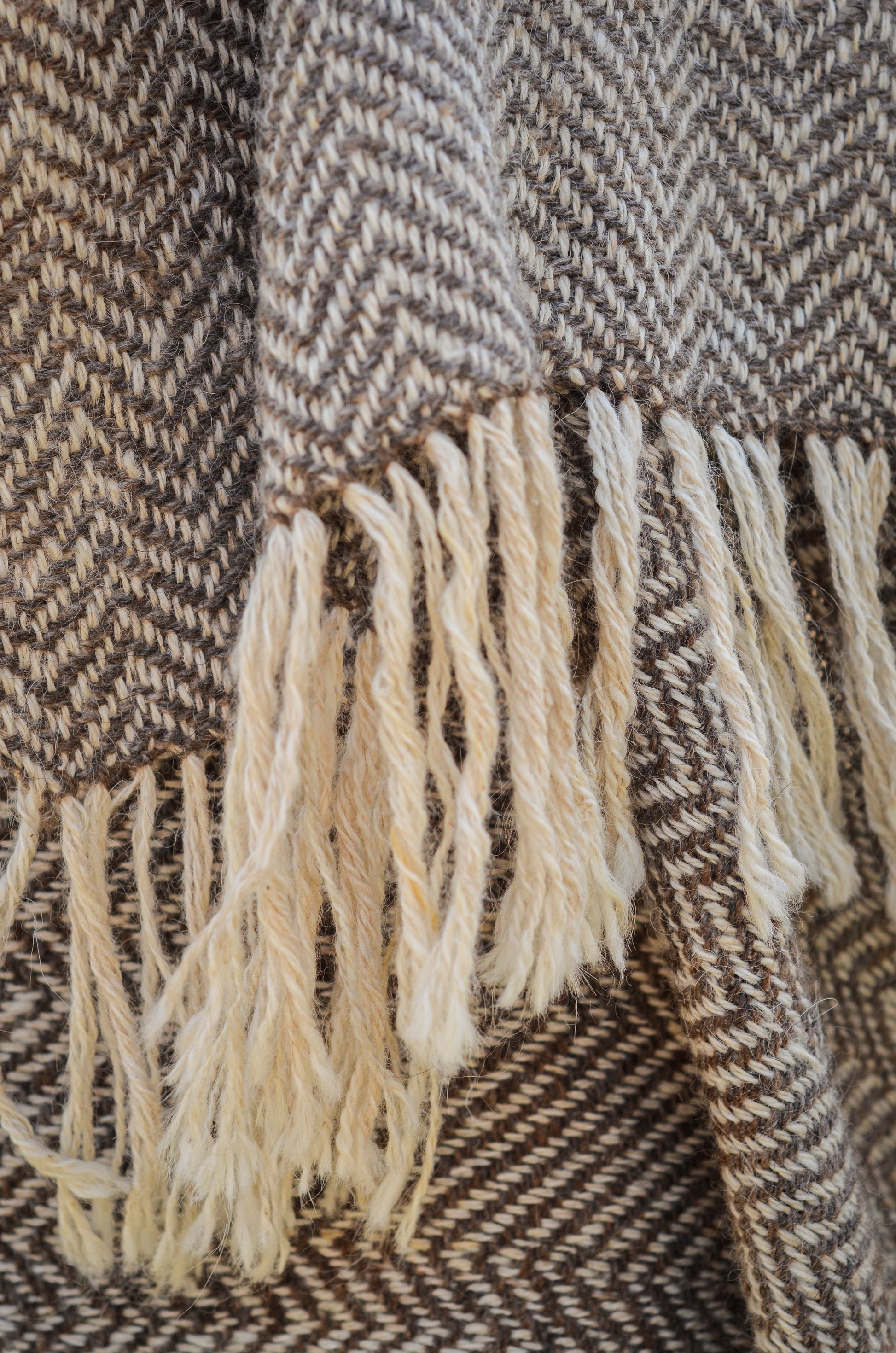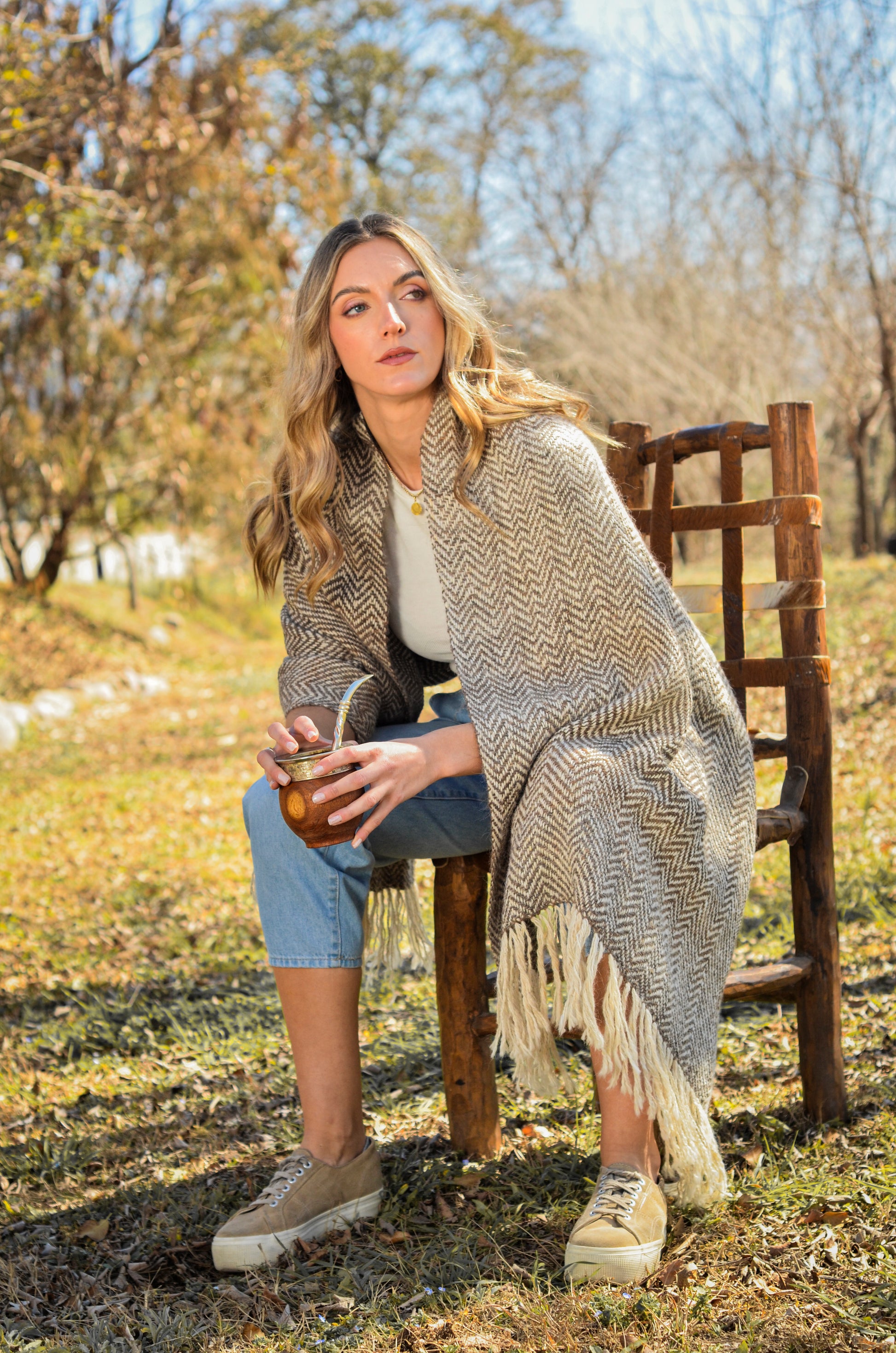 Manta "Olena" es parte de la colección "Las Marias" " hilada de fibra de llama baby y hecha en telar con técnica espiga.