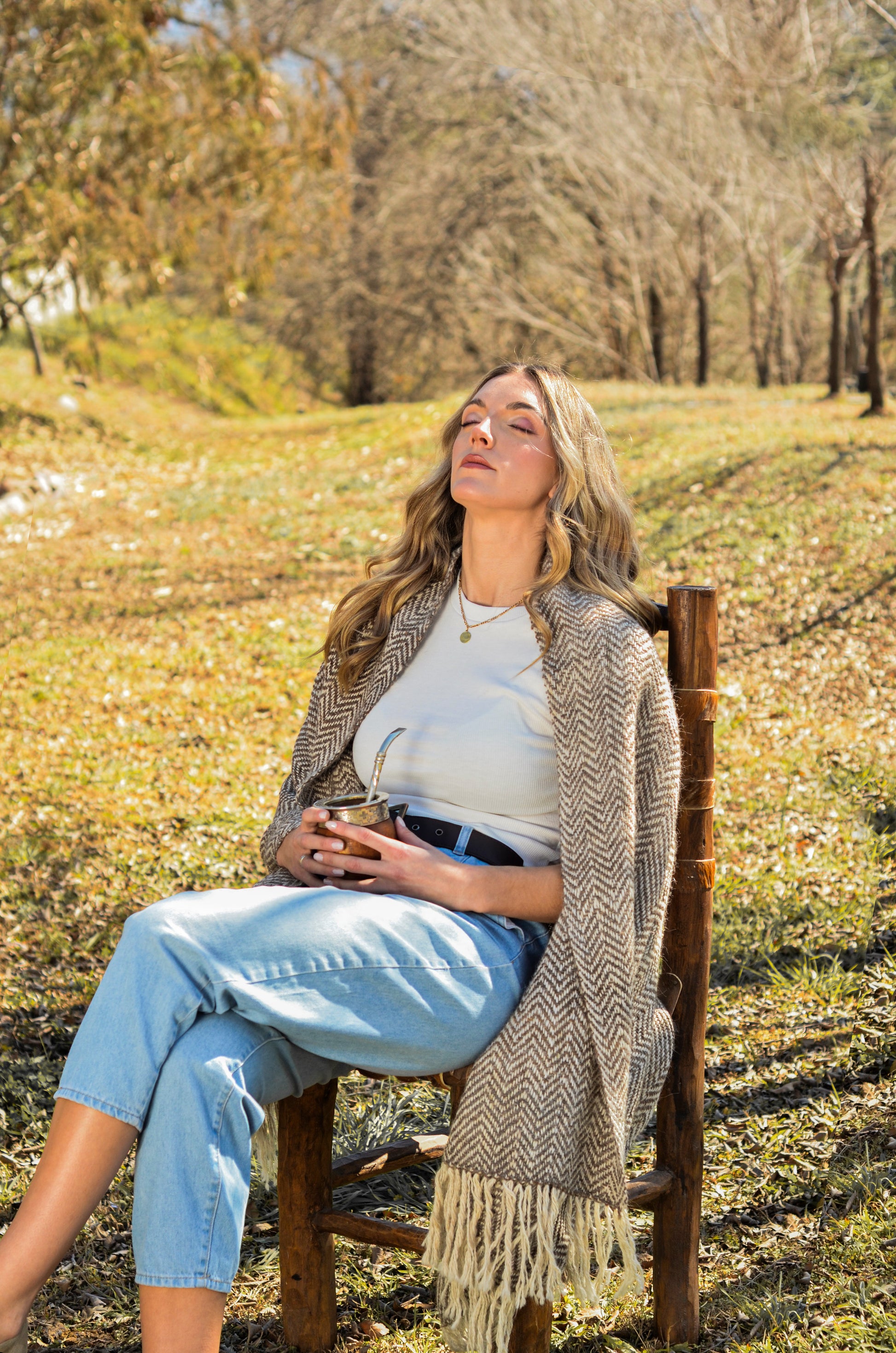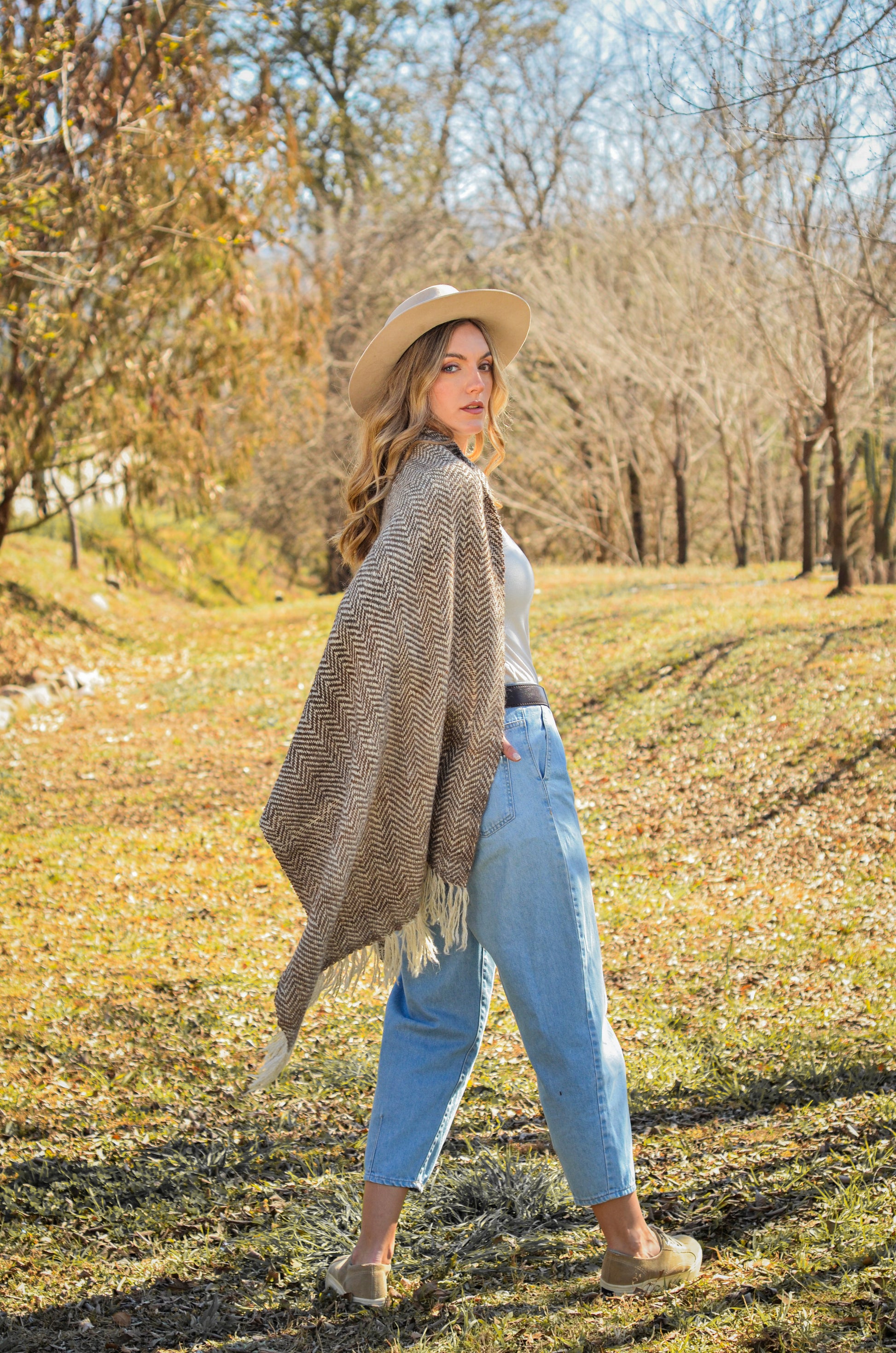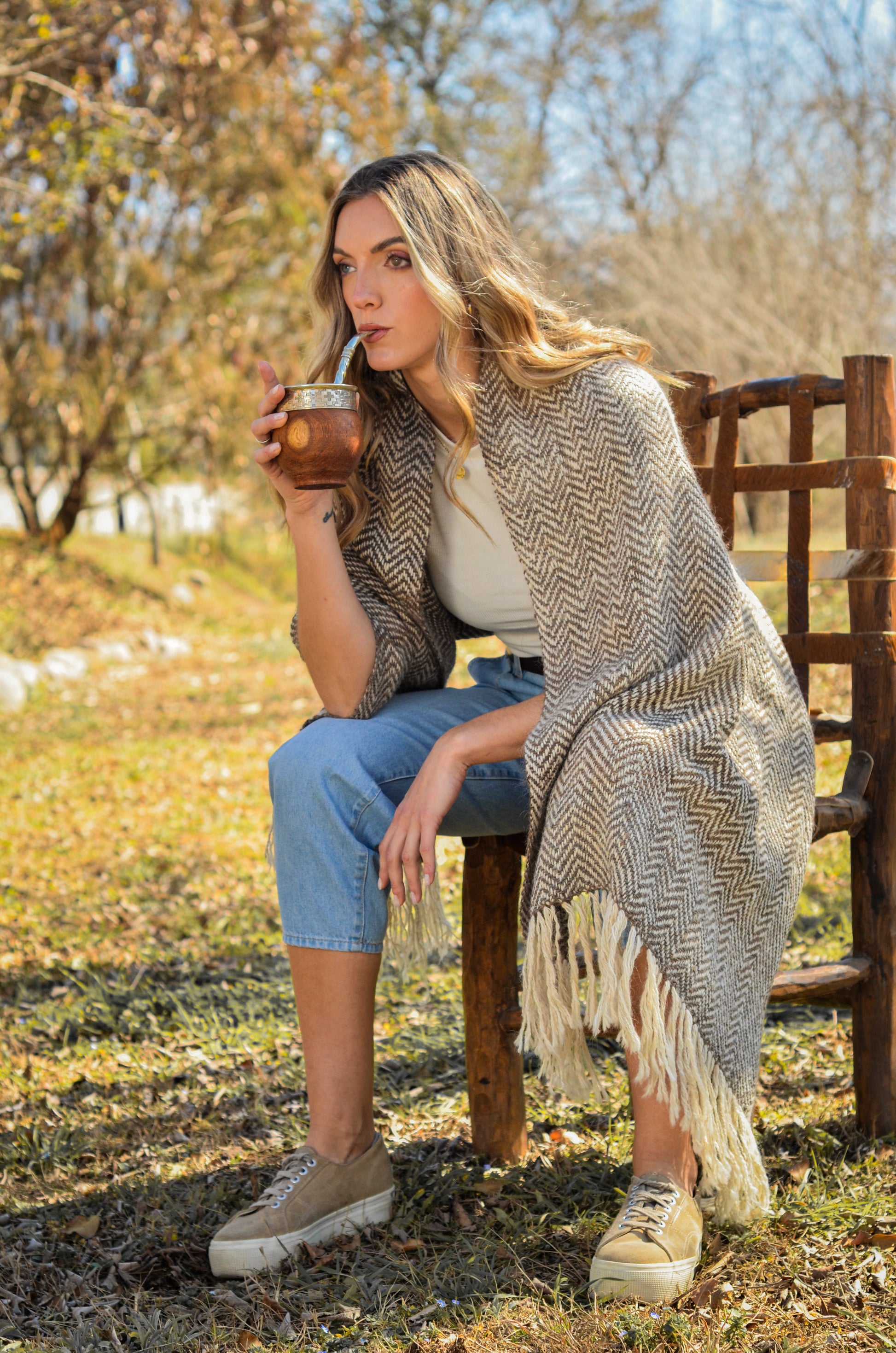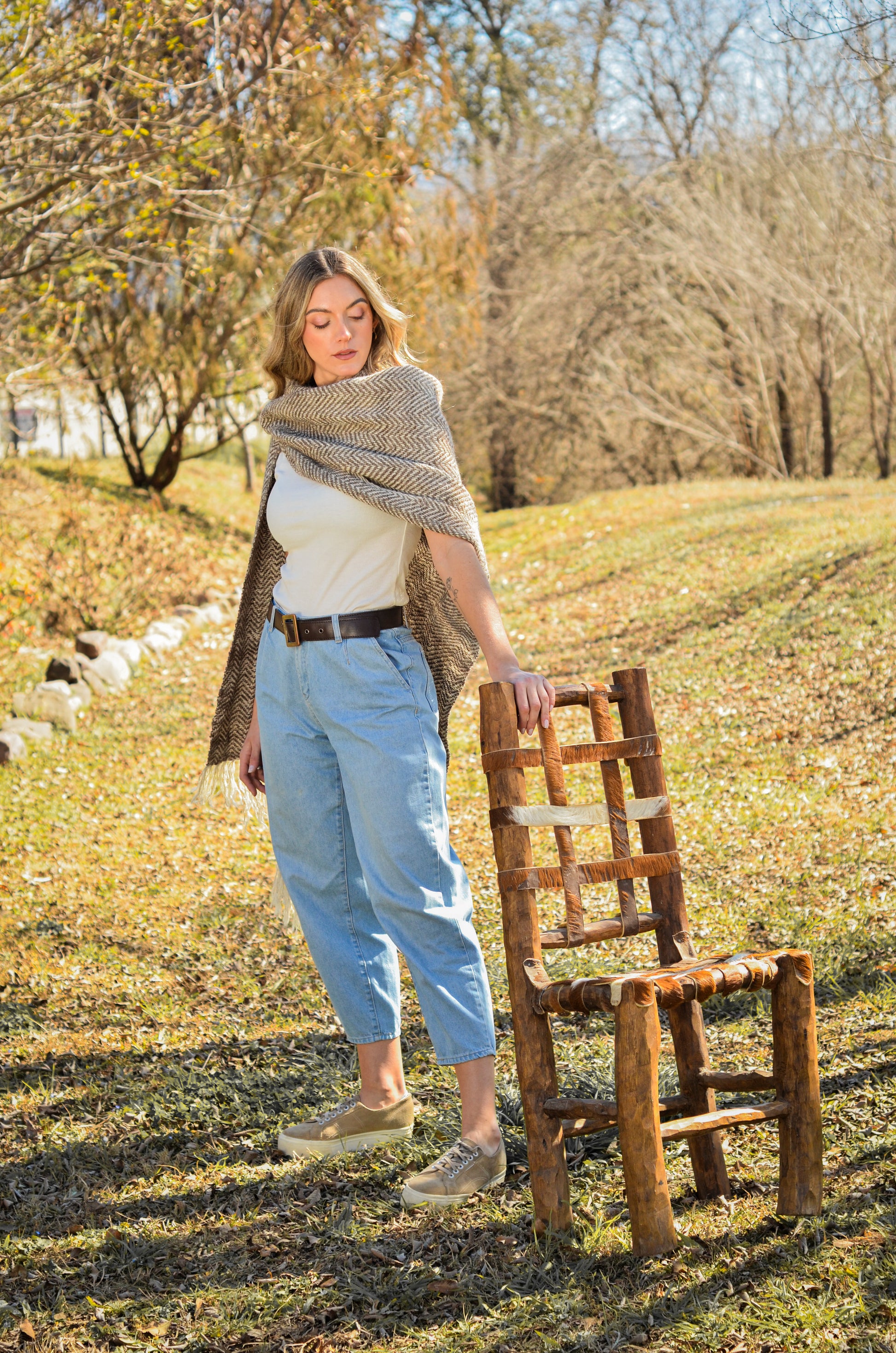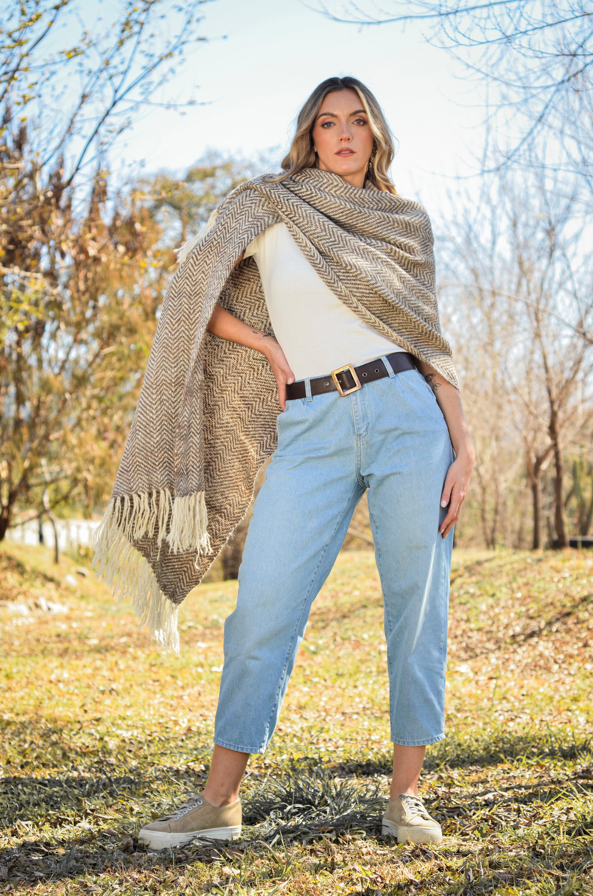 Manta "Olena" es parte de la colección "Las Marias" " hilada de fibra de llama baby y hecha en telar con técnica espiga.