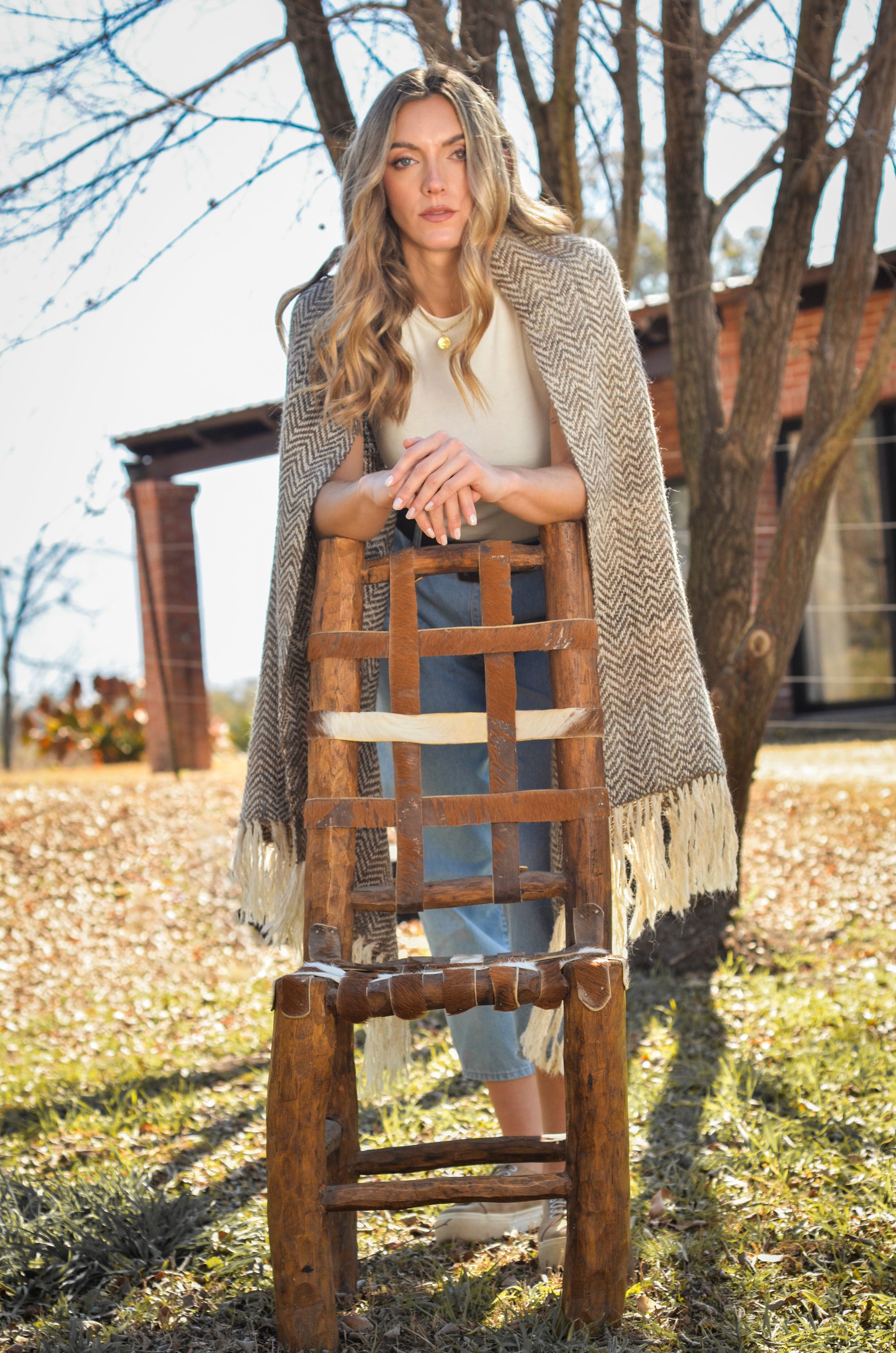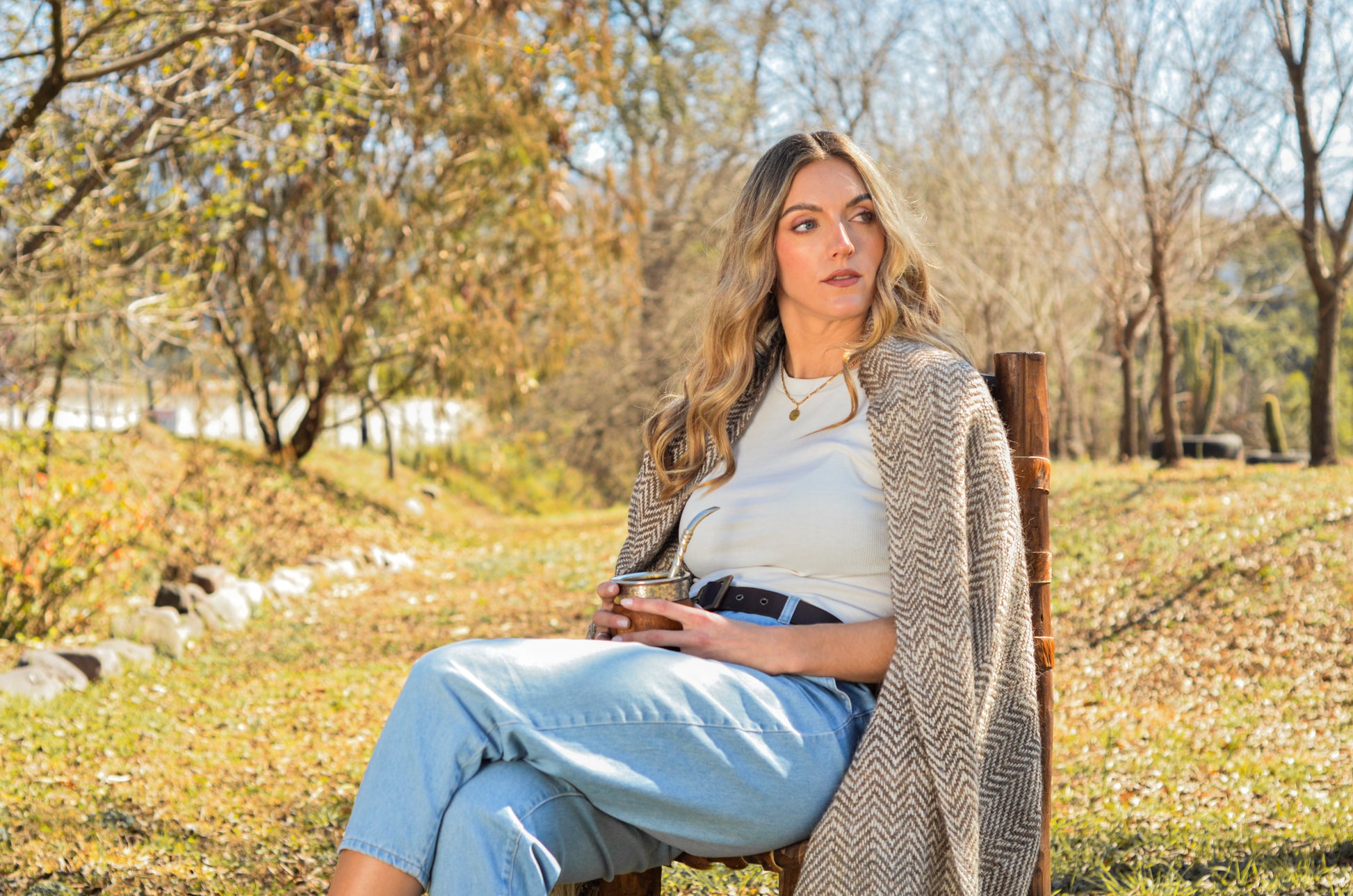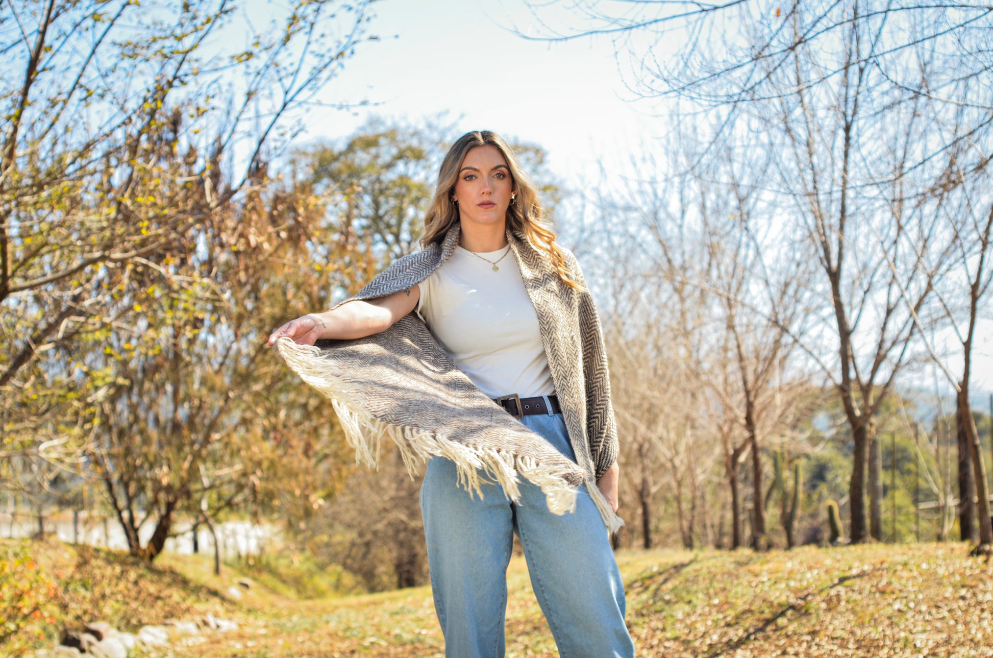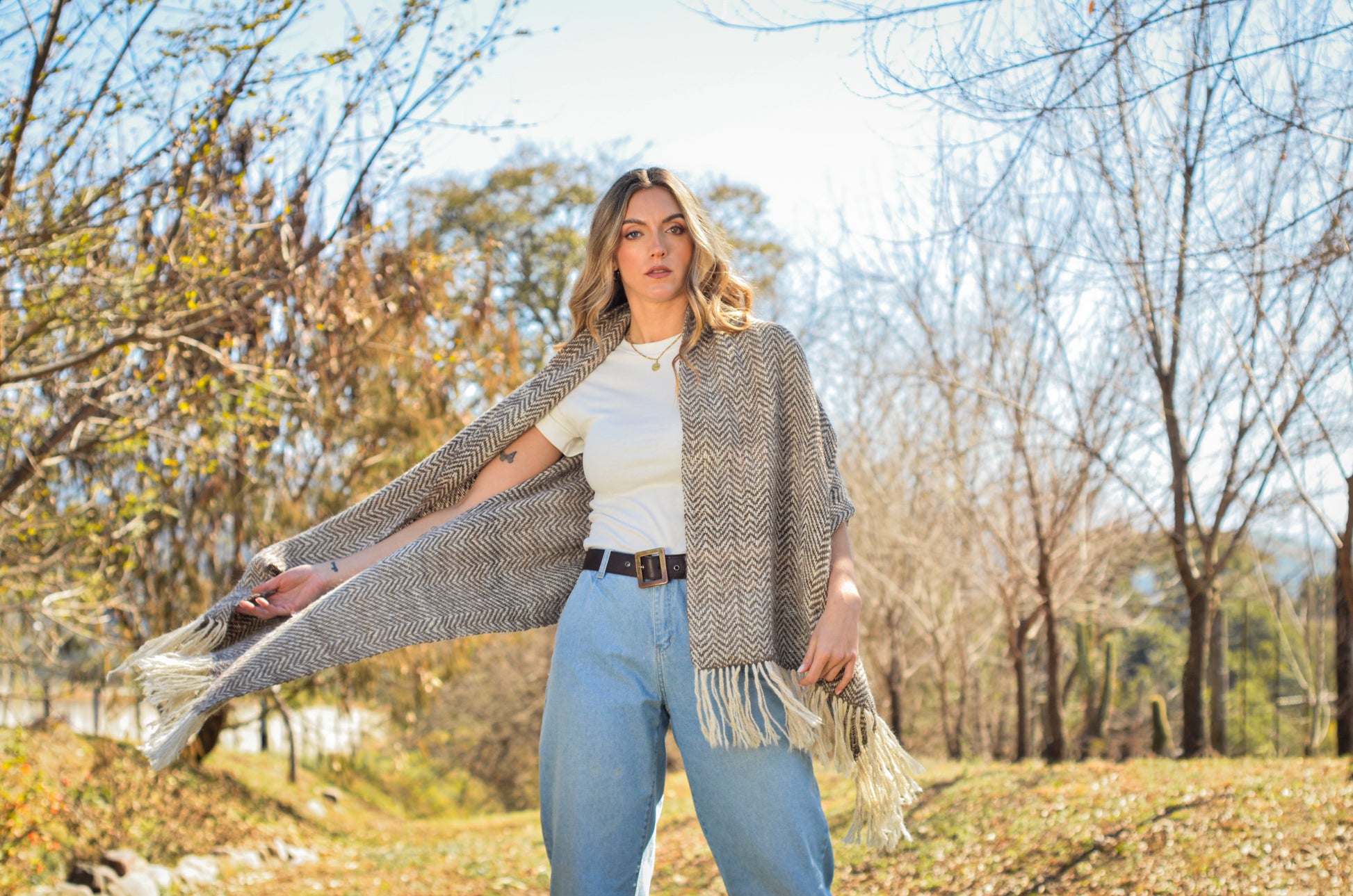 Manta "Olena" es parte de la colección "Las Marias" " hilada de fibra de llama baby y hecha en telar con técnica espiga.