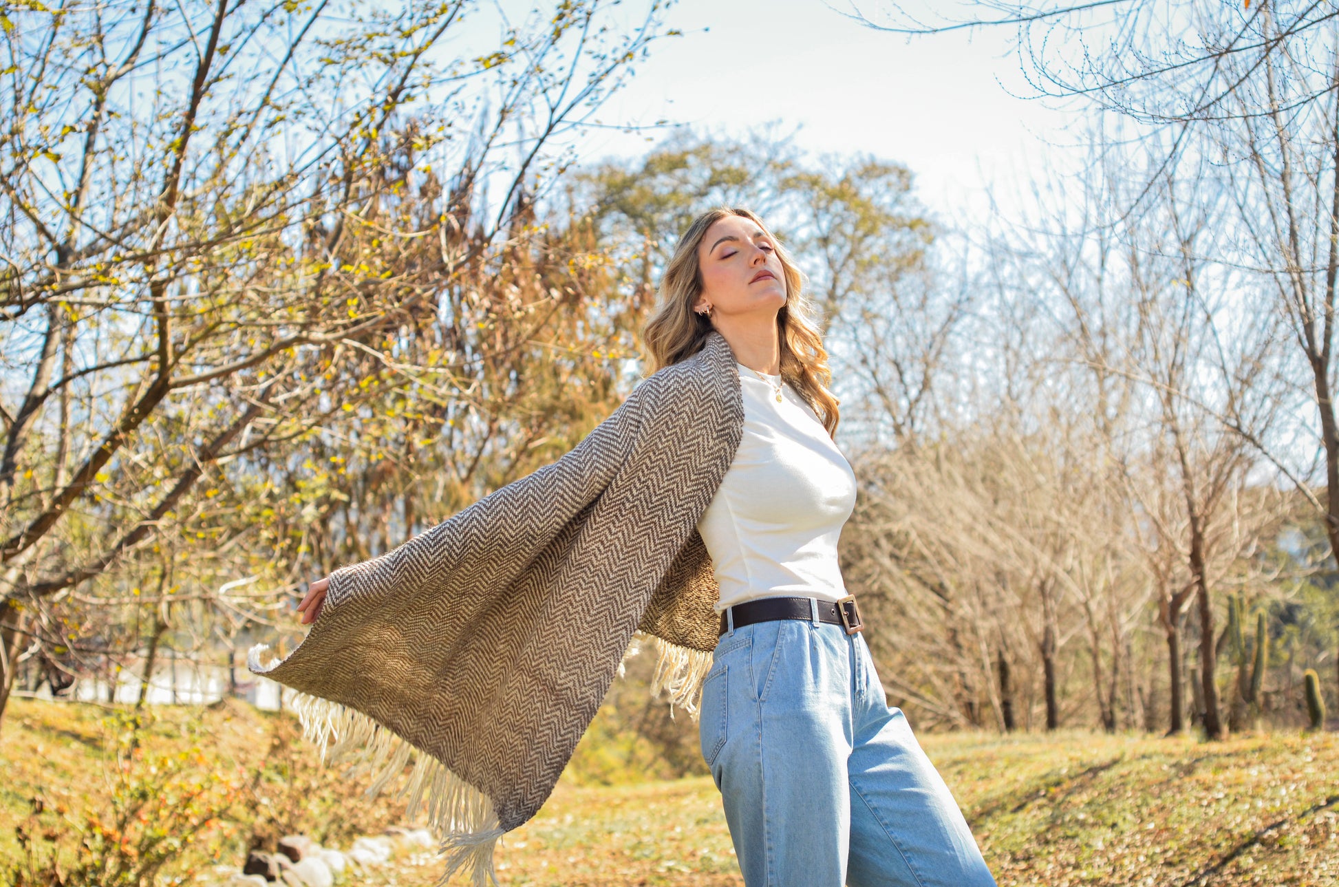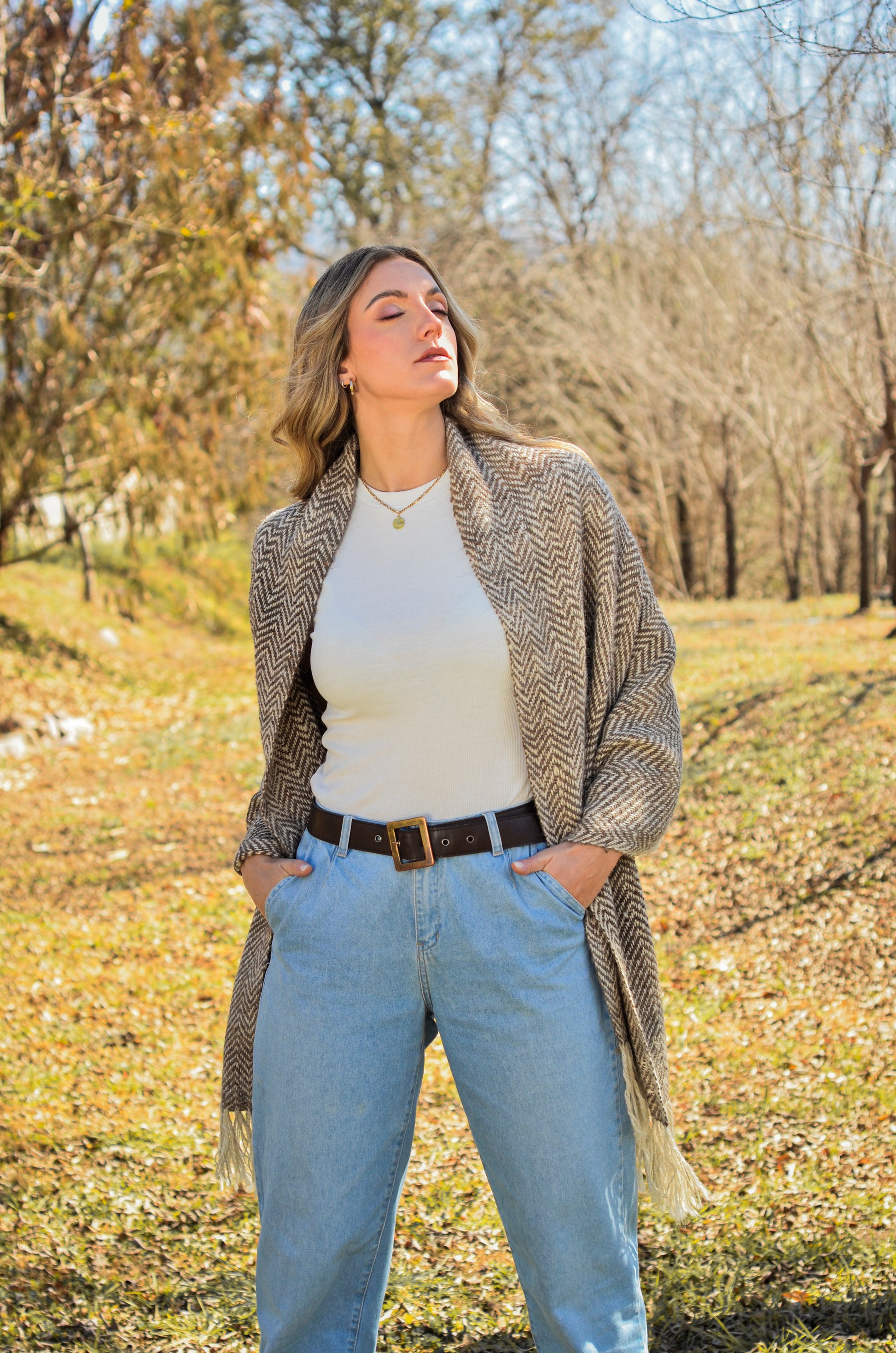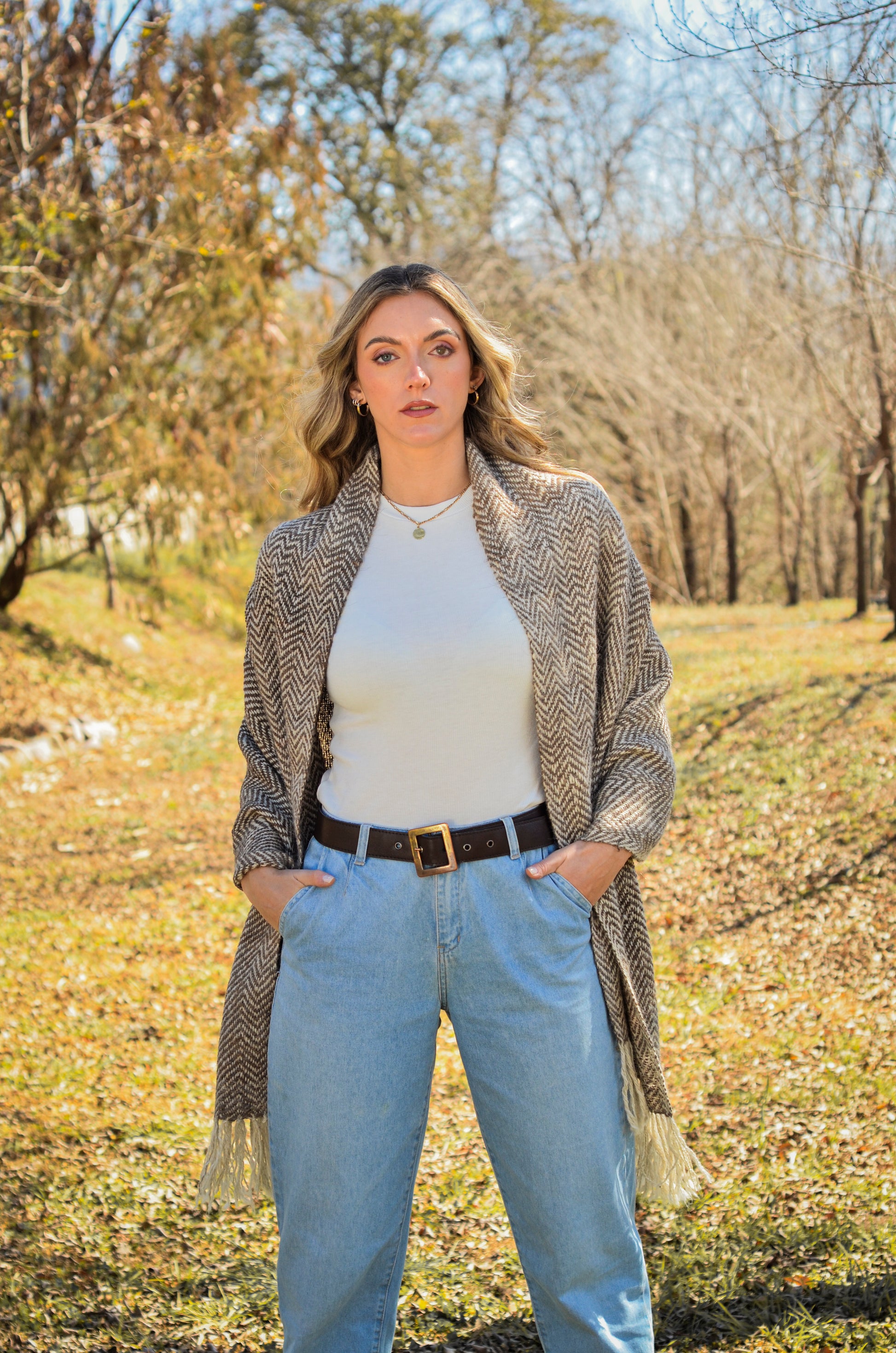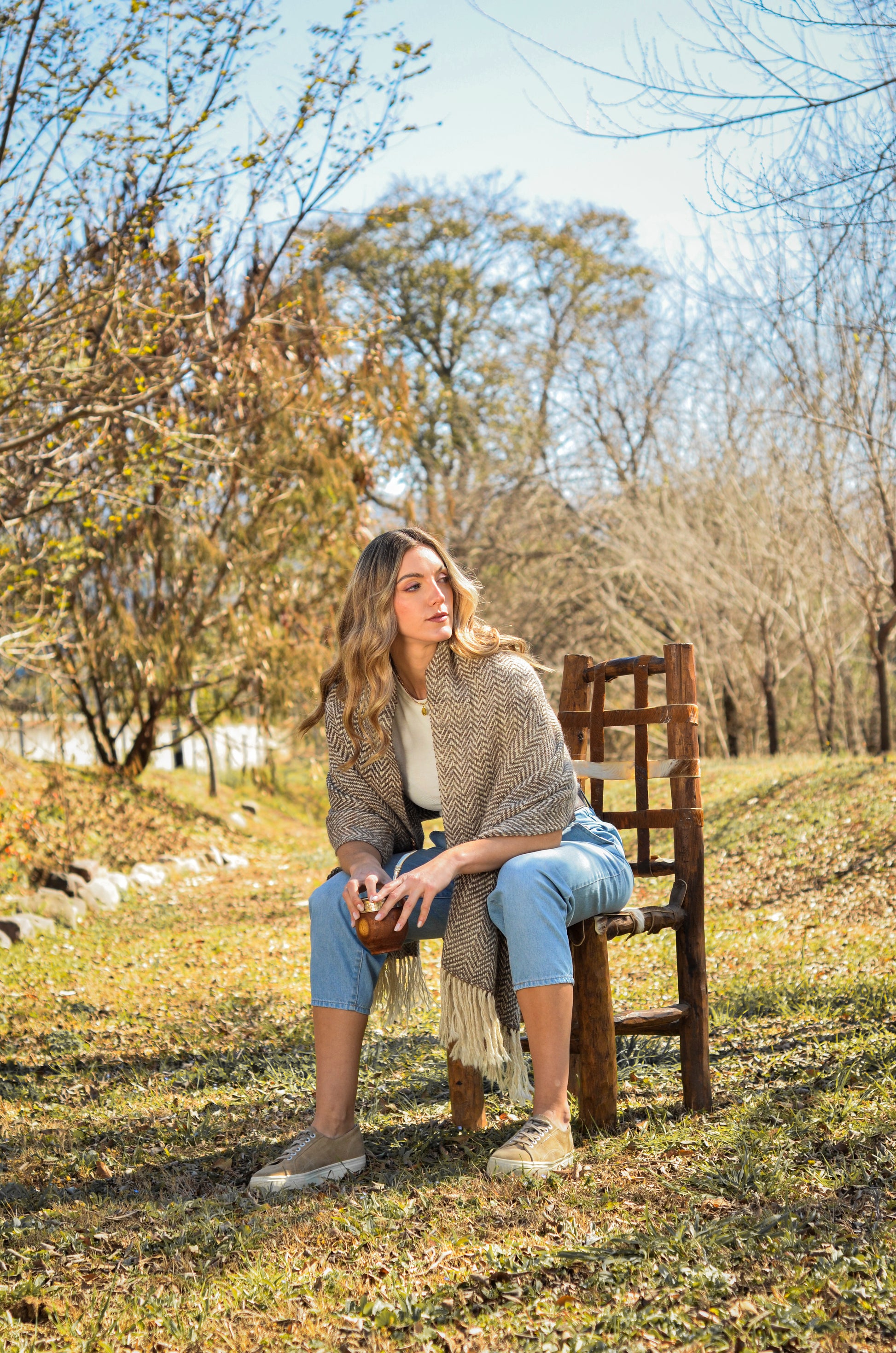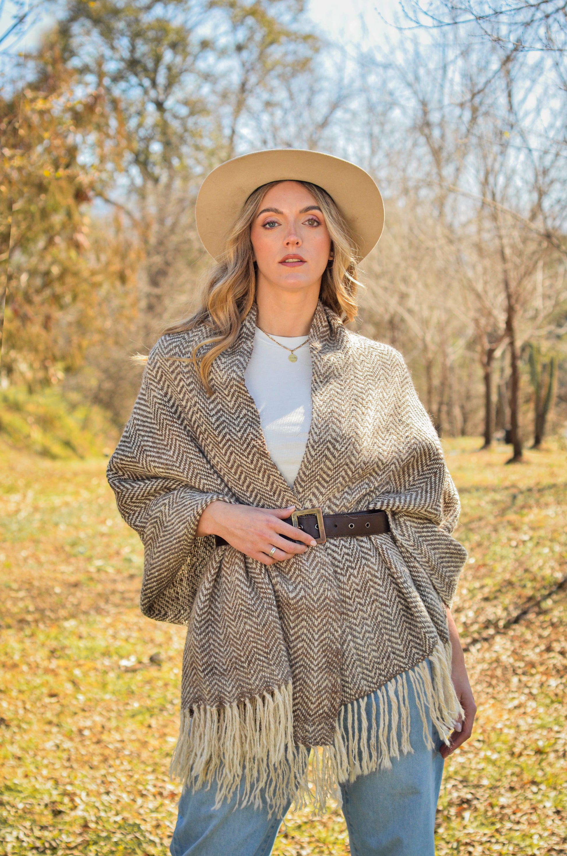 Manta "Olena" es parte de la colección "Las Marias" " hilada de fibra de llama baby y hecha en telar con técnica espiga.