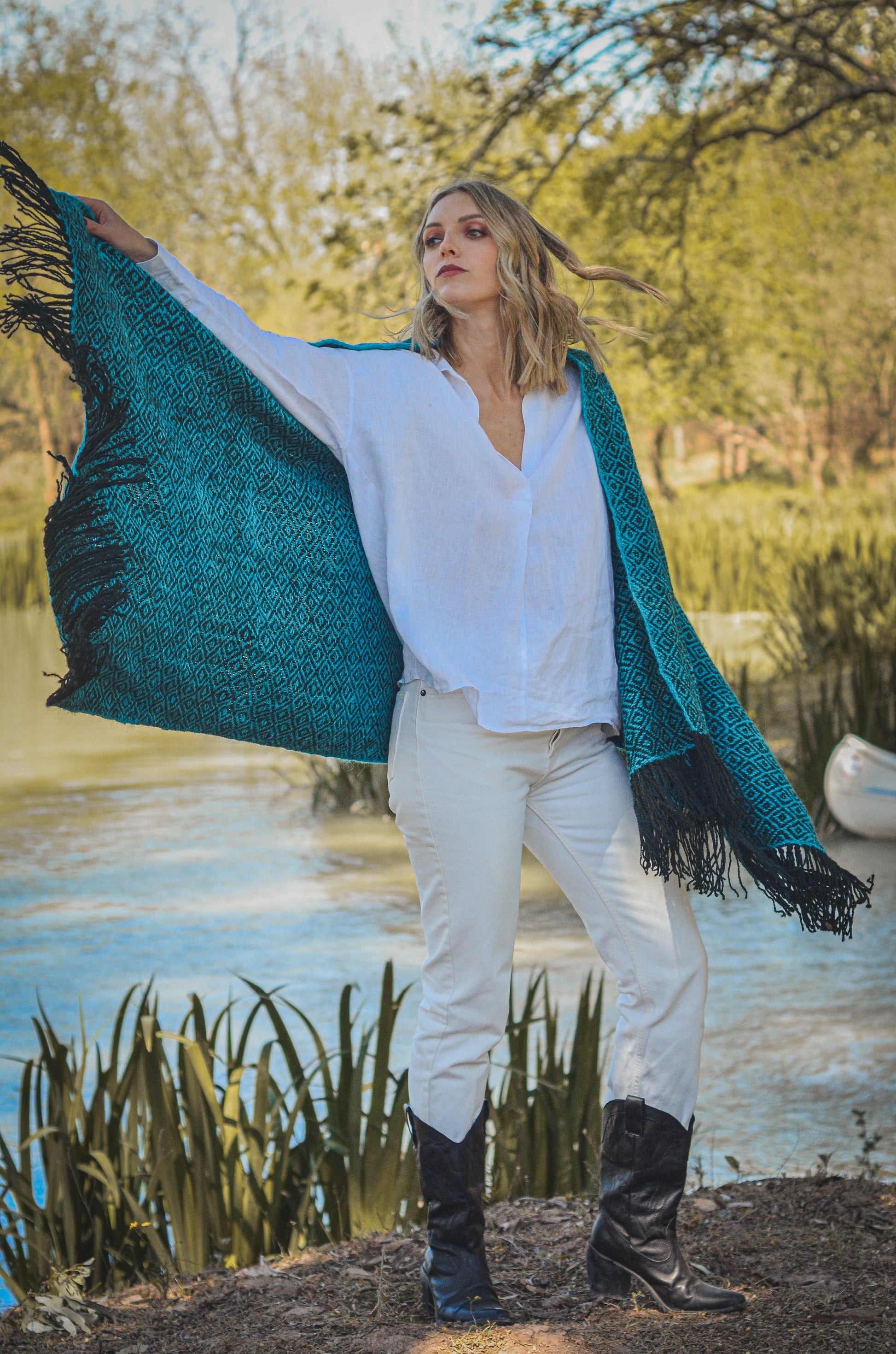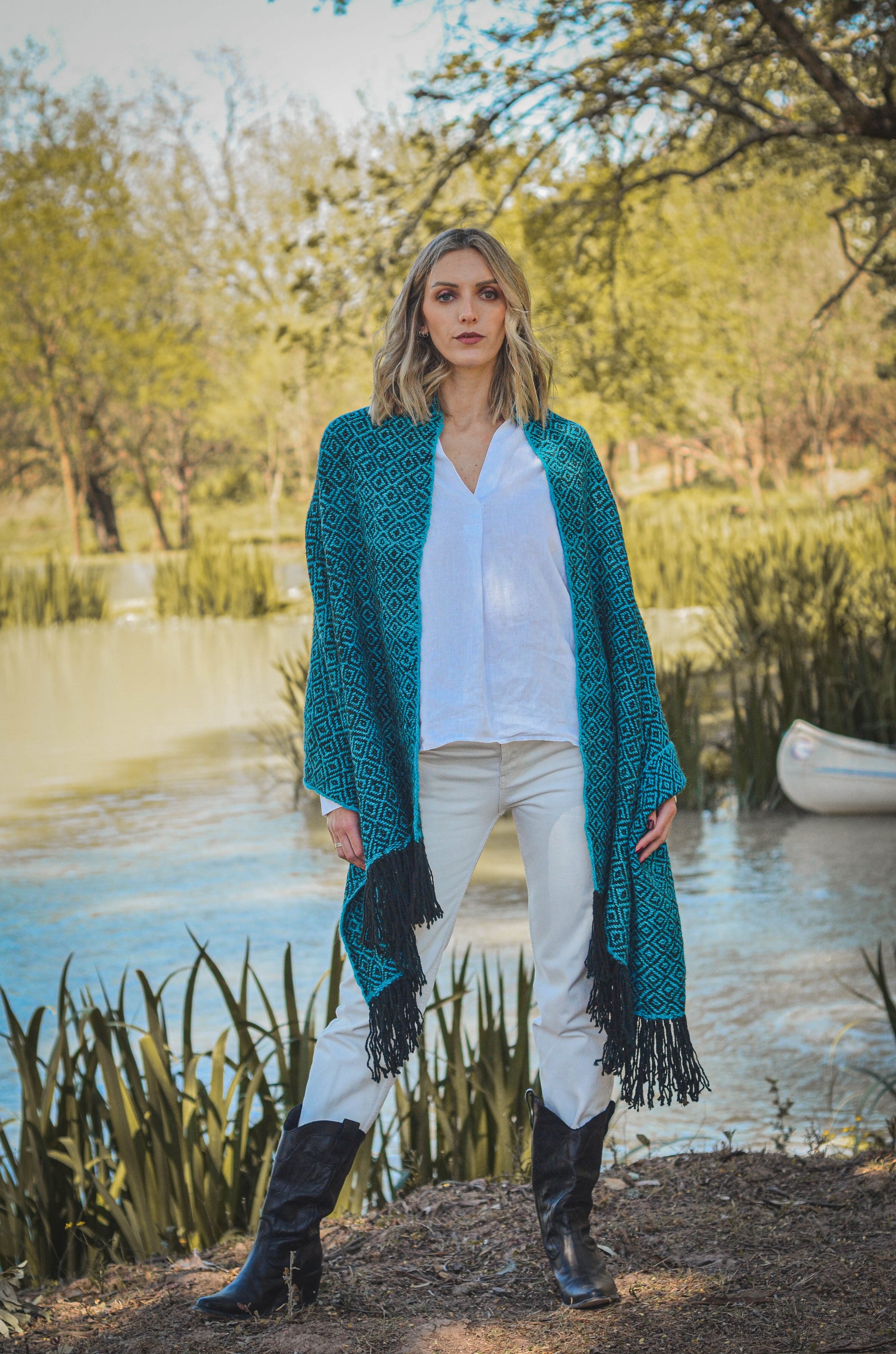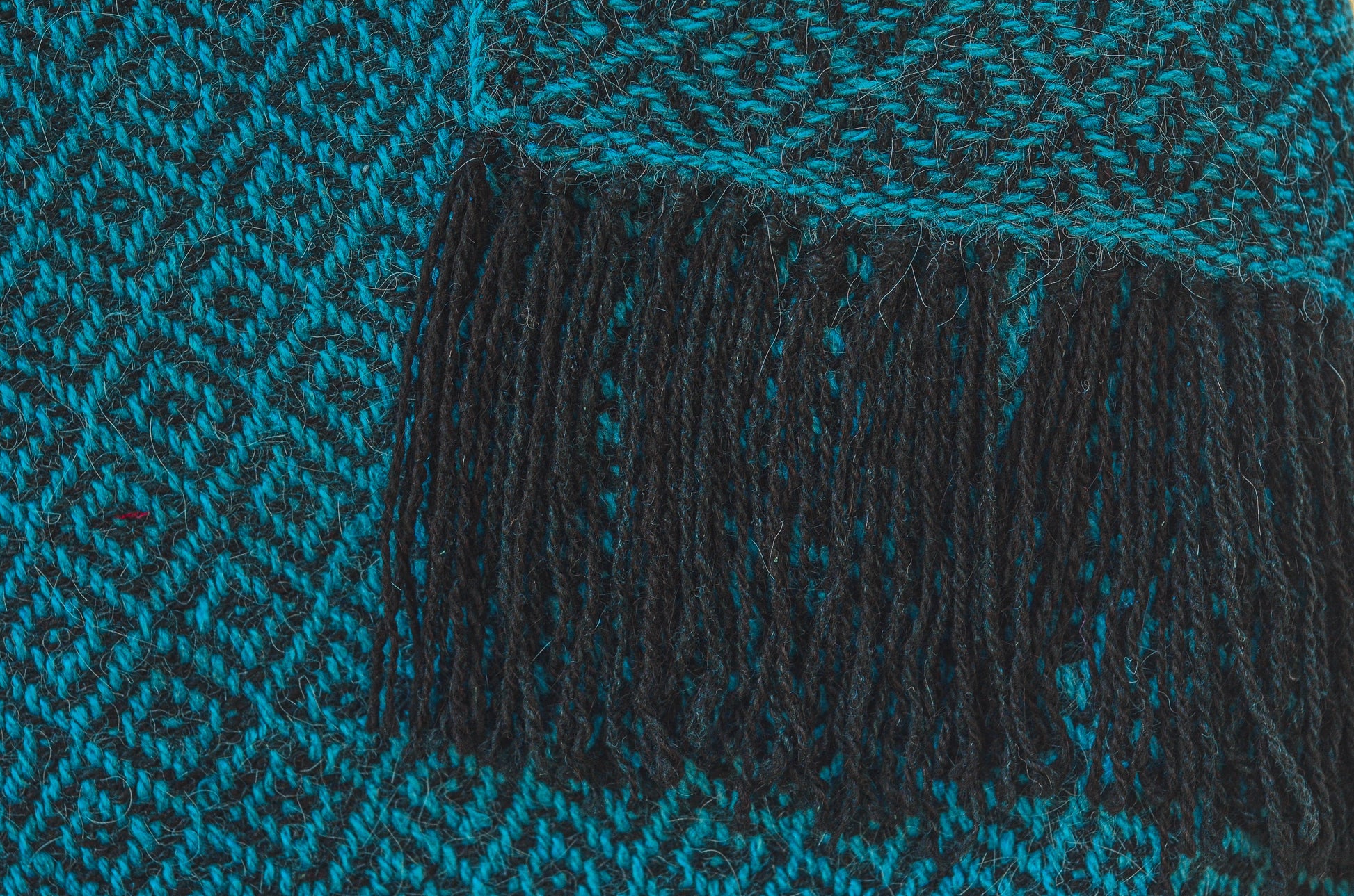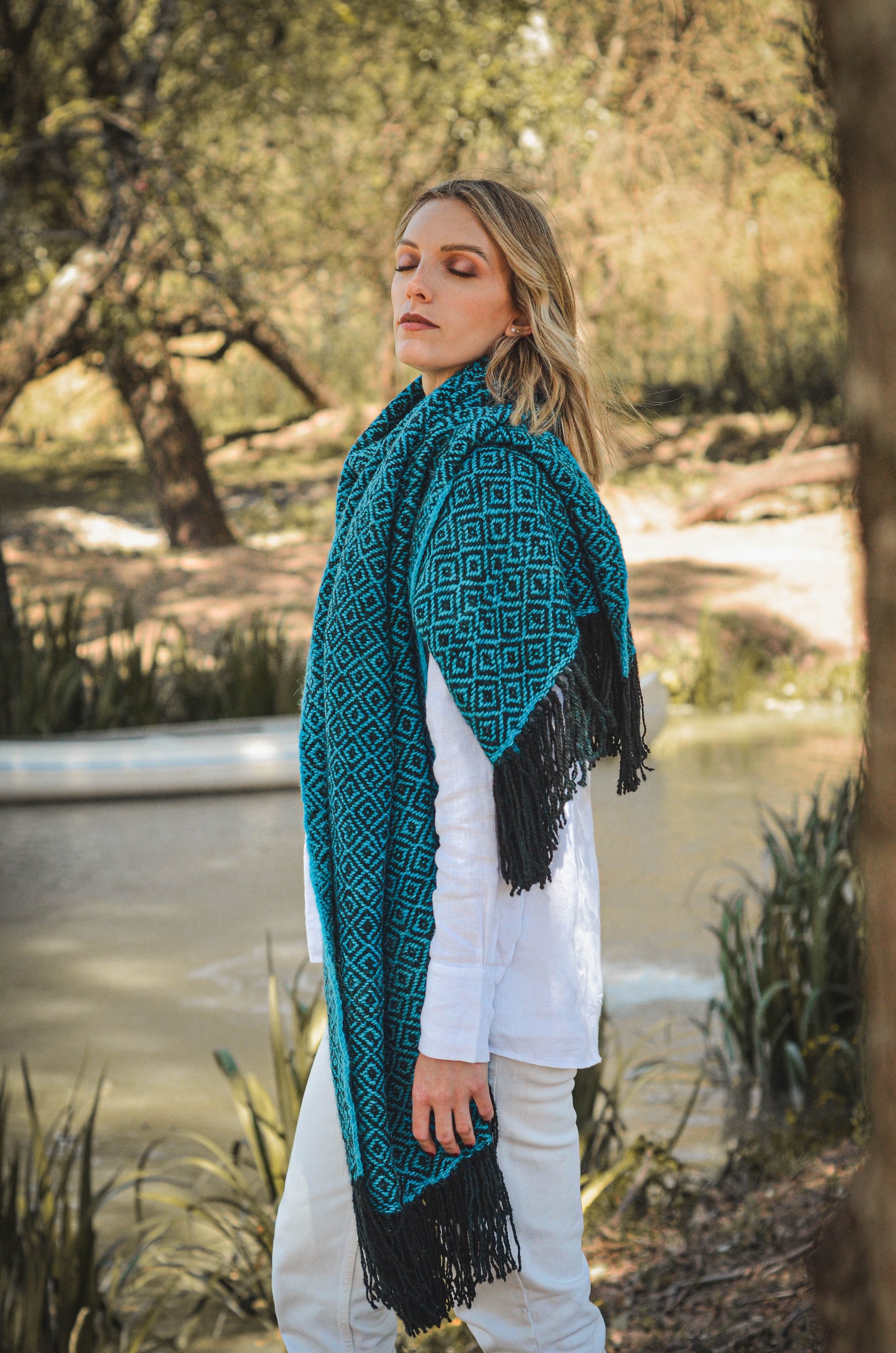 Manta "Zaya" es parte de la colección "Las Marias" hilada de fibra de llama baby y hecha en telar con técnica Ojo de Perdiz.