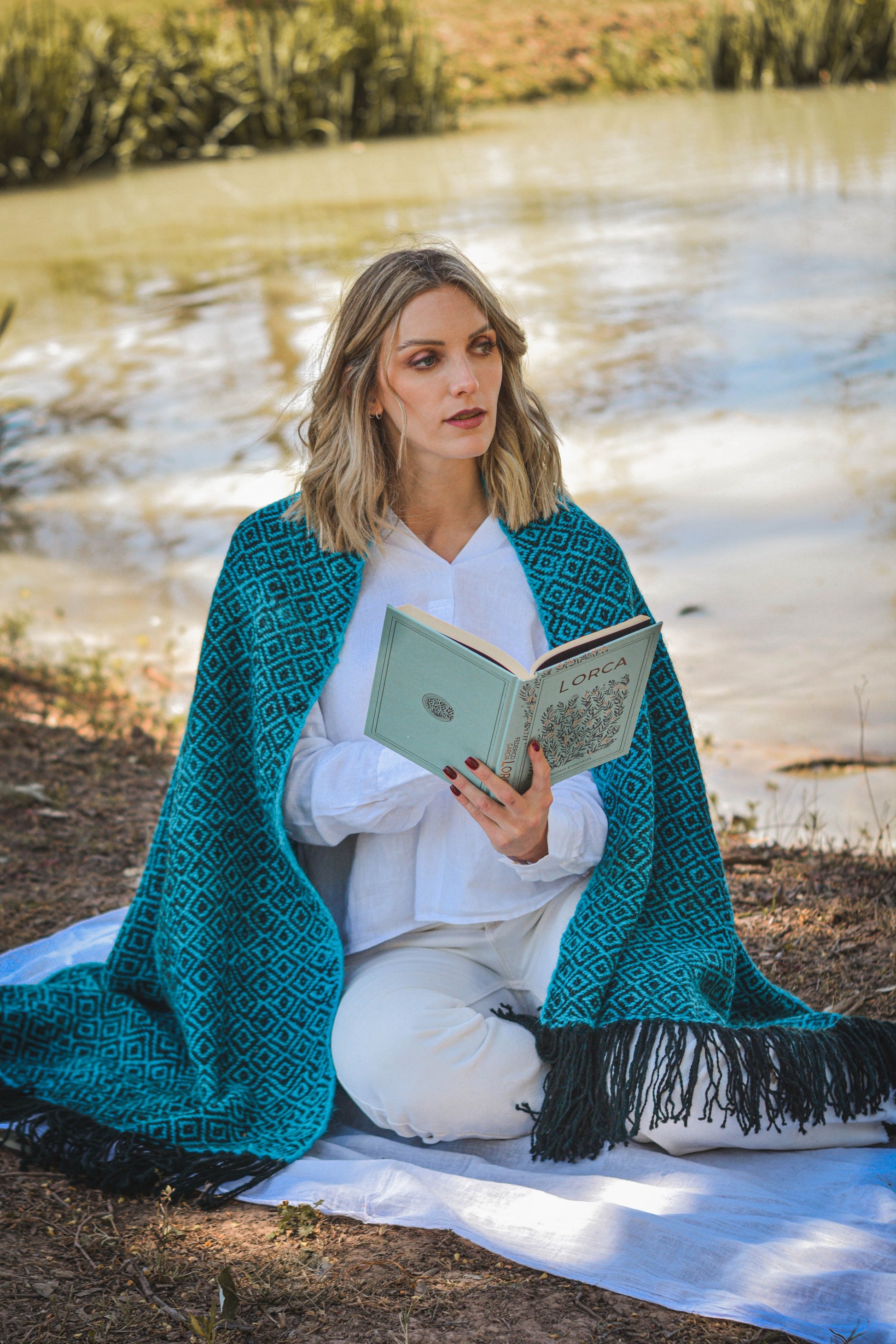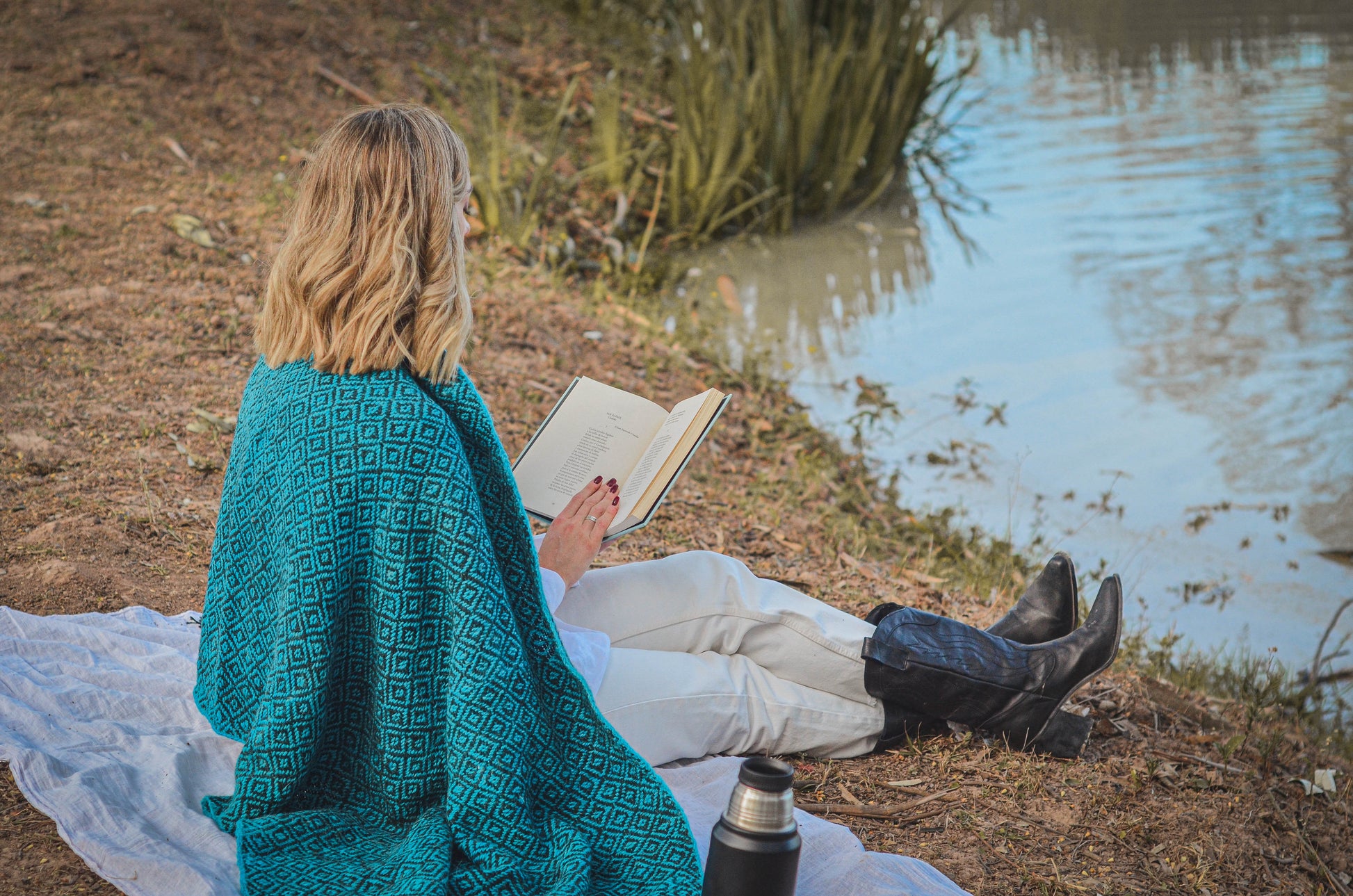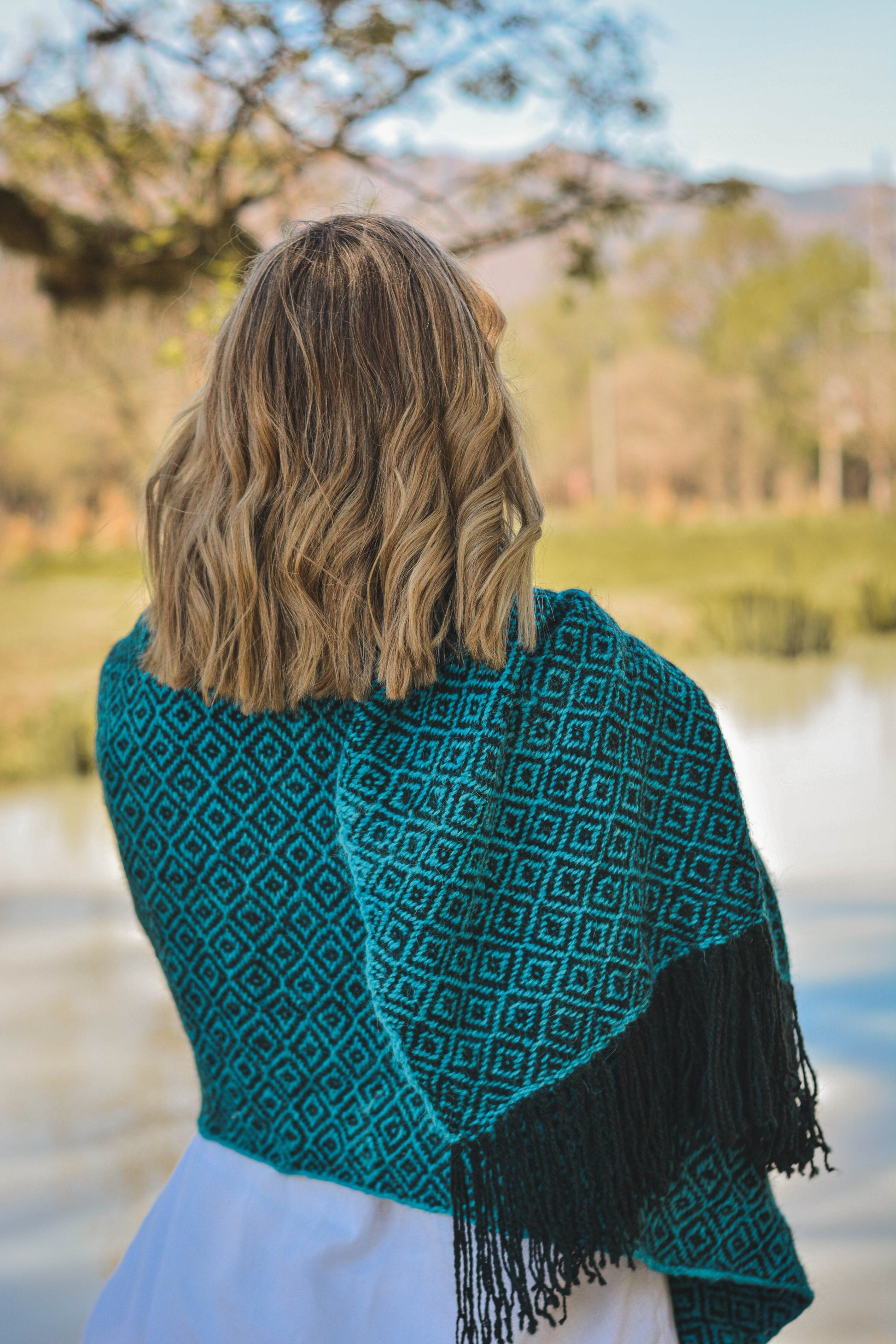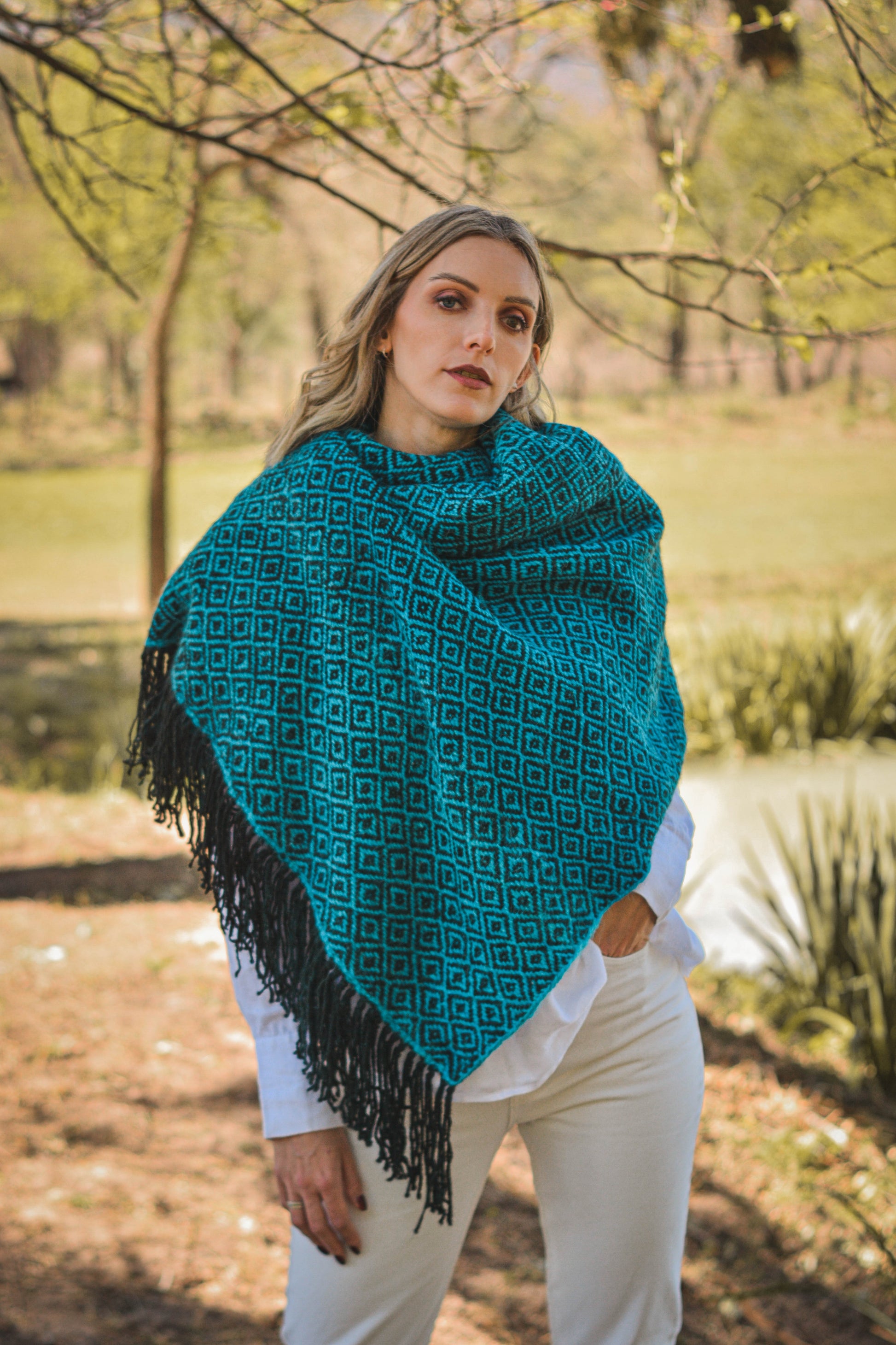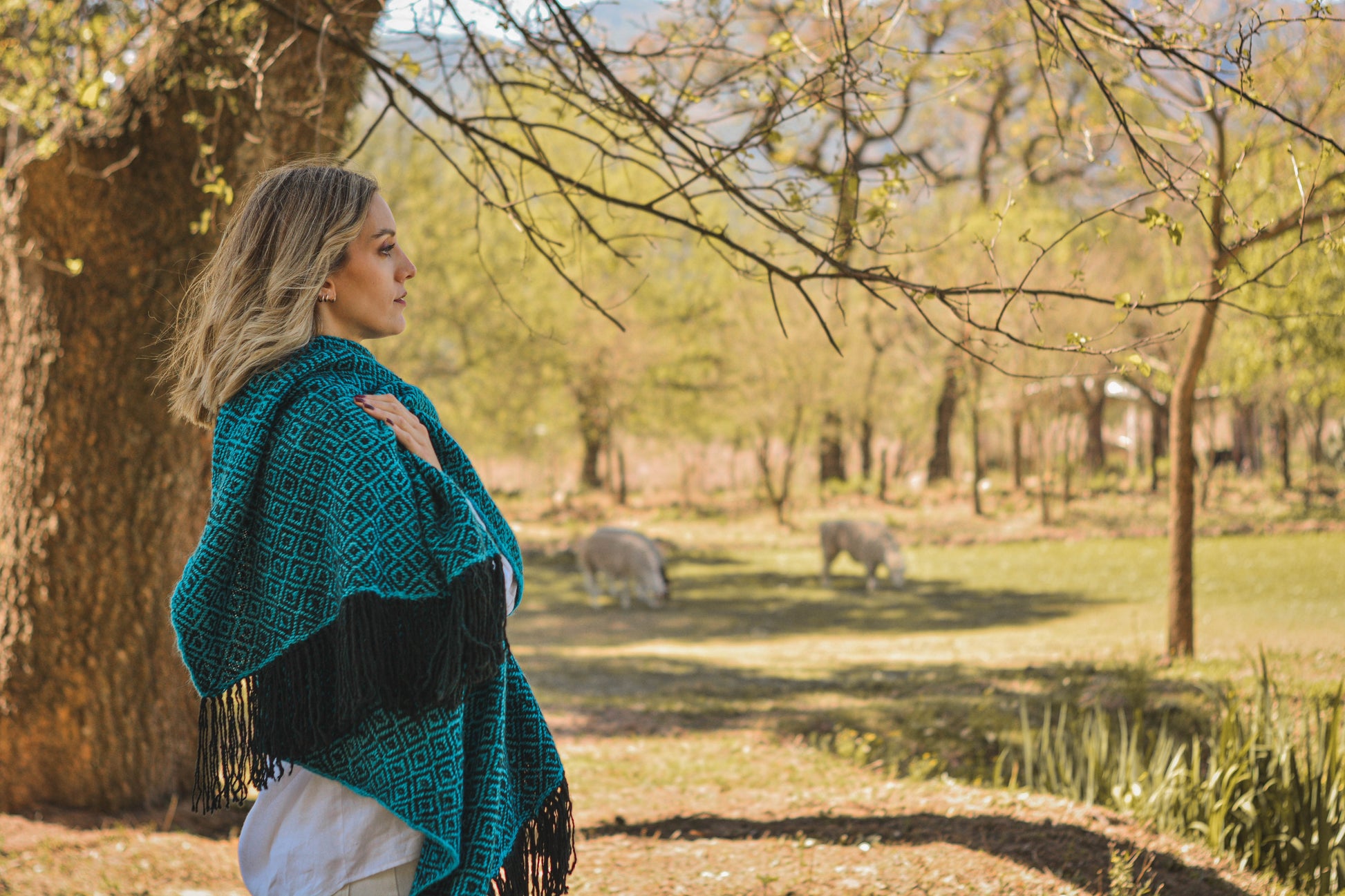 Manta "Zaya" es parte de la colección "Las Marias" hilada de fibra de llama baby y hecha en telar con técnica Ojo de Perdiz.