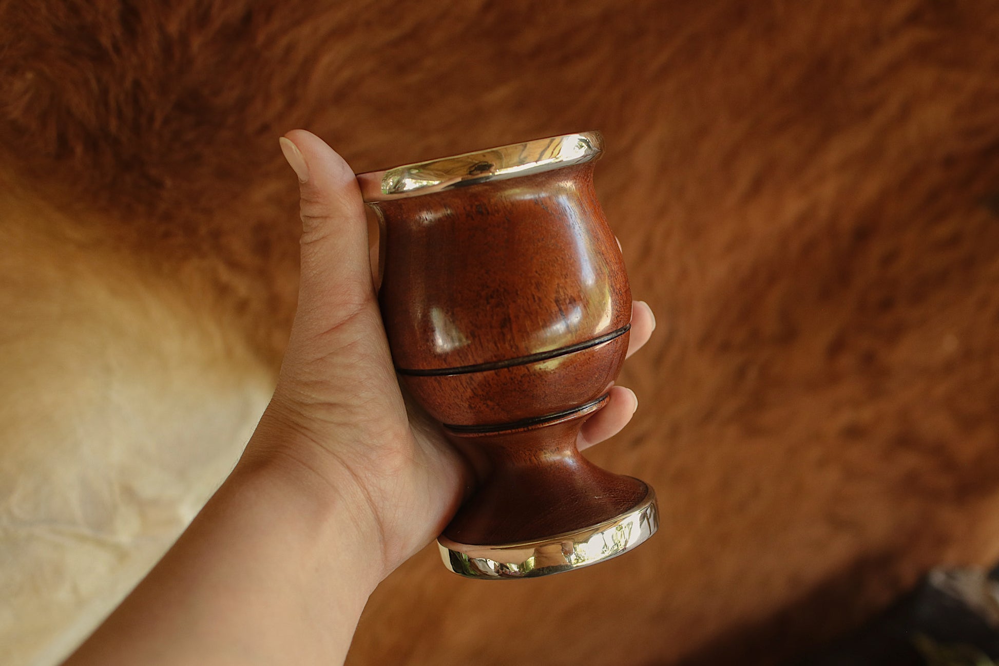 Nuestros mates de Algarrobo tienen un proceso de secado de 6 meses luego de haber sido calados y torneados cuidadosamente a mano desde una pieza de algarrobo.