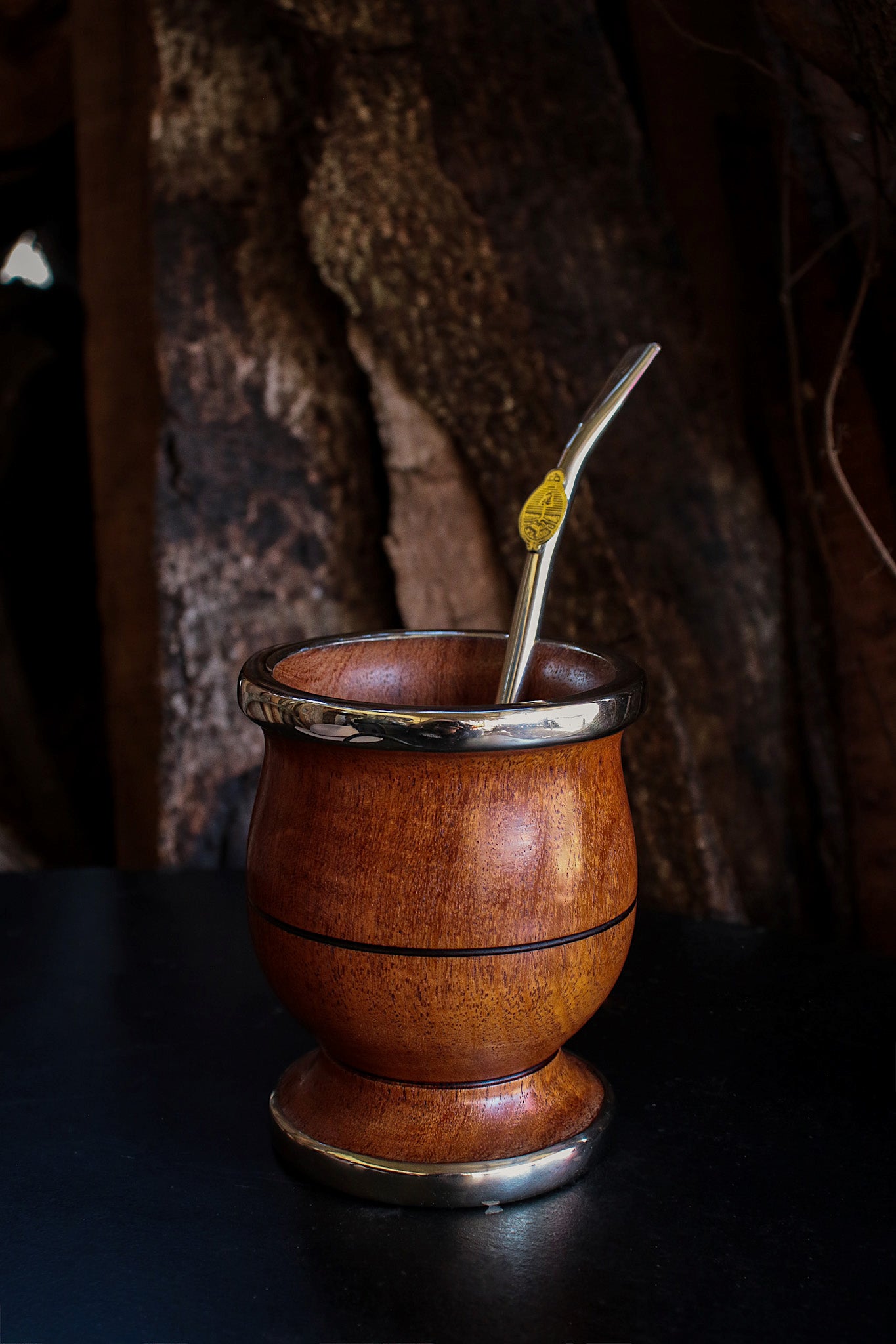 Mate de Algarrobo calado a mano en una sola pieza de madera.