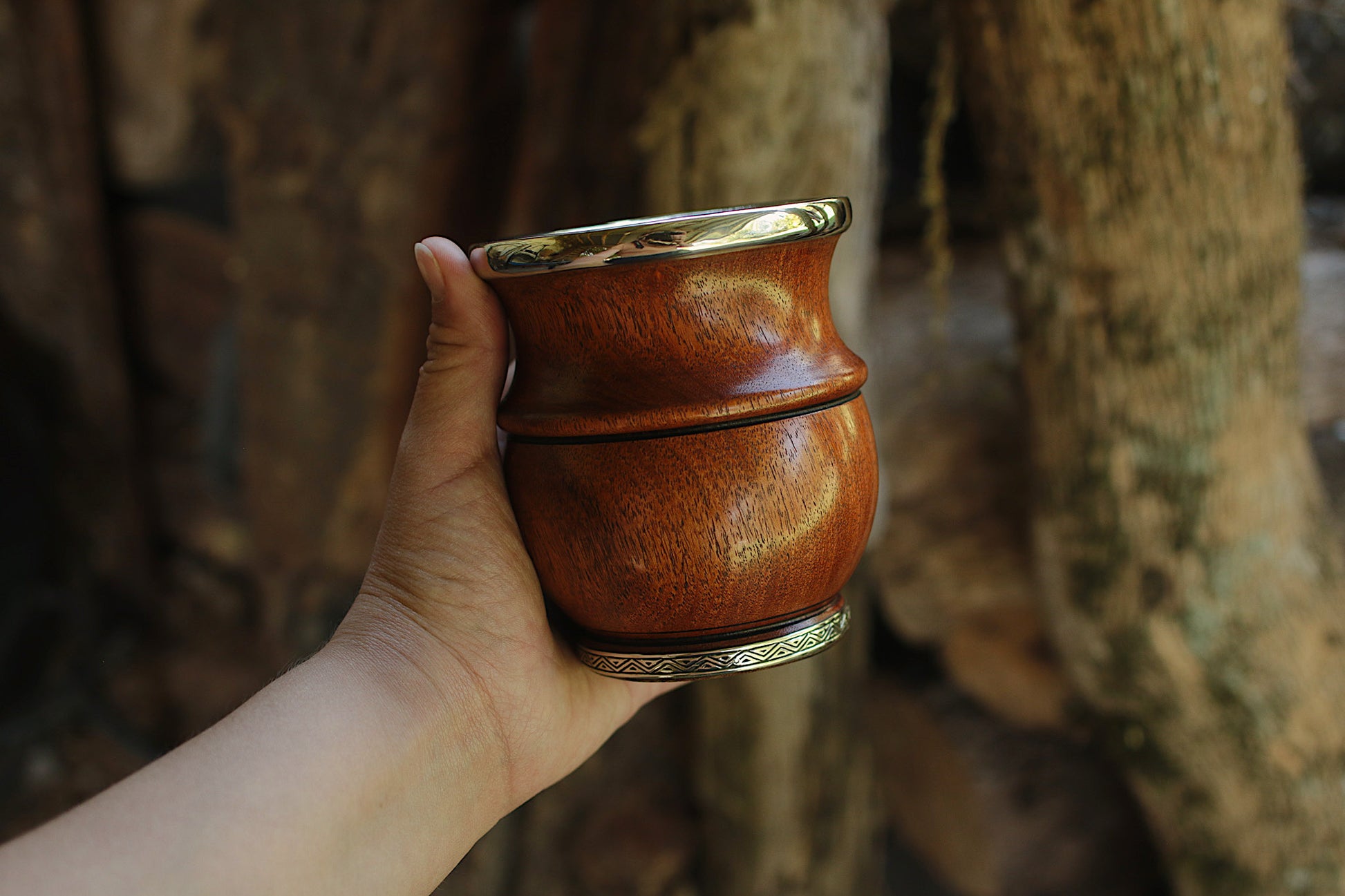 Nuestros mates de tienen un proceso de secado de 6 meses luego de haber sido calados y torneados cuidadosamente a mano desde una pieza de algarrobo.