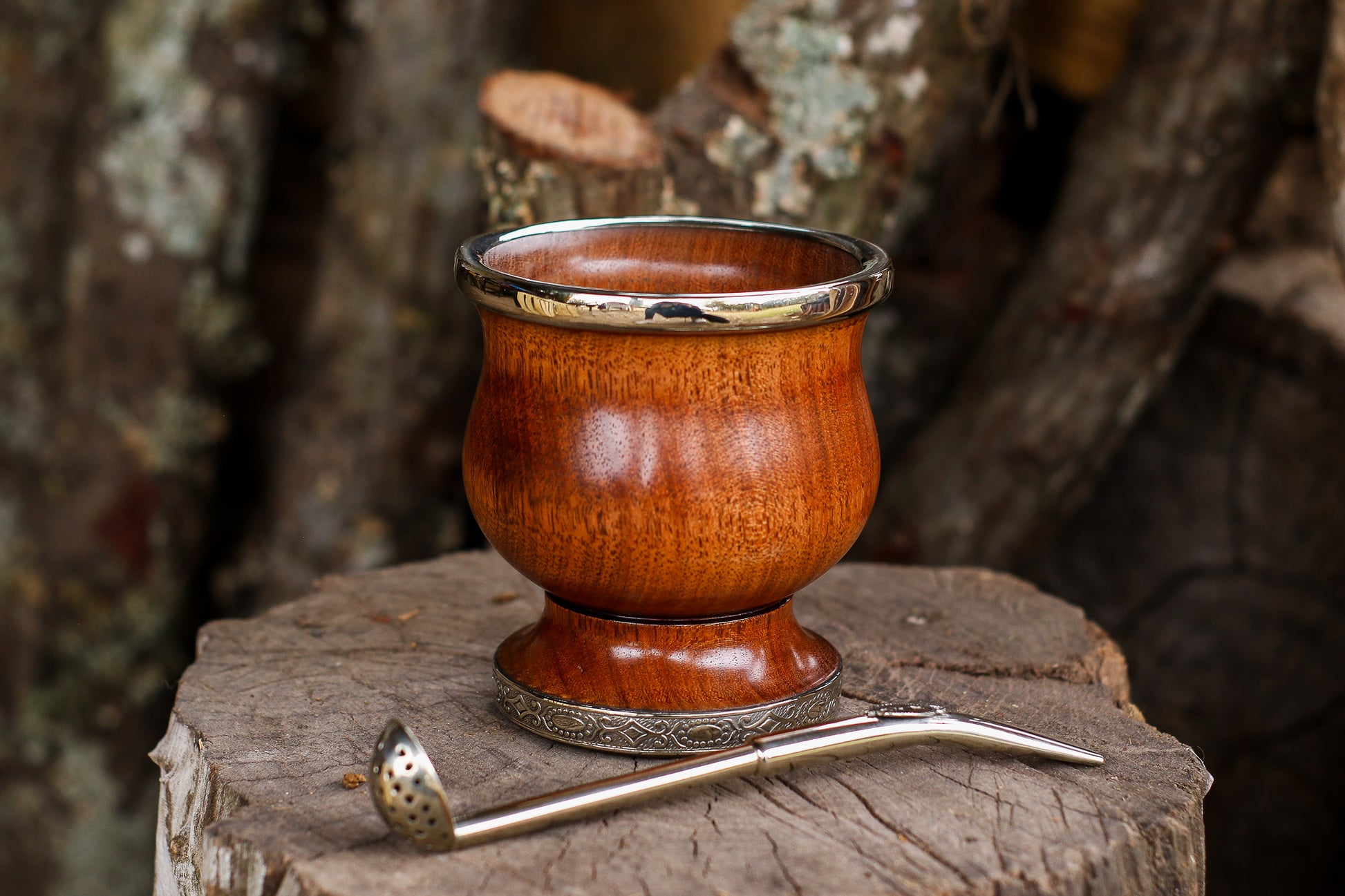 Mate de Algarrobo calado a mano en una sola pieza de madera.