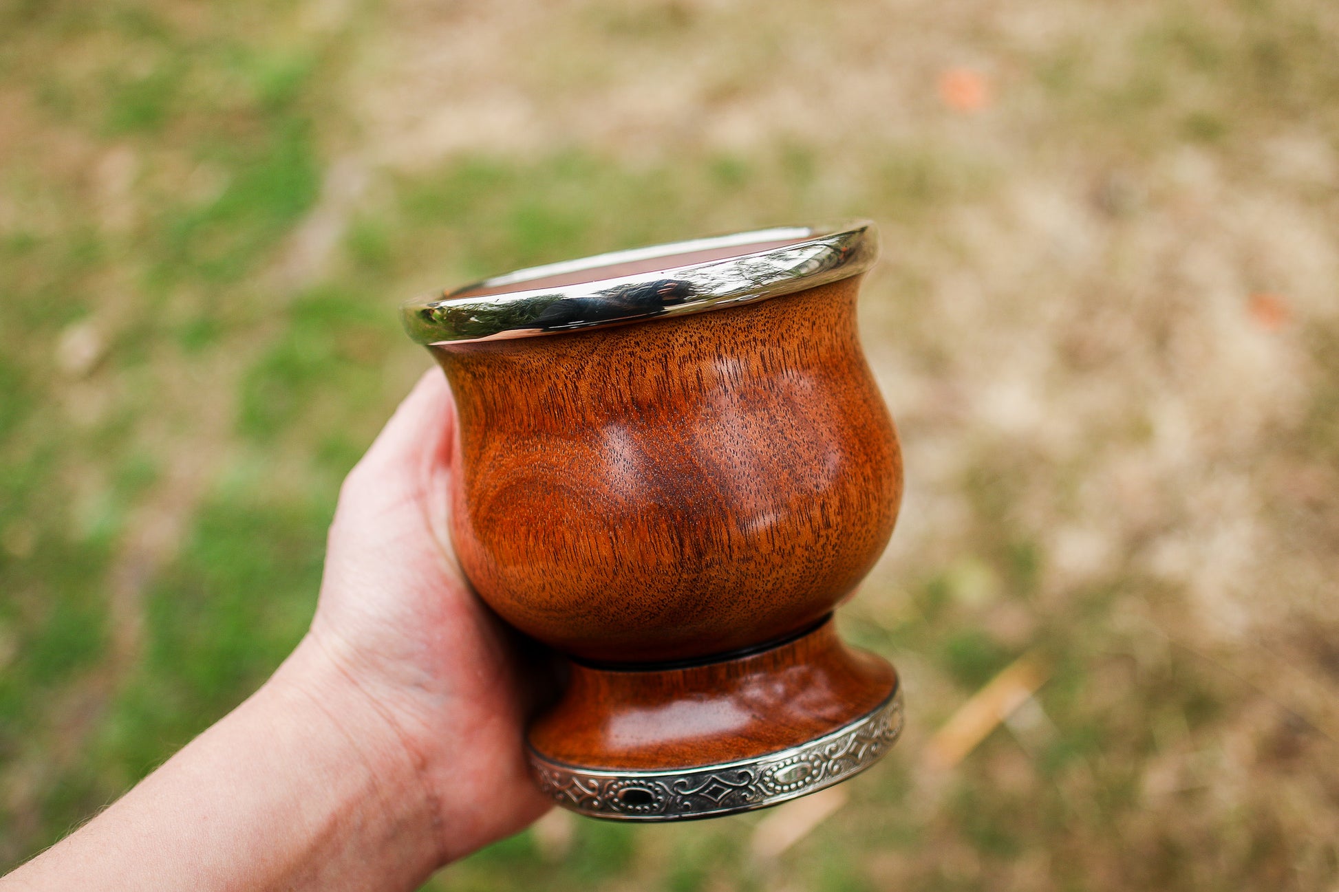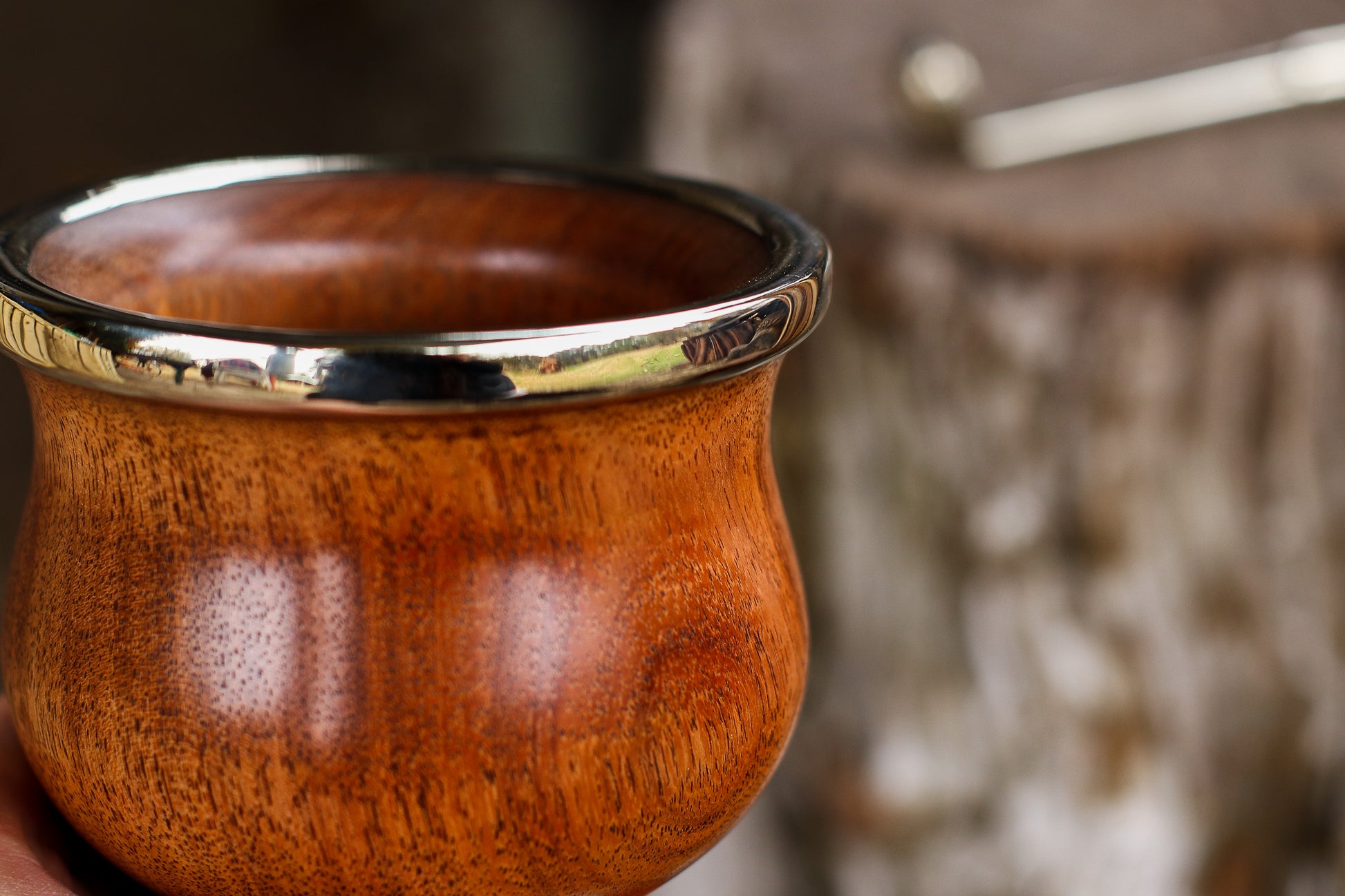 Nuestros mates de tienen un proceso de secado de 6 meses luego de haber sido calados y torneados a mano desde una pieza de algarrobo.