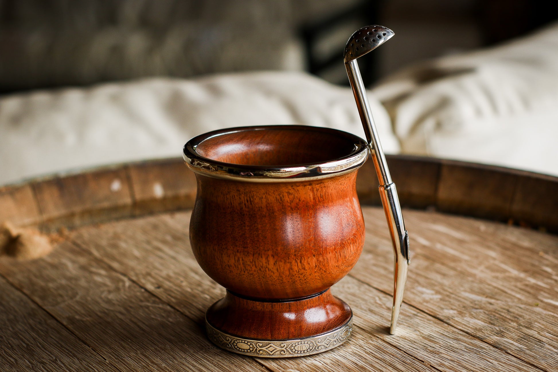La bombilla de alpaca de diseño de autor está incluida y lleva el Escudo Nacional soldado con plata