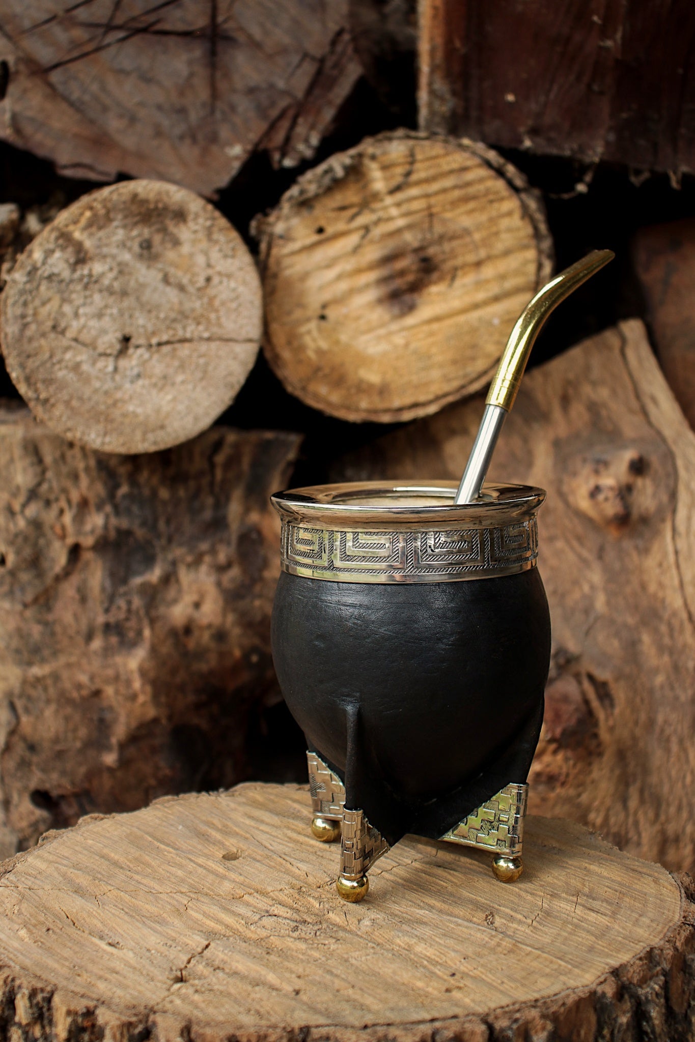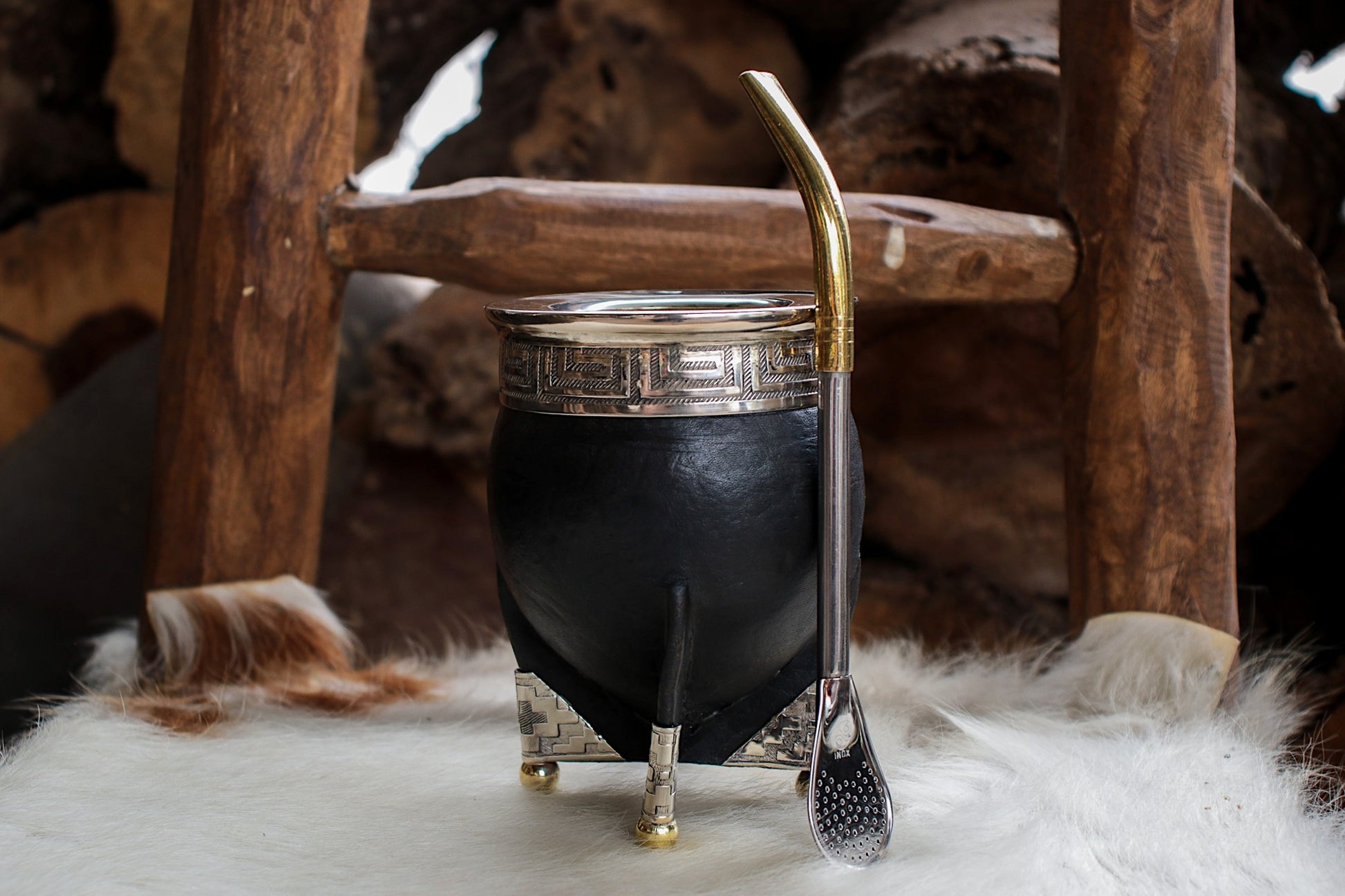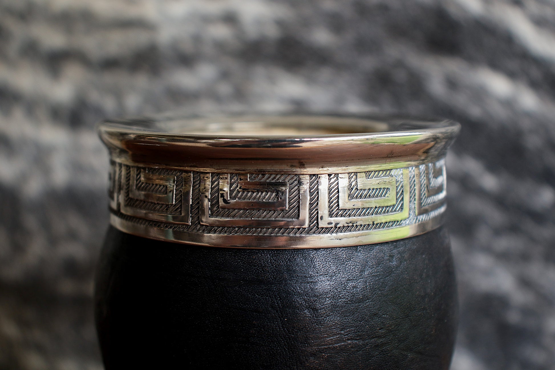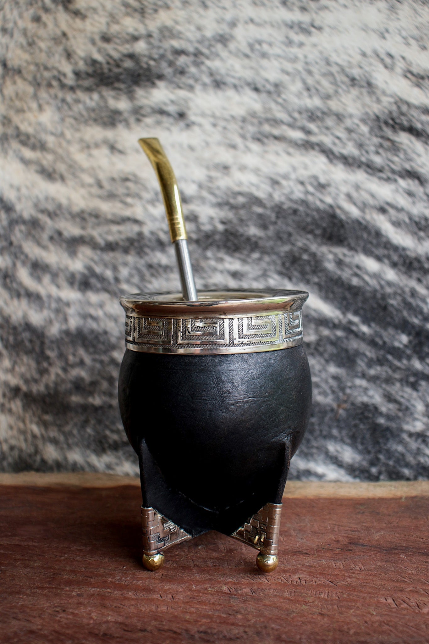 Mate de Cuero, Bronce y Alpaca con Bombillón