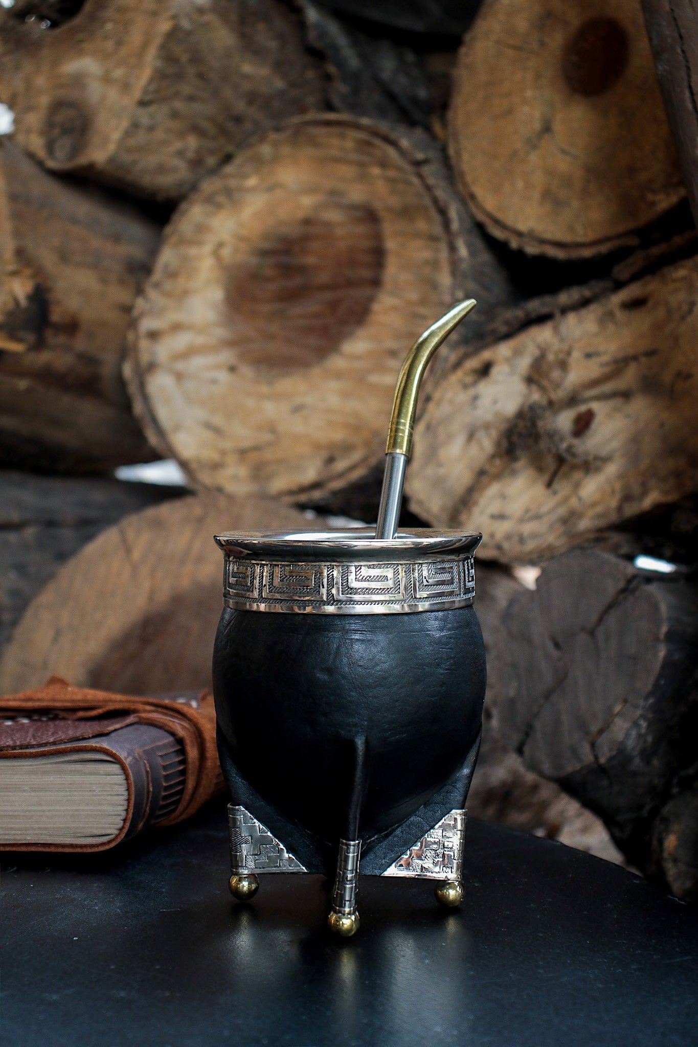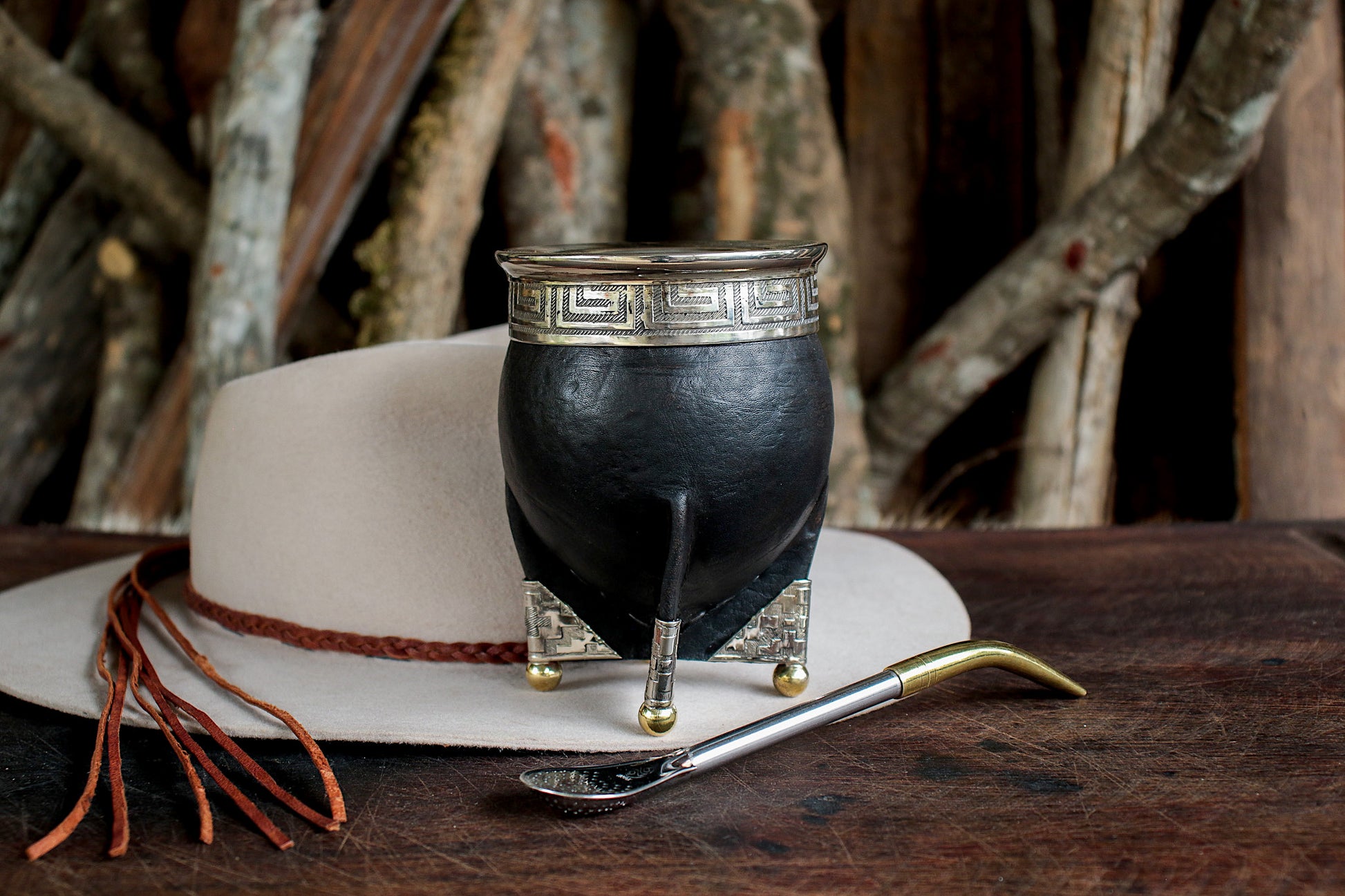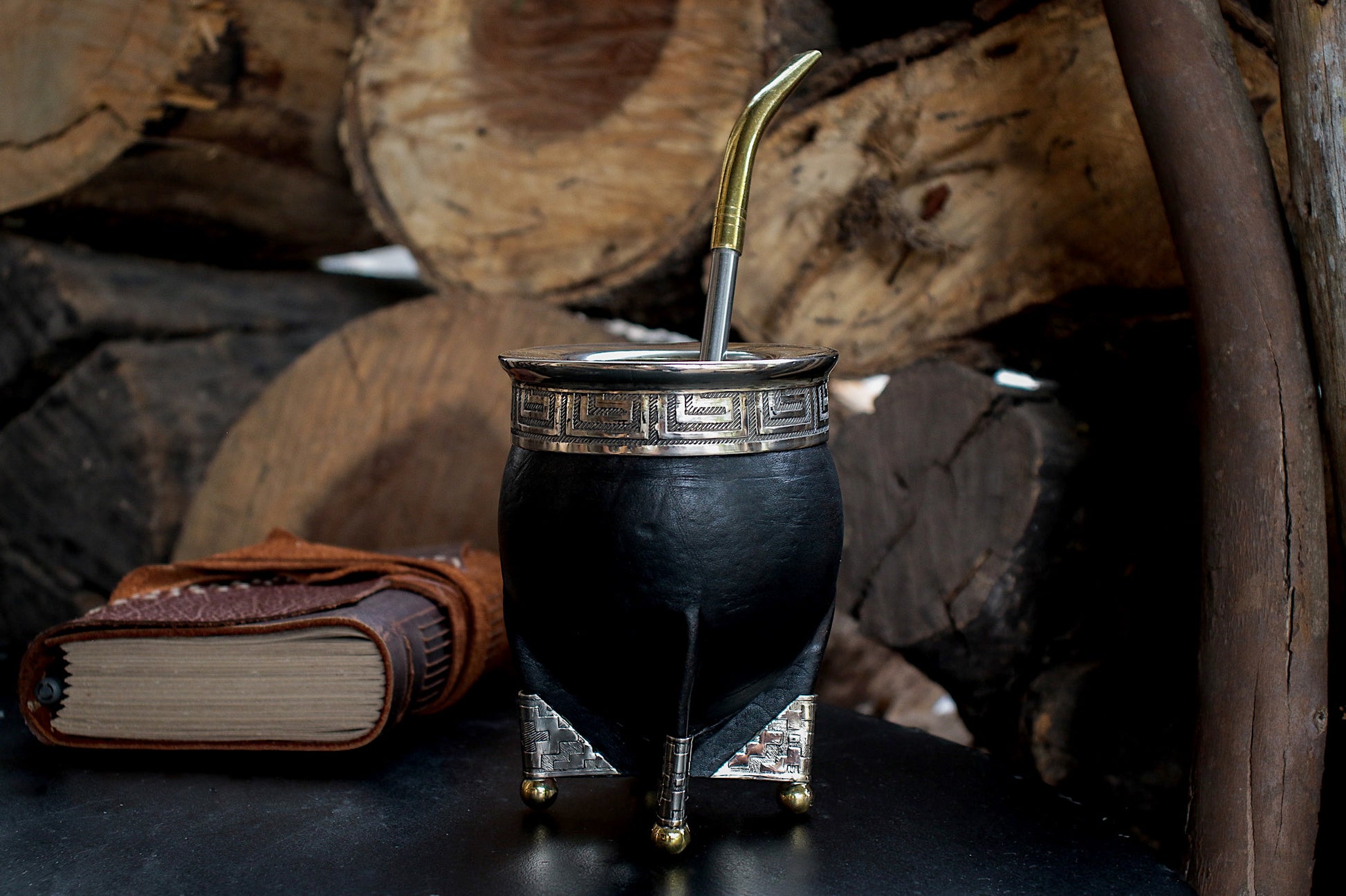 Mate de Cuero, Bronce y Alpaca con Bombillón
