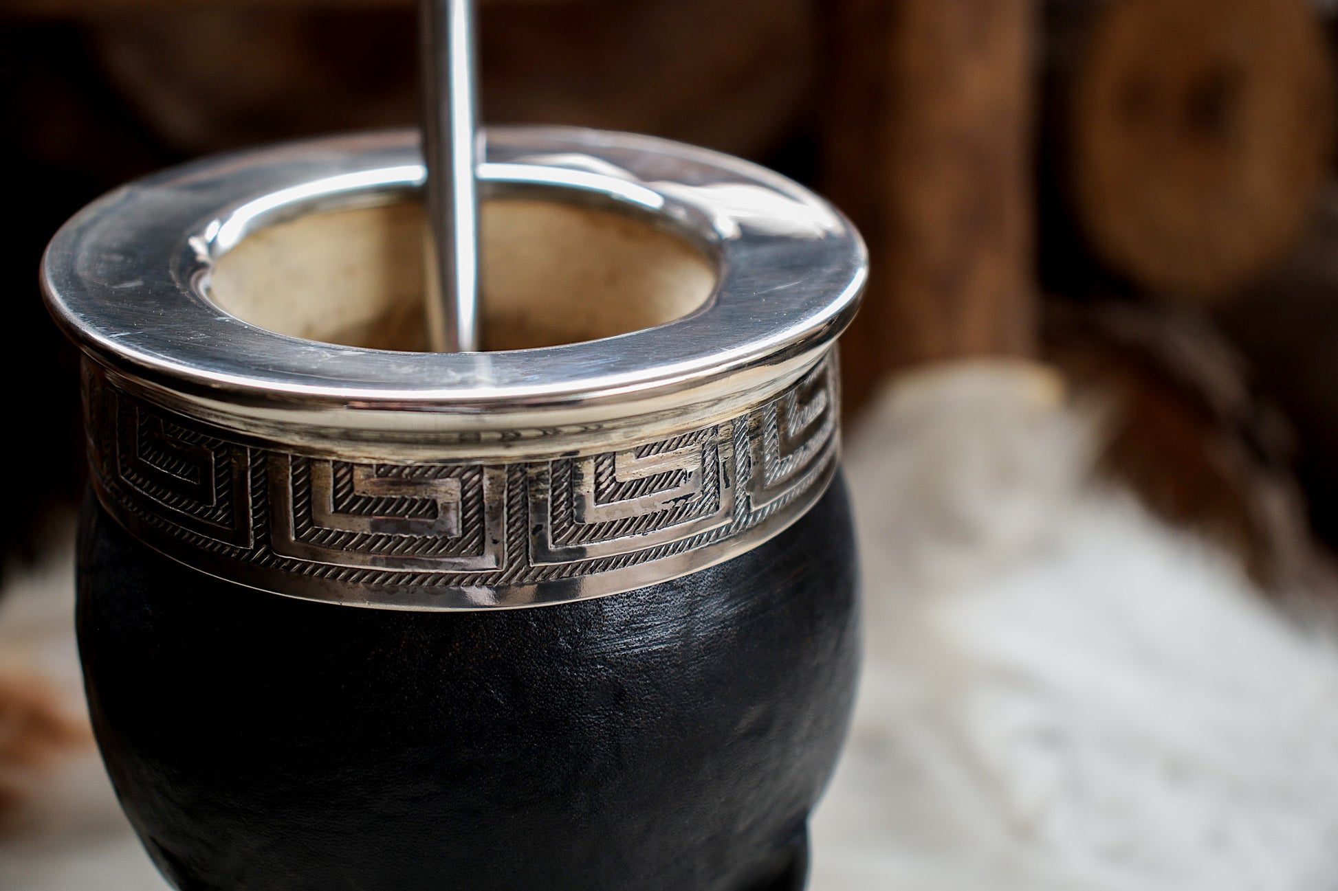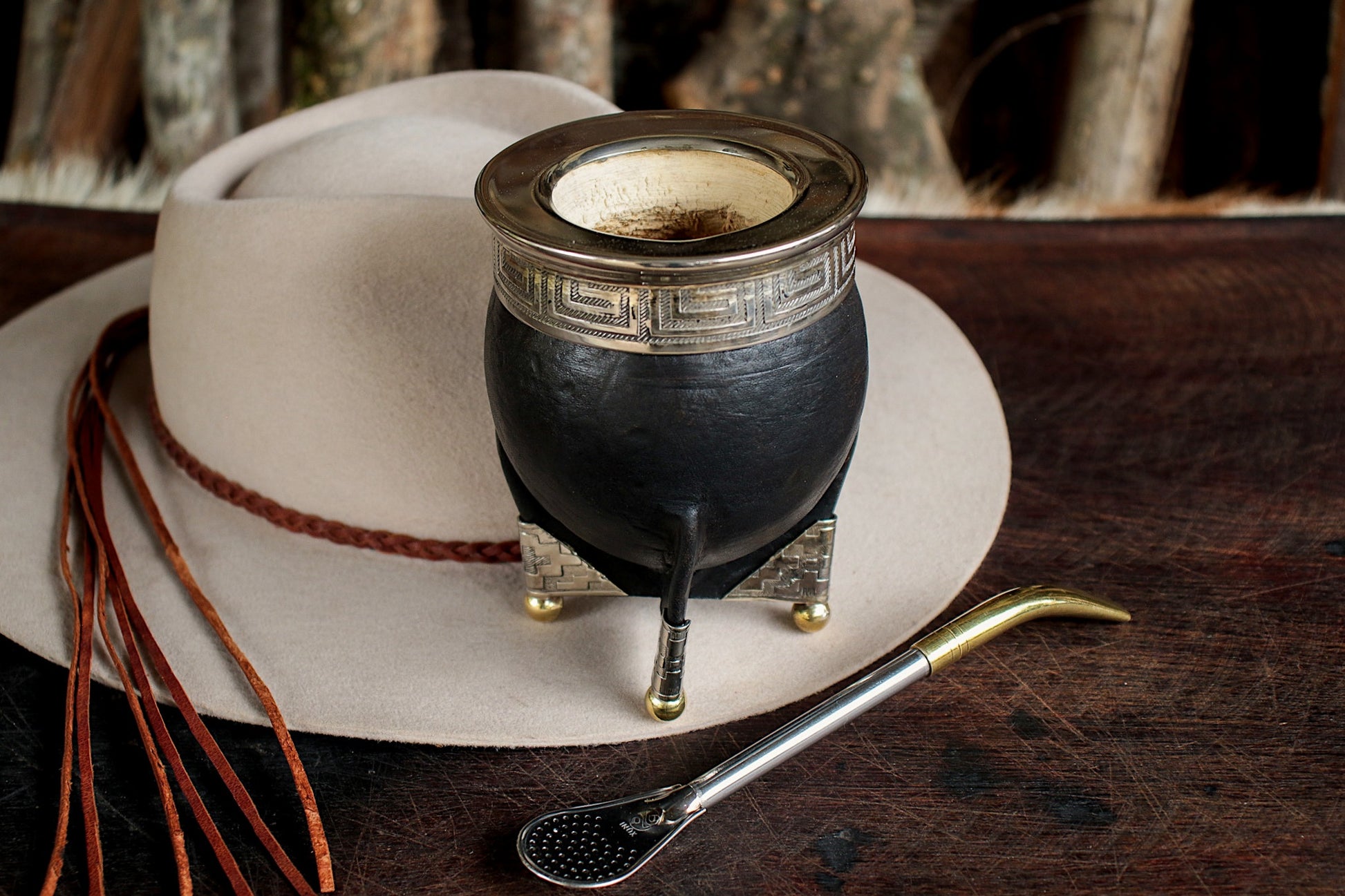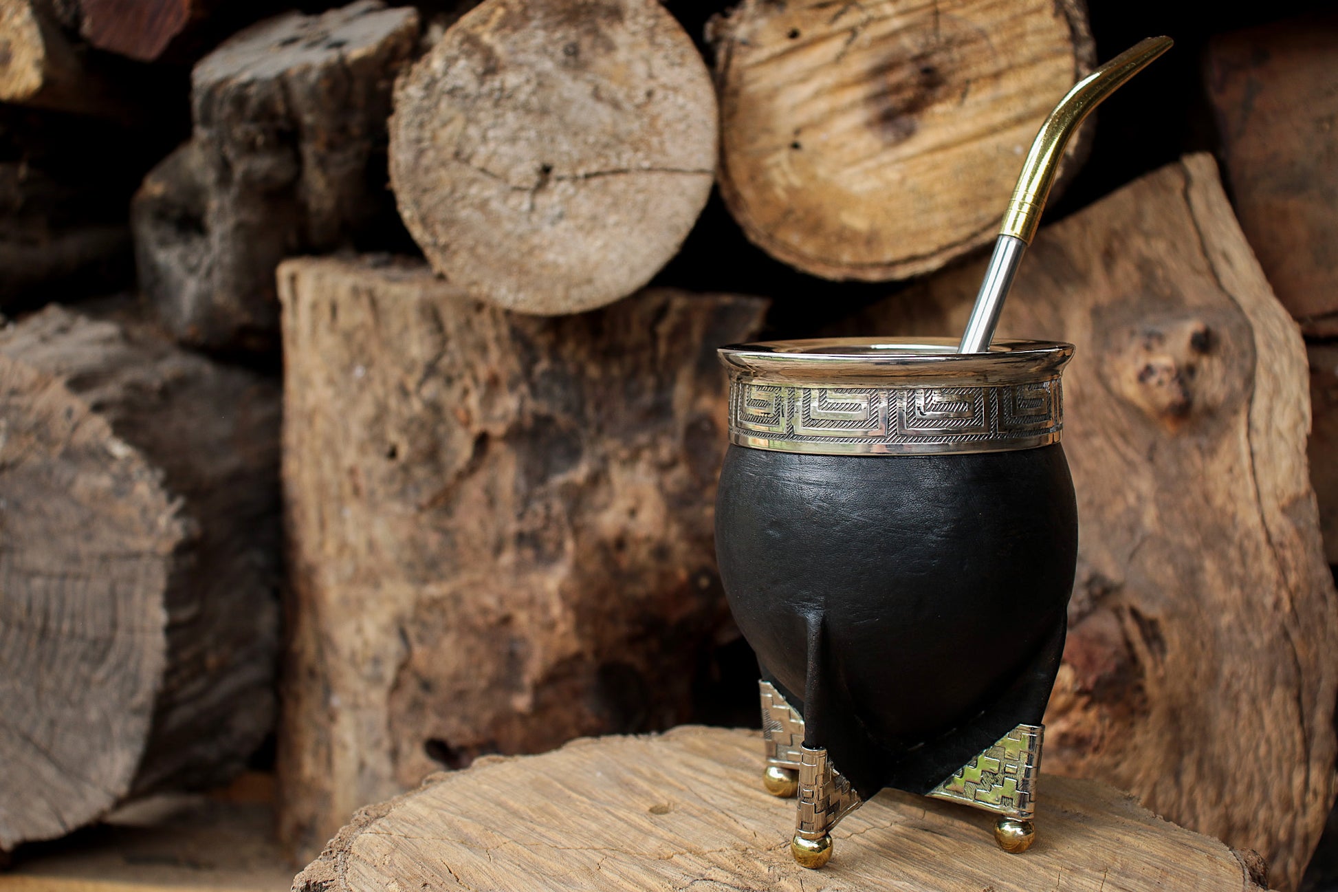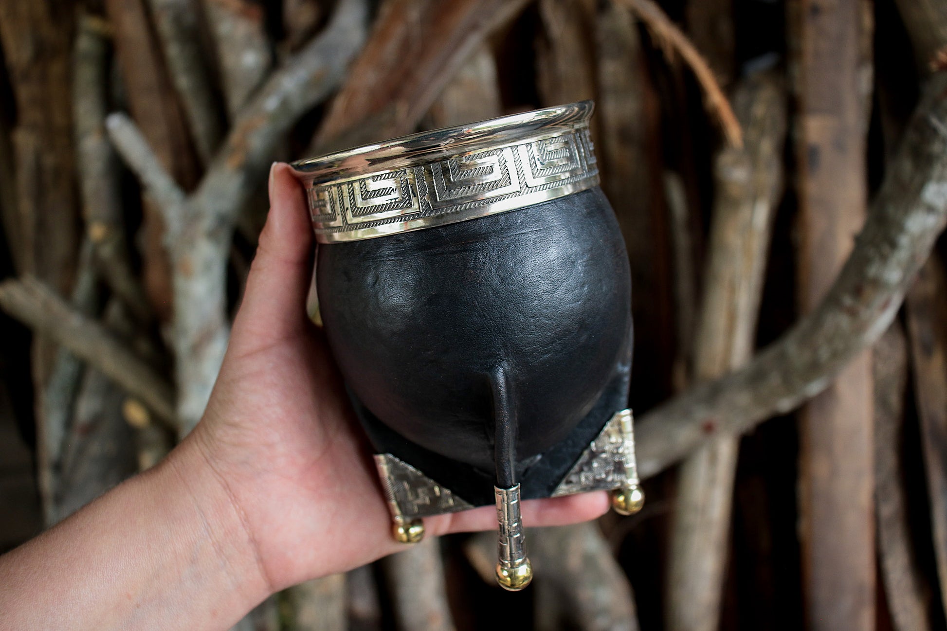 Mate de Cuero, Bronce y Alpaca con Bombillón
