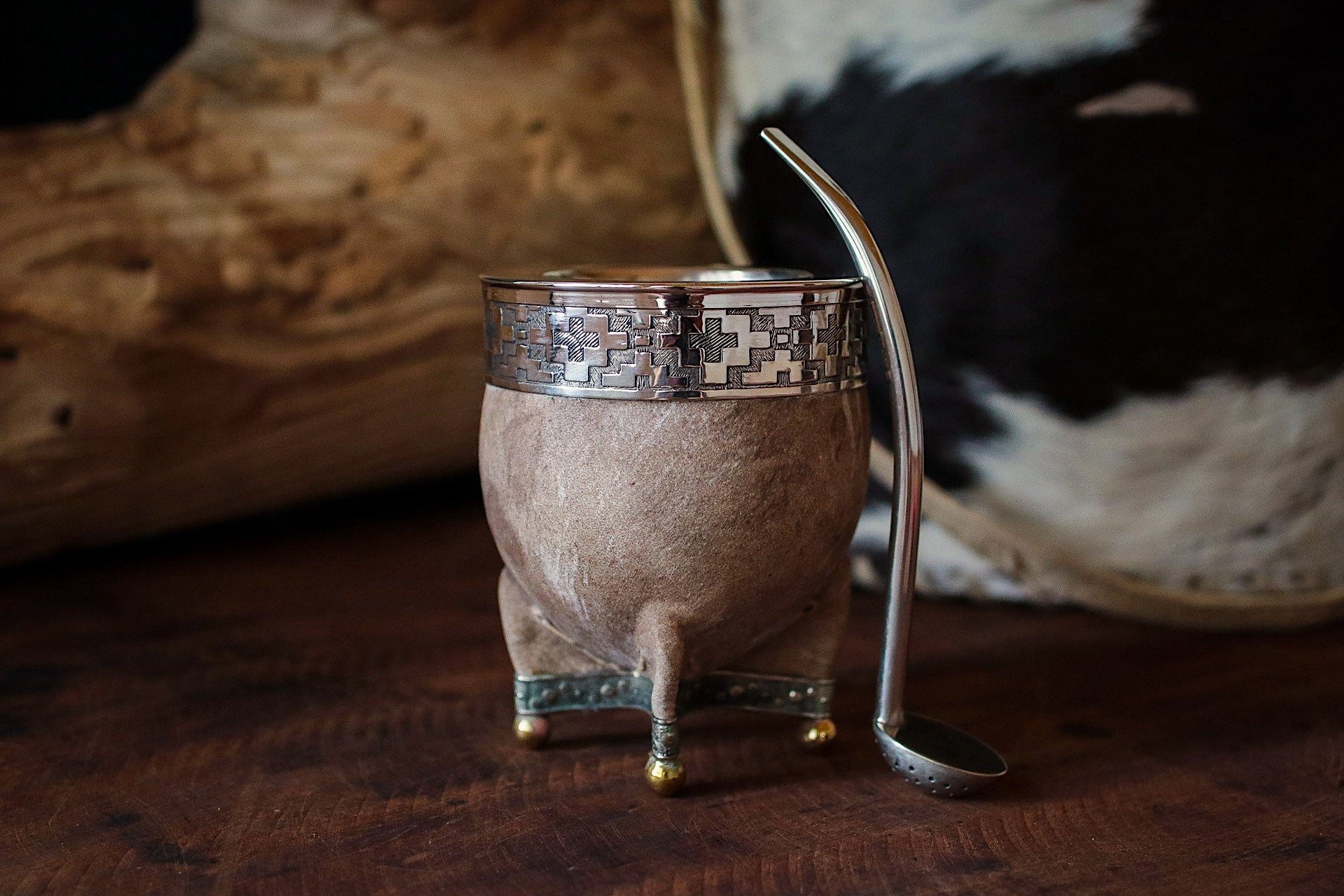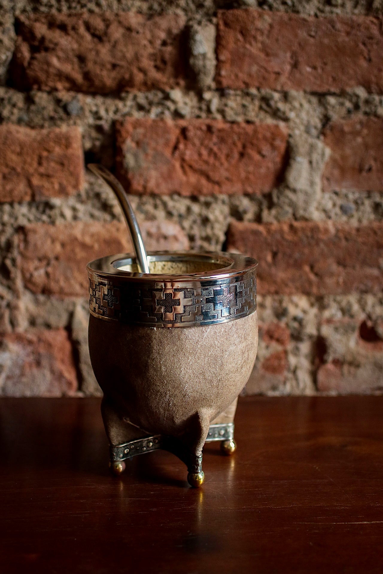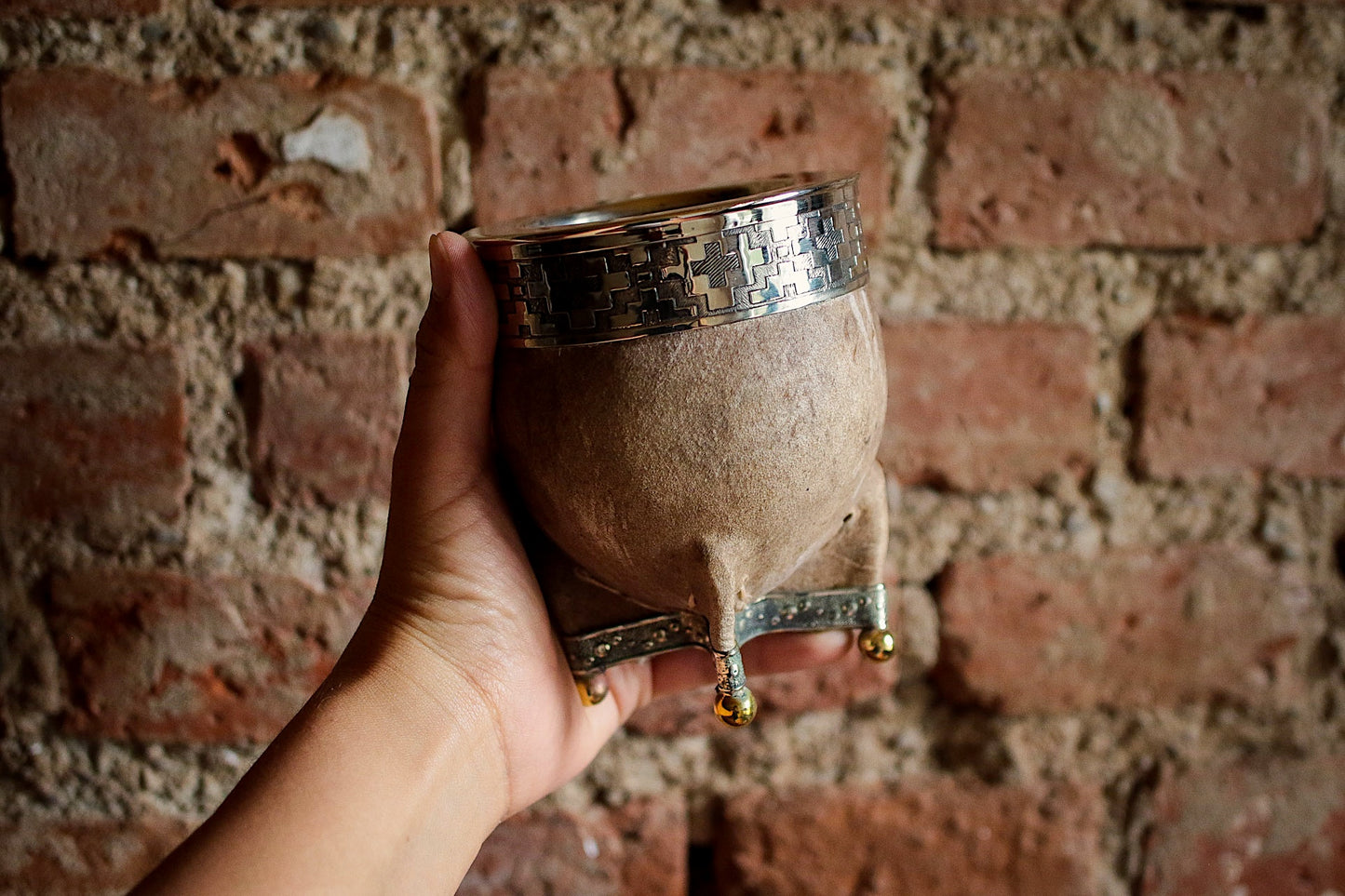 Mate de Cuero con Base de Alpaca y Bronce con Bombilla