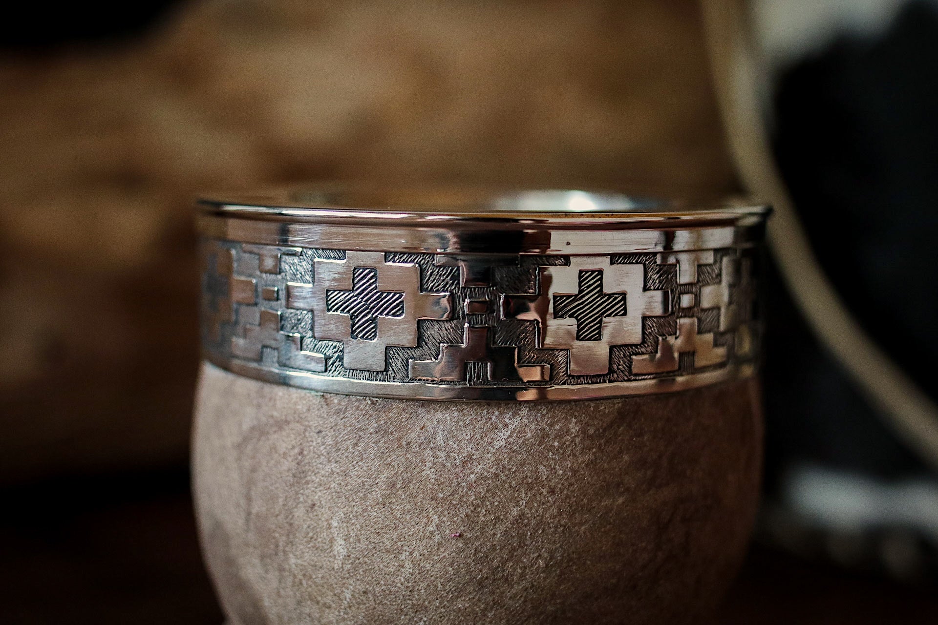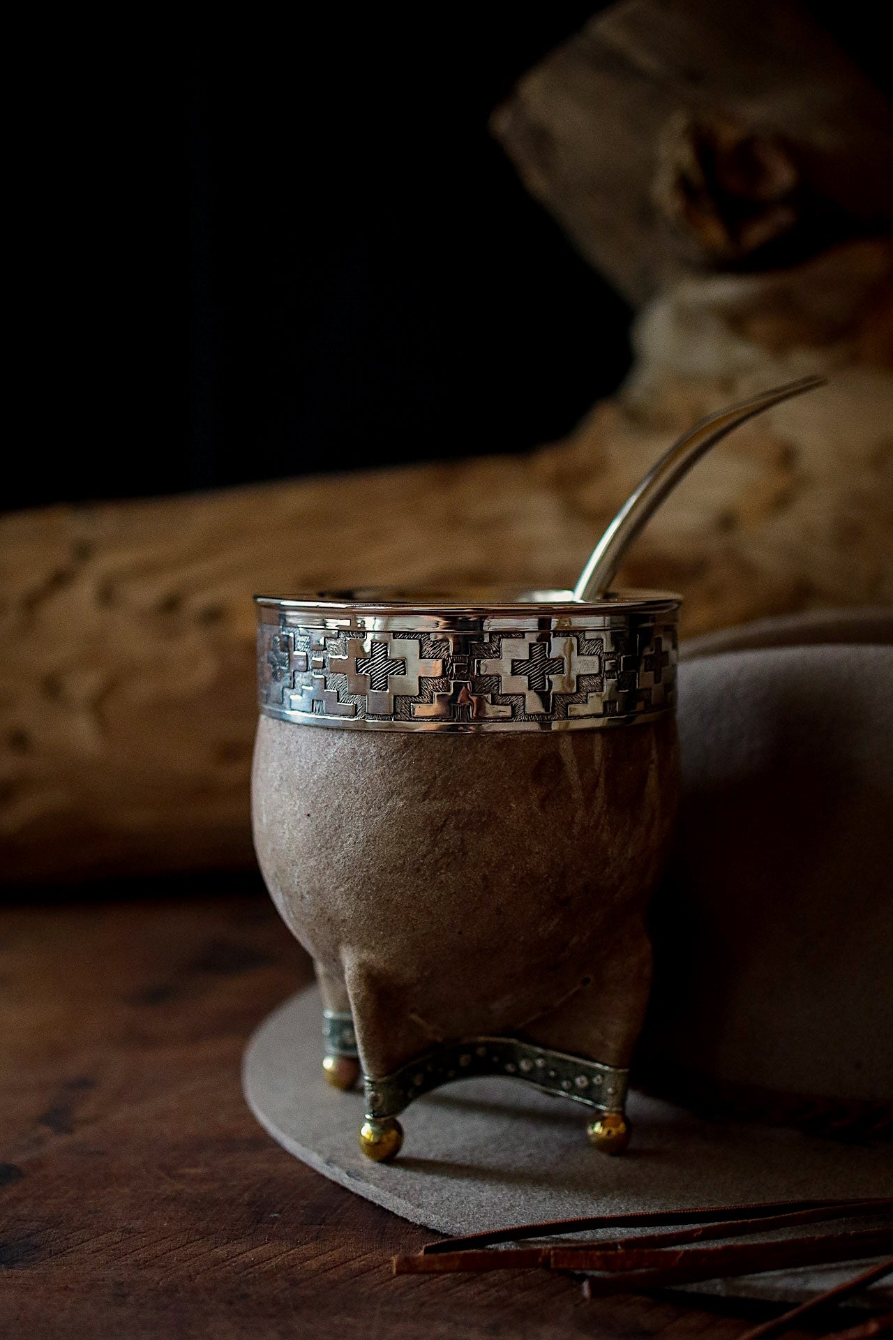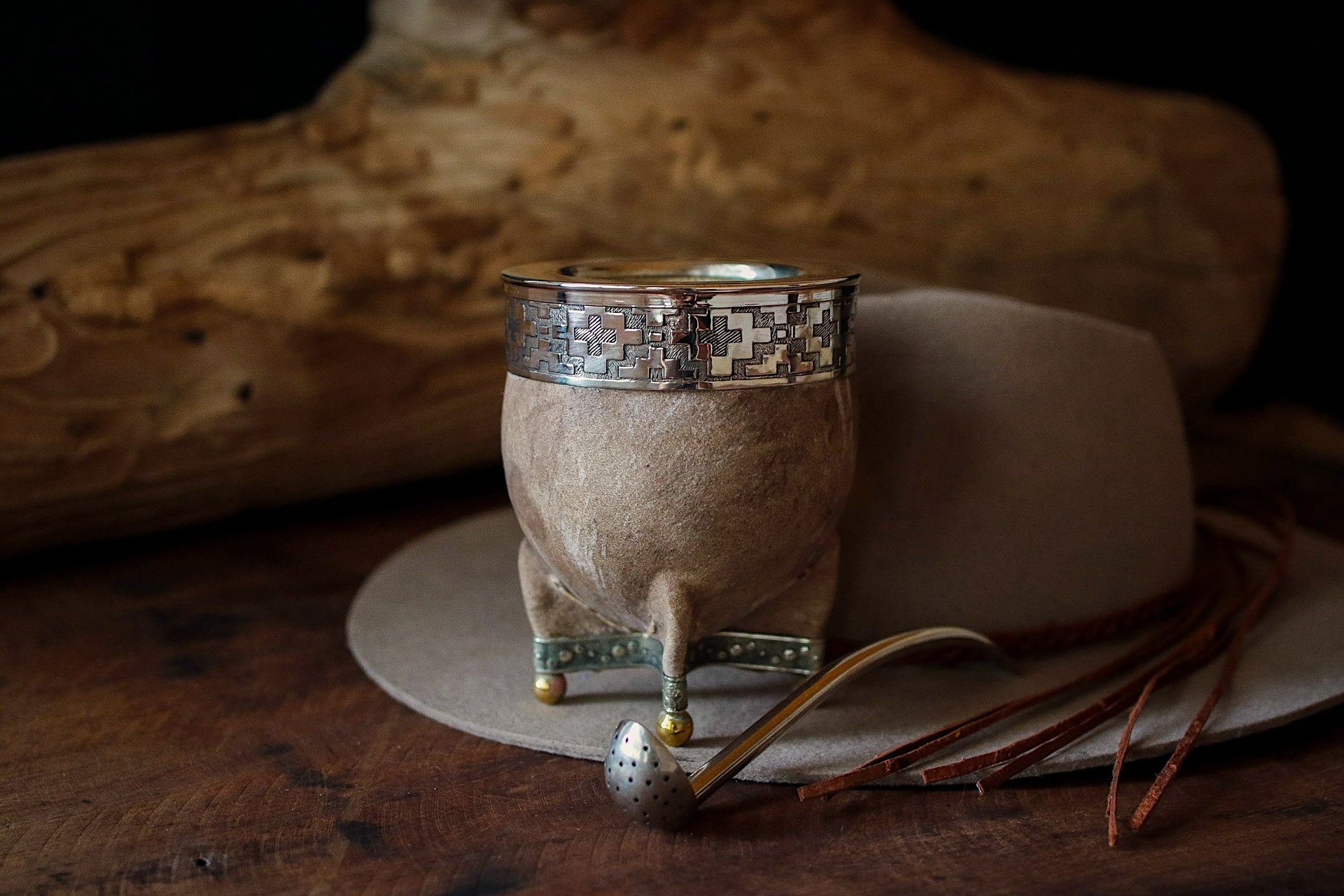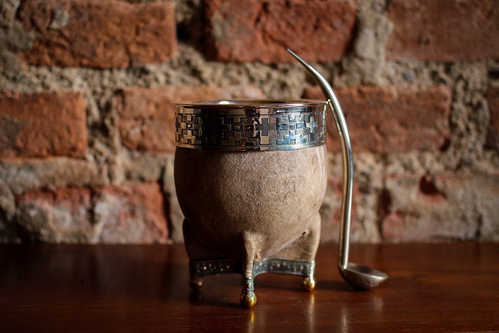 Mate de Cuero con Base de Alpaca y Bronce con Bombilla
