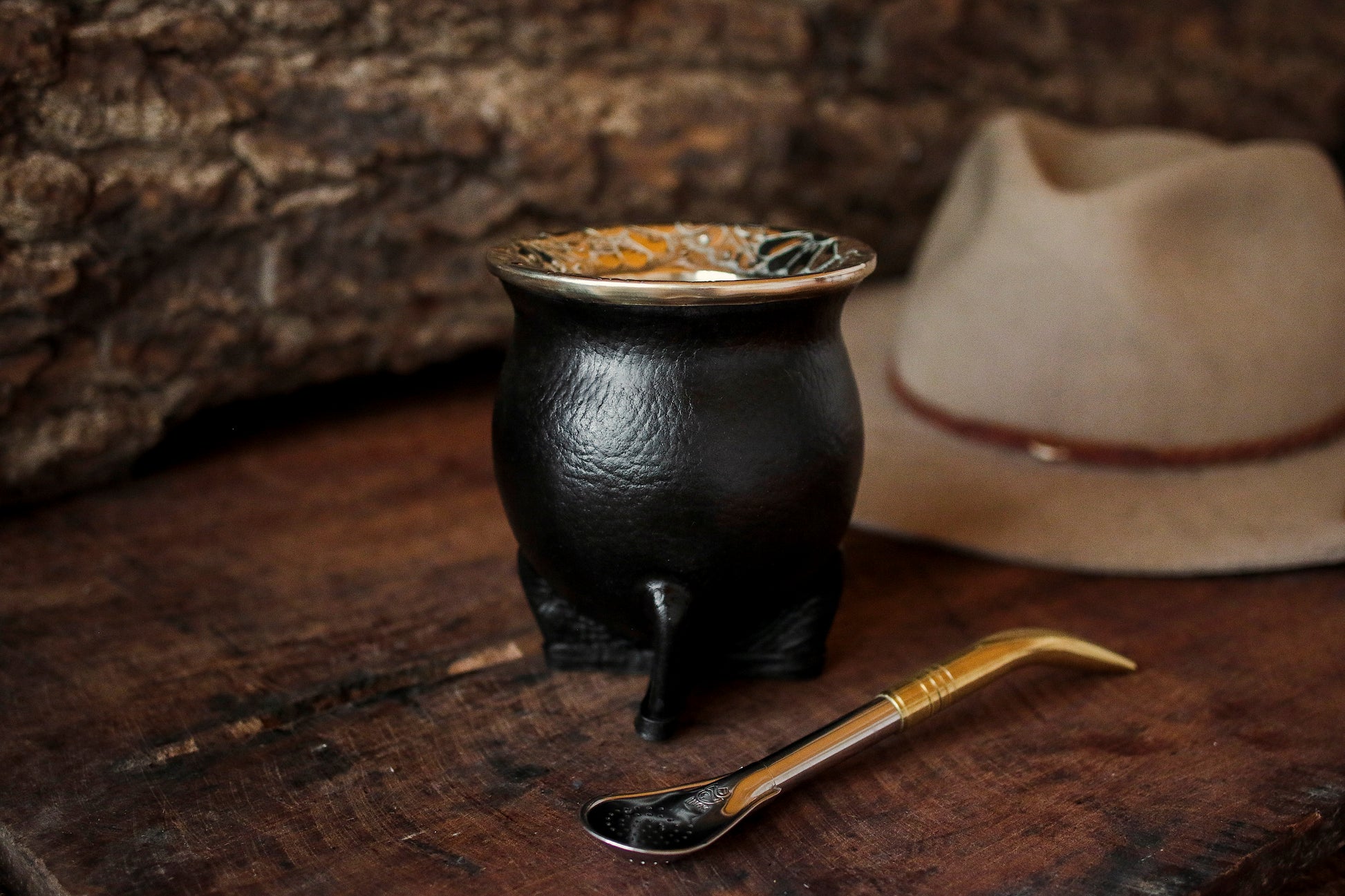 Mate de Cuero y Alpaca con Bombilla