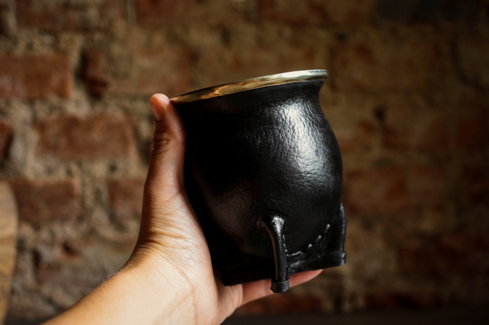 Mate de calabaza forrado artesanalmente en cuero natural.