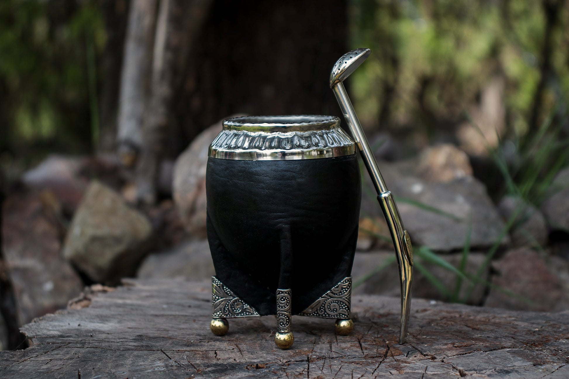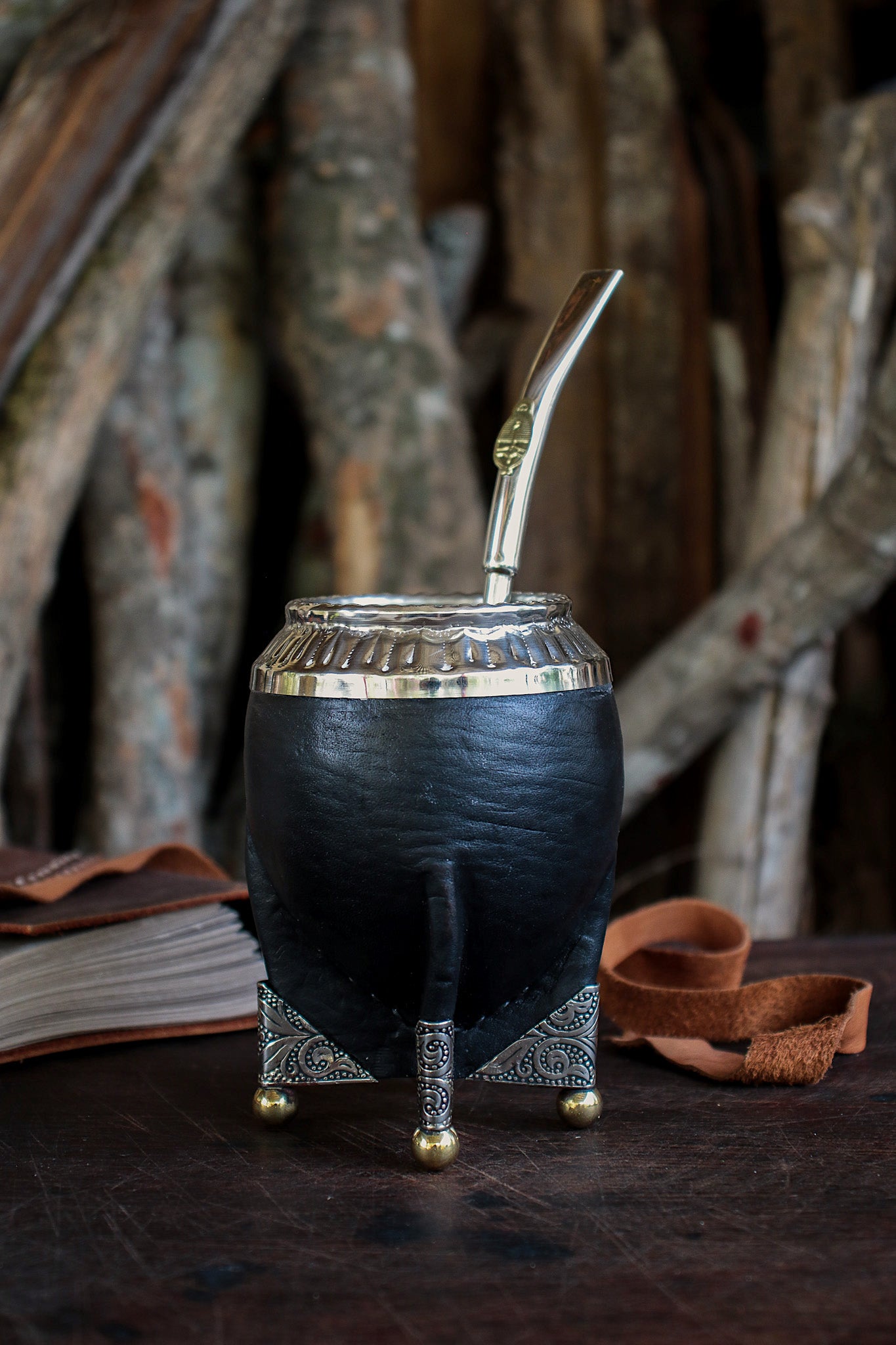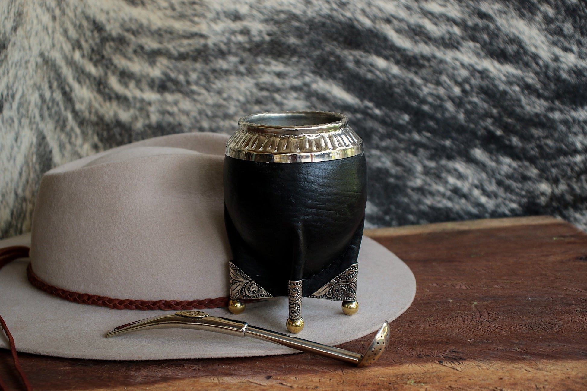 Mate de Cuero y Alpaca con Bombilla Escudo
