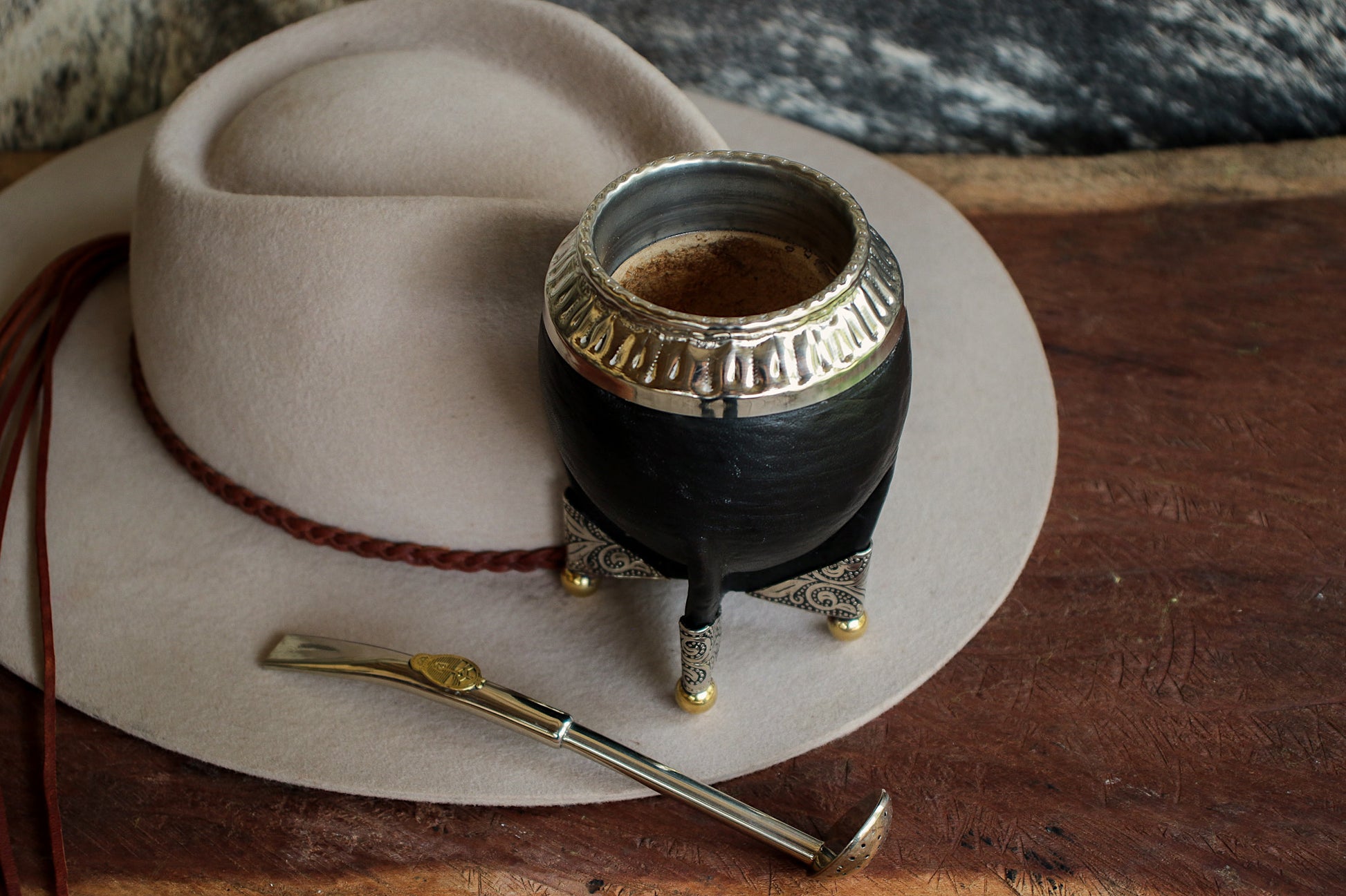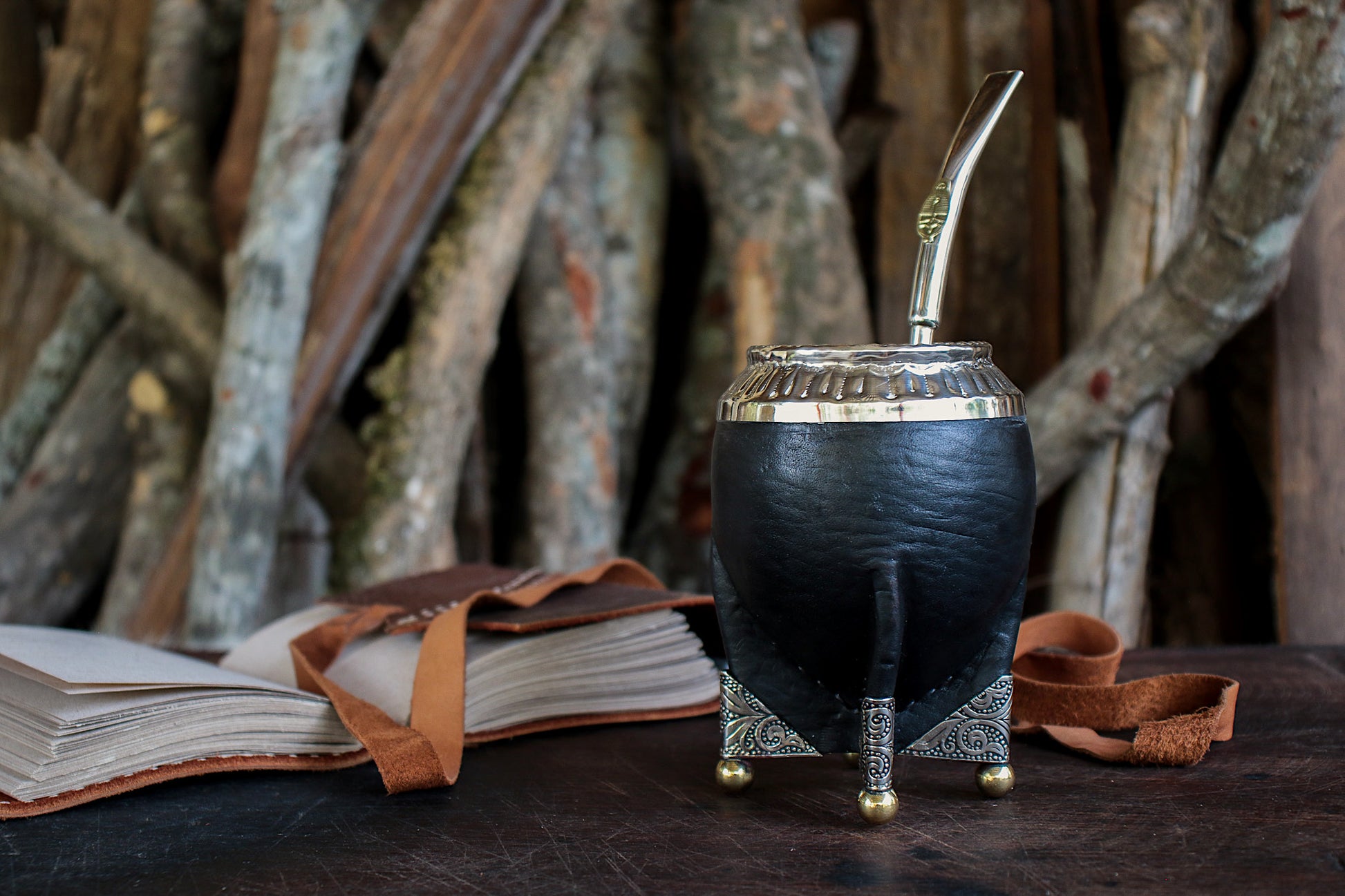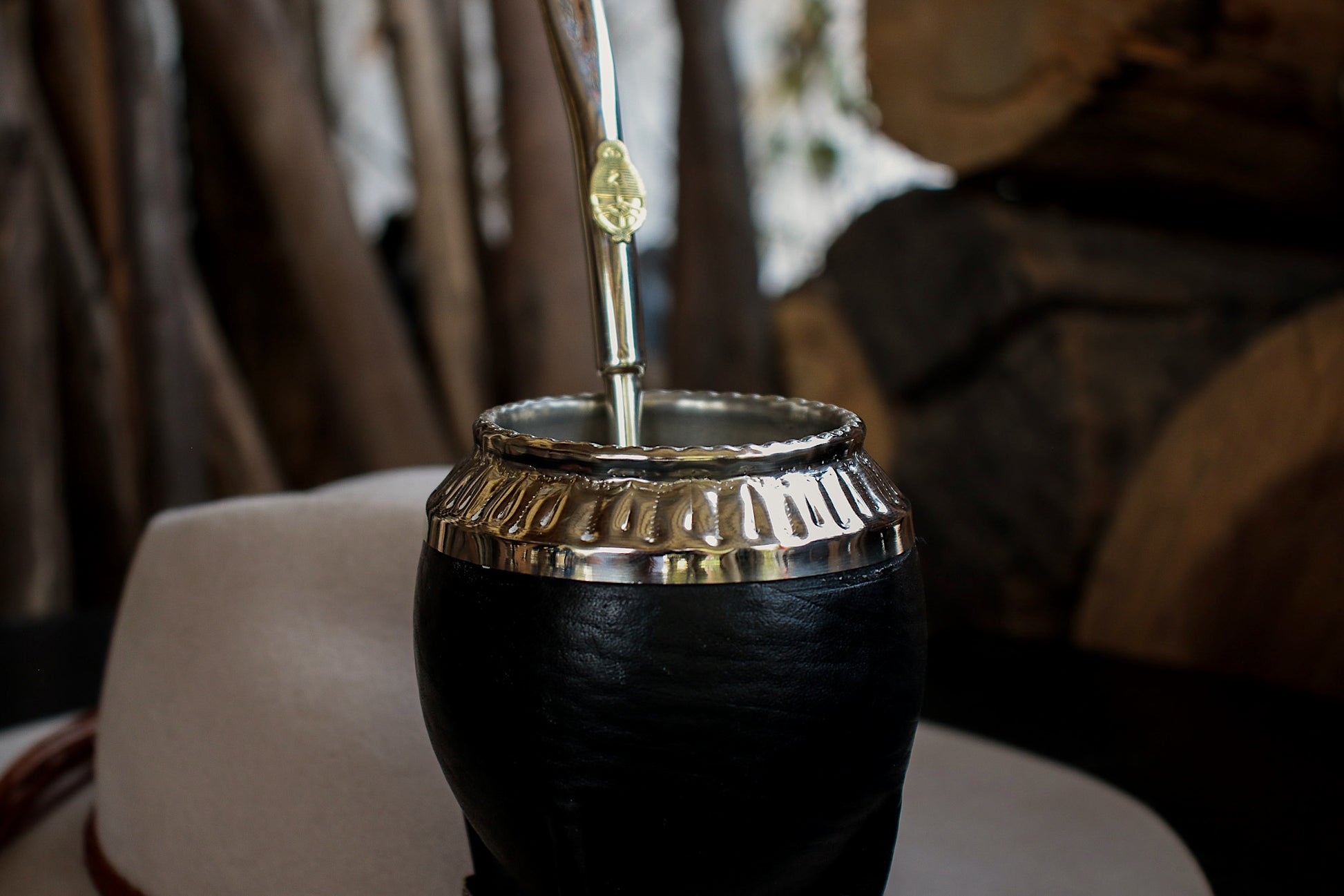 Mate de Cuero y Alpaca con Bombilla Escudo