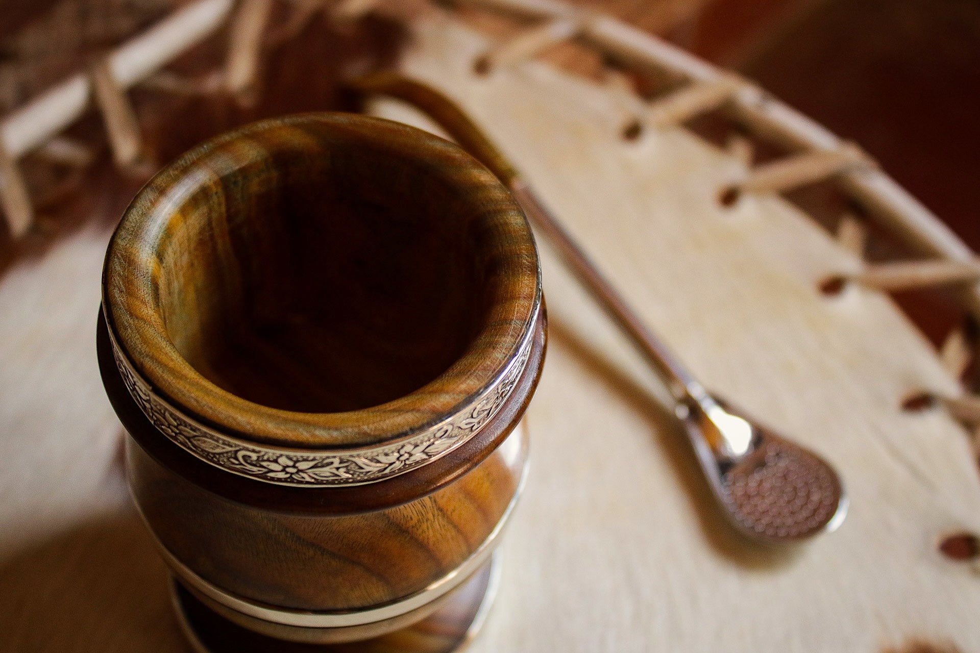 Nuestros mates de tienen un proceso de secado de 6 meses luego de haber sido calados y torneados a mano desde una pieza de palo santo.