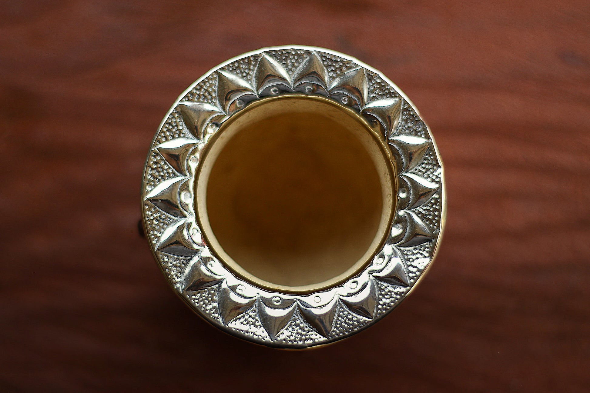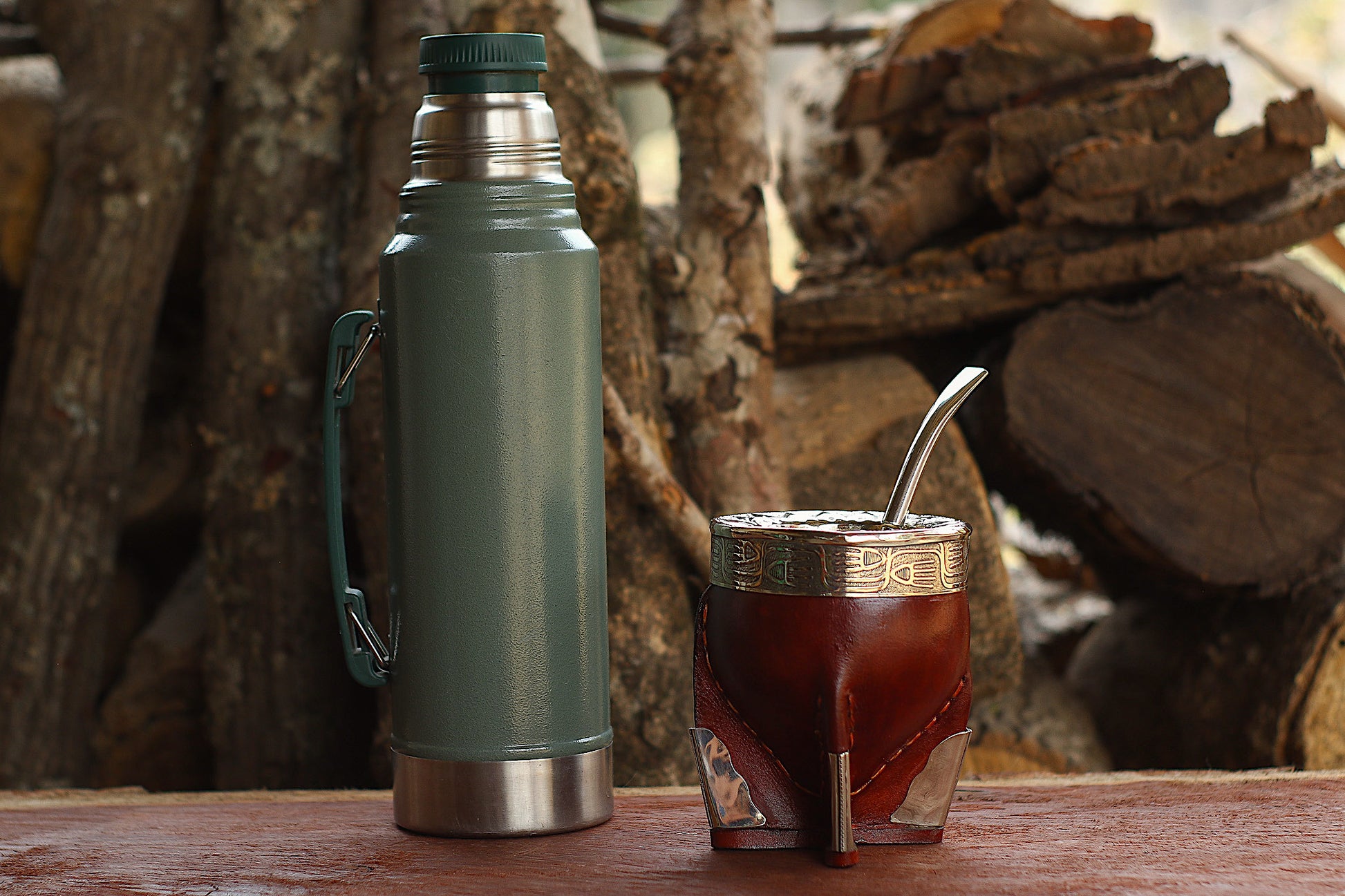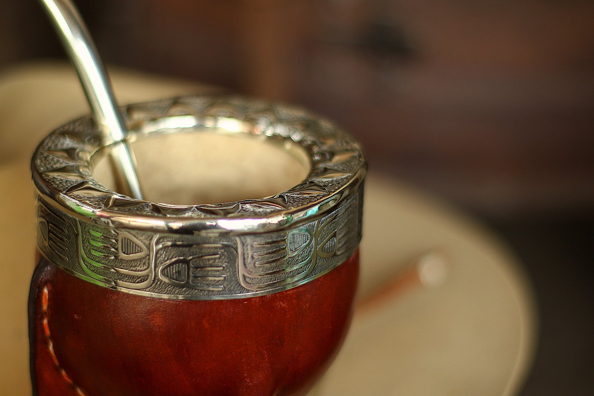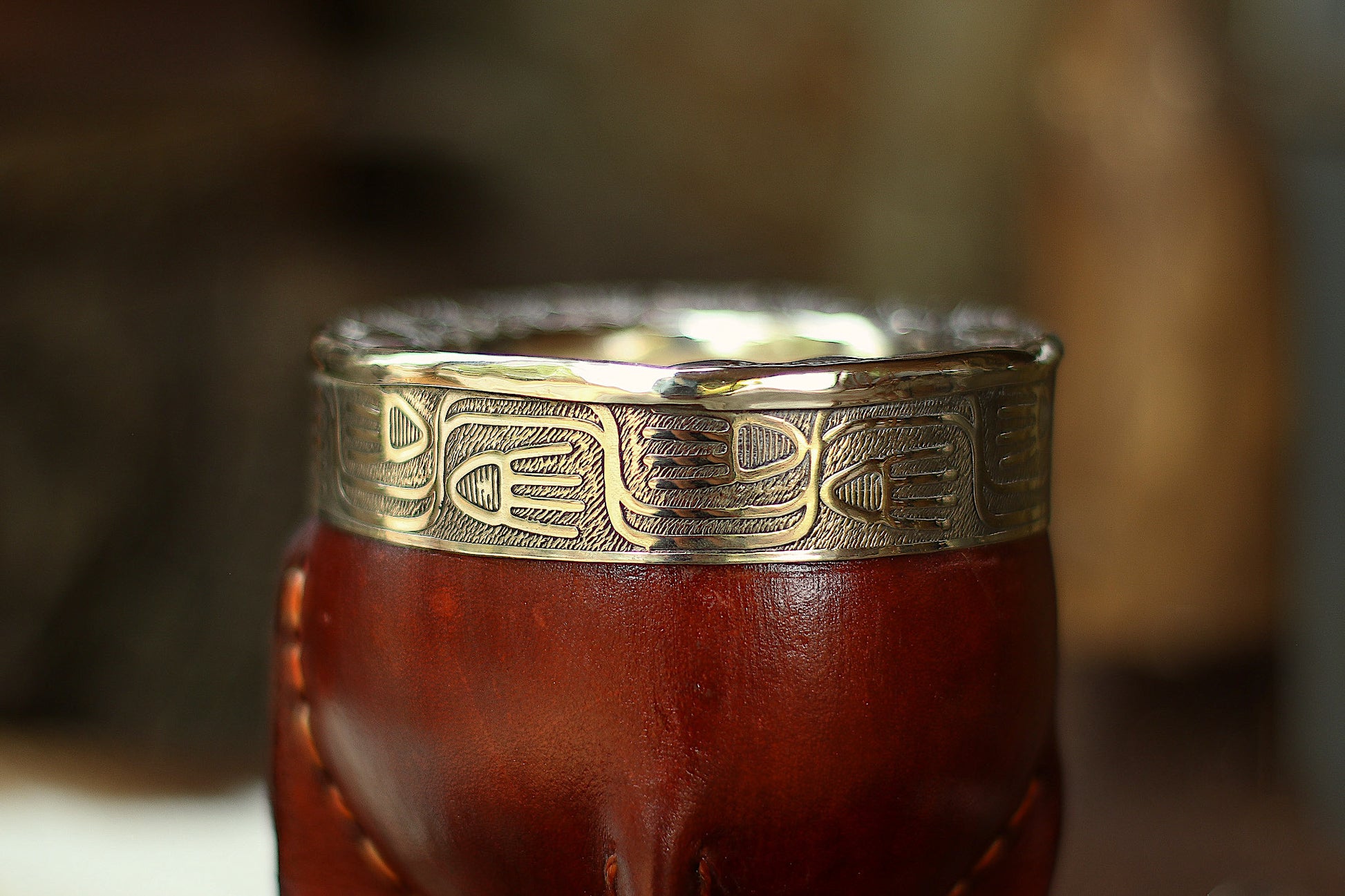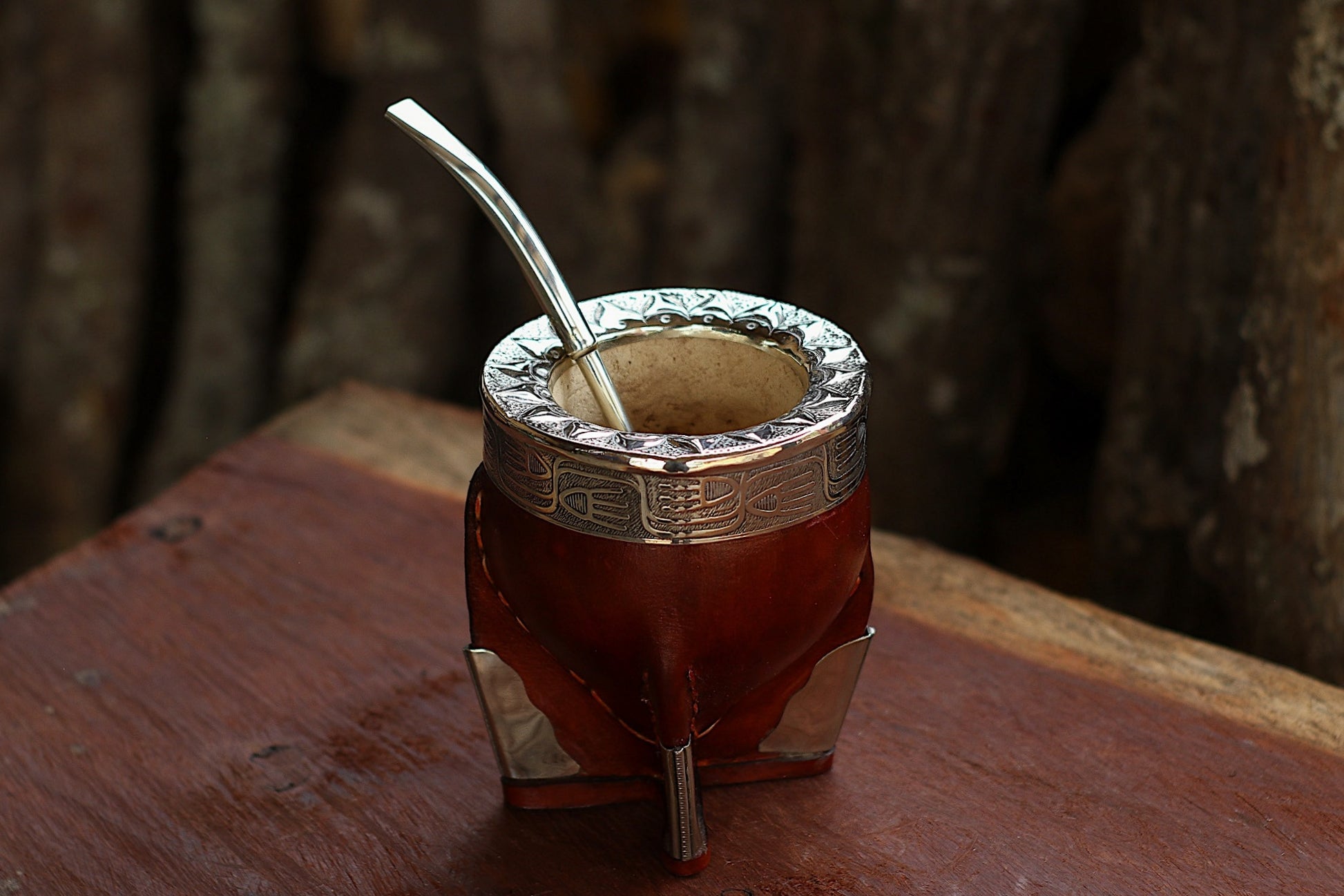 Mate imperial de porongo forrado artesanalmente en cuero natural.