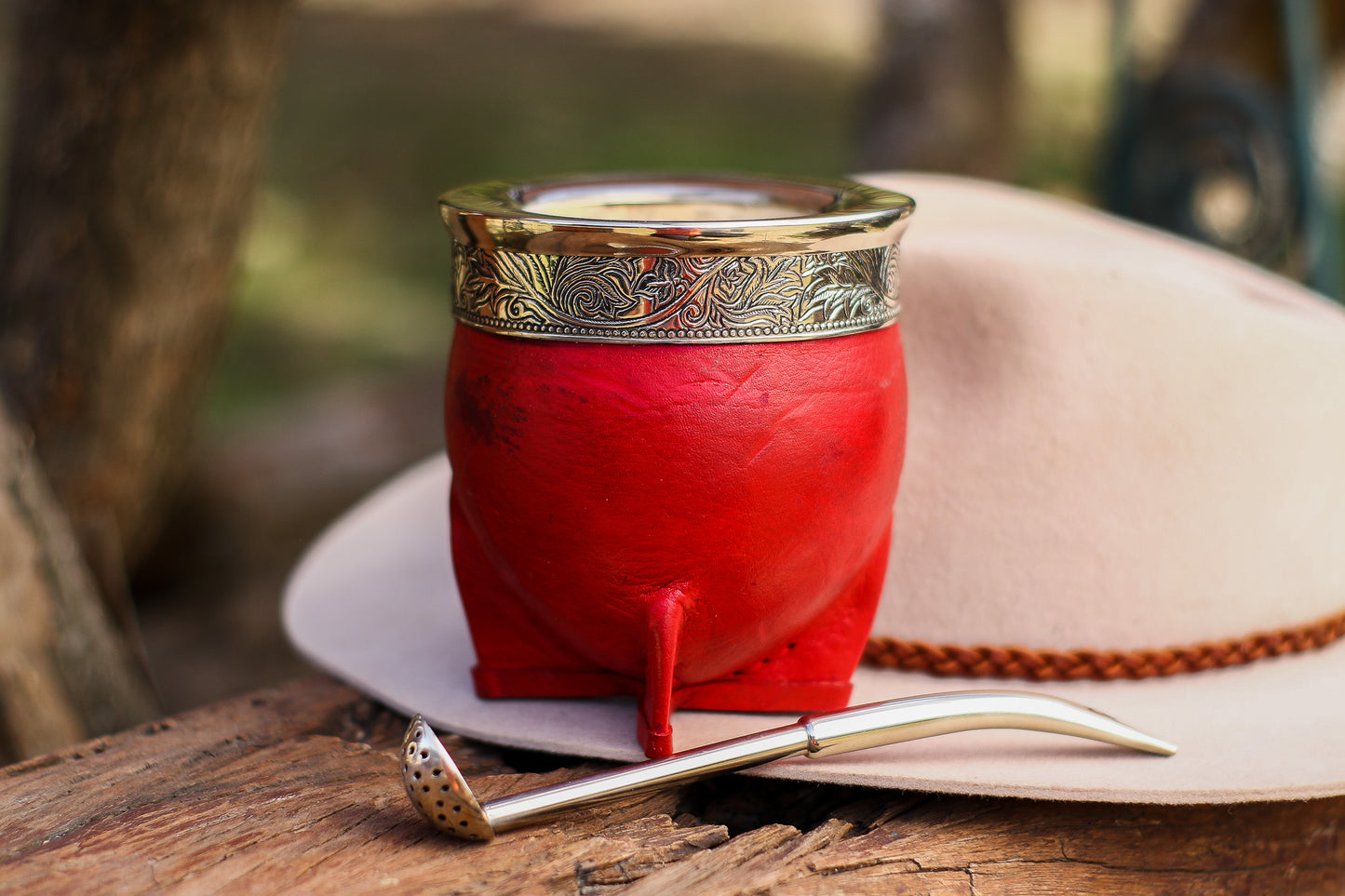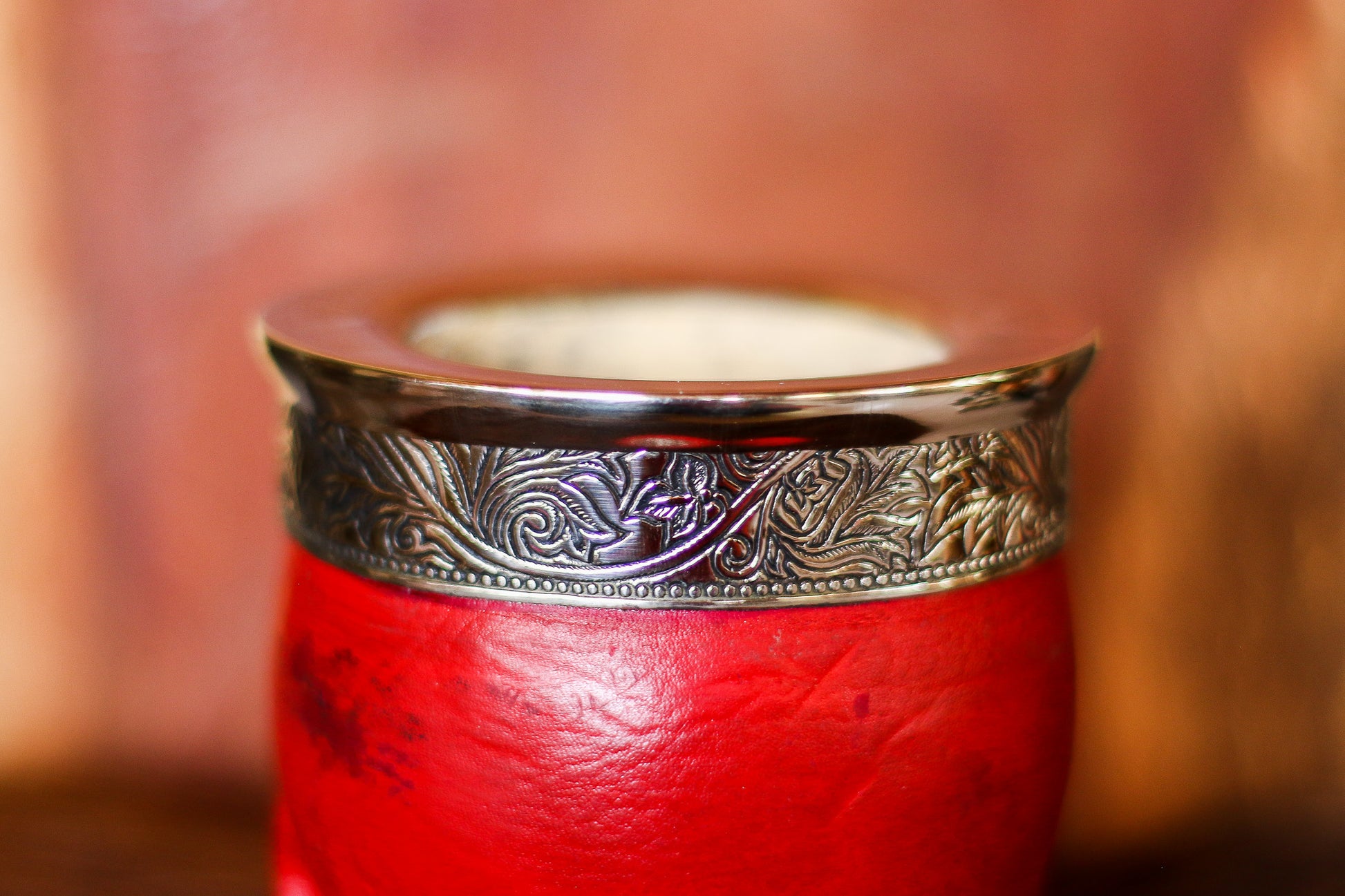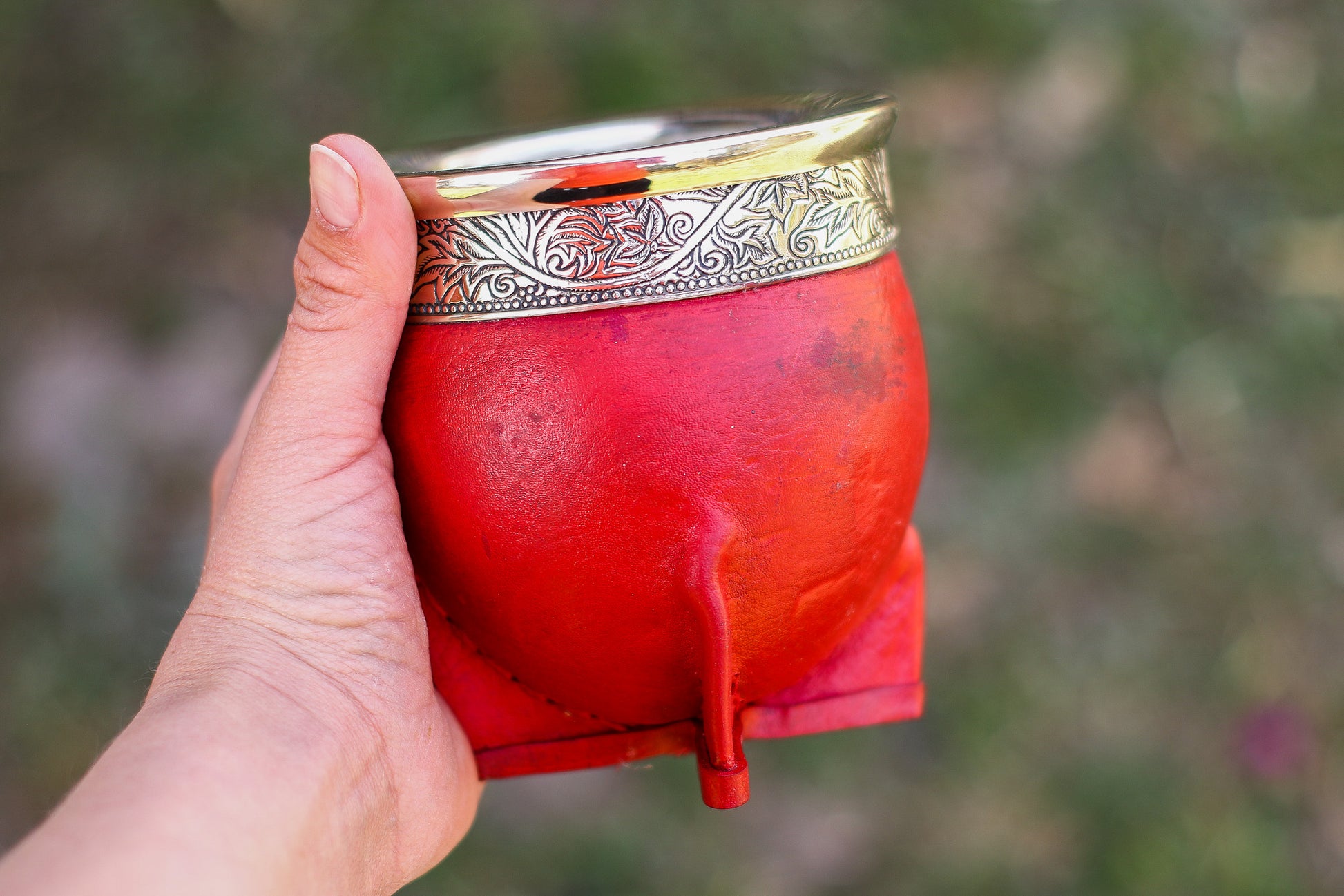 Mate imperial de porongo forrado artesanalmente en cuero natural.