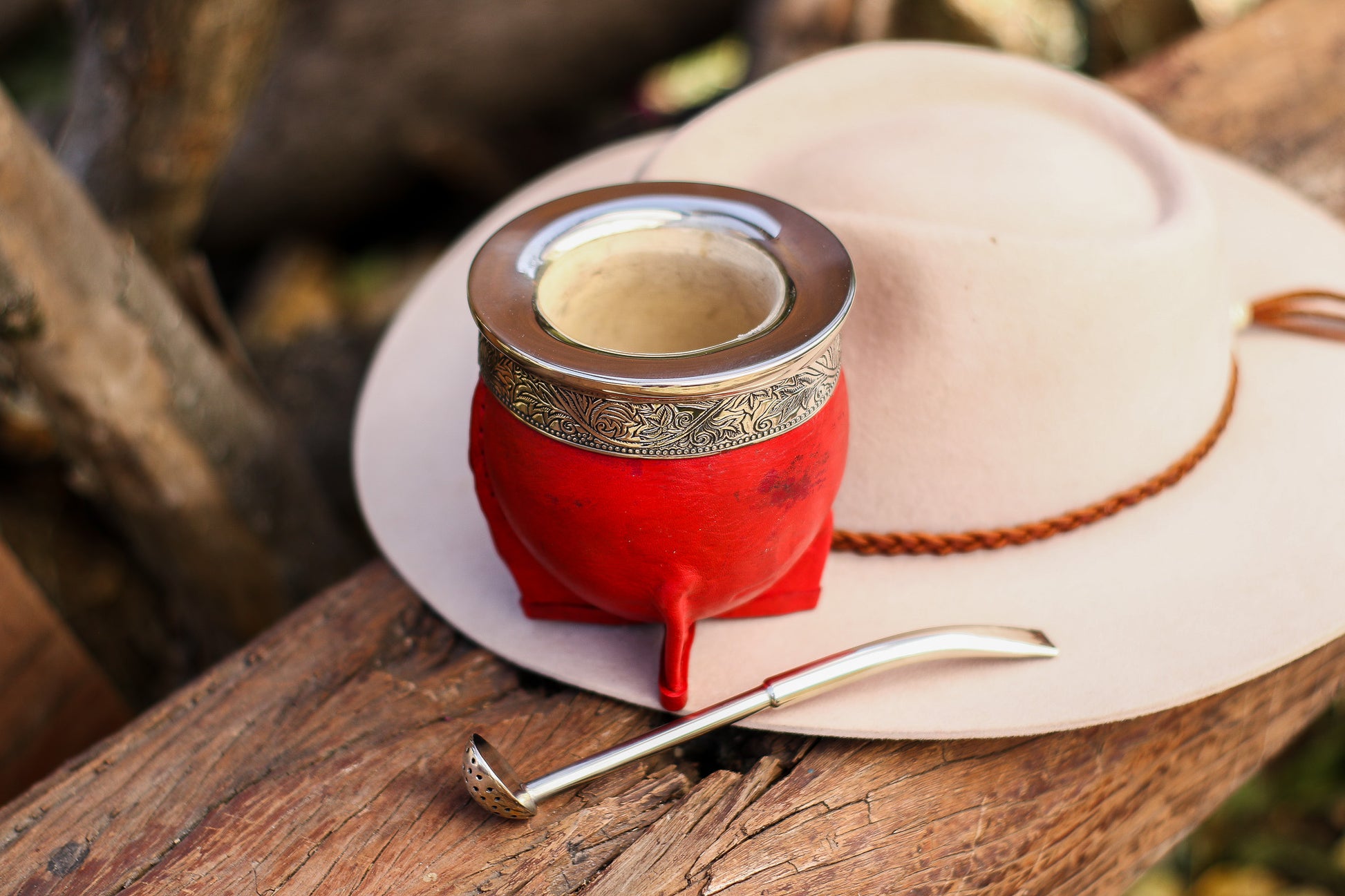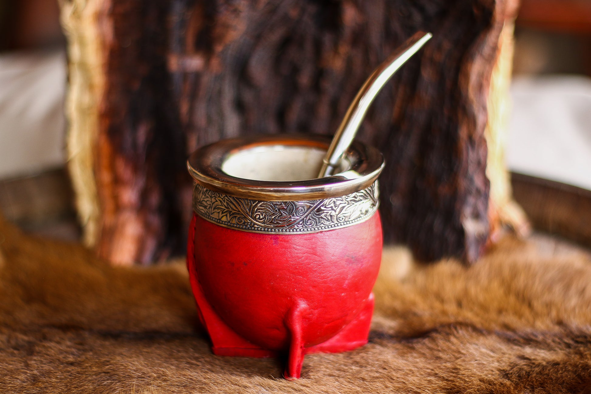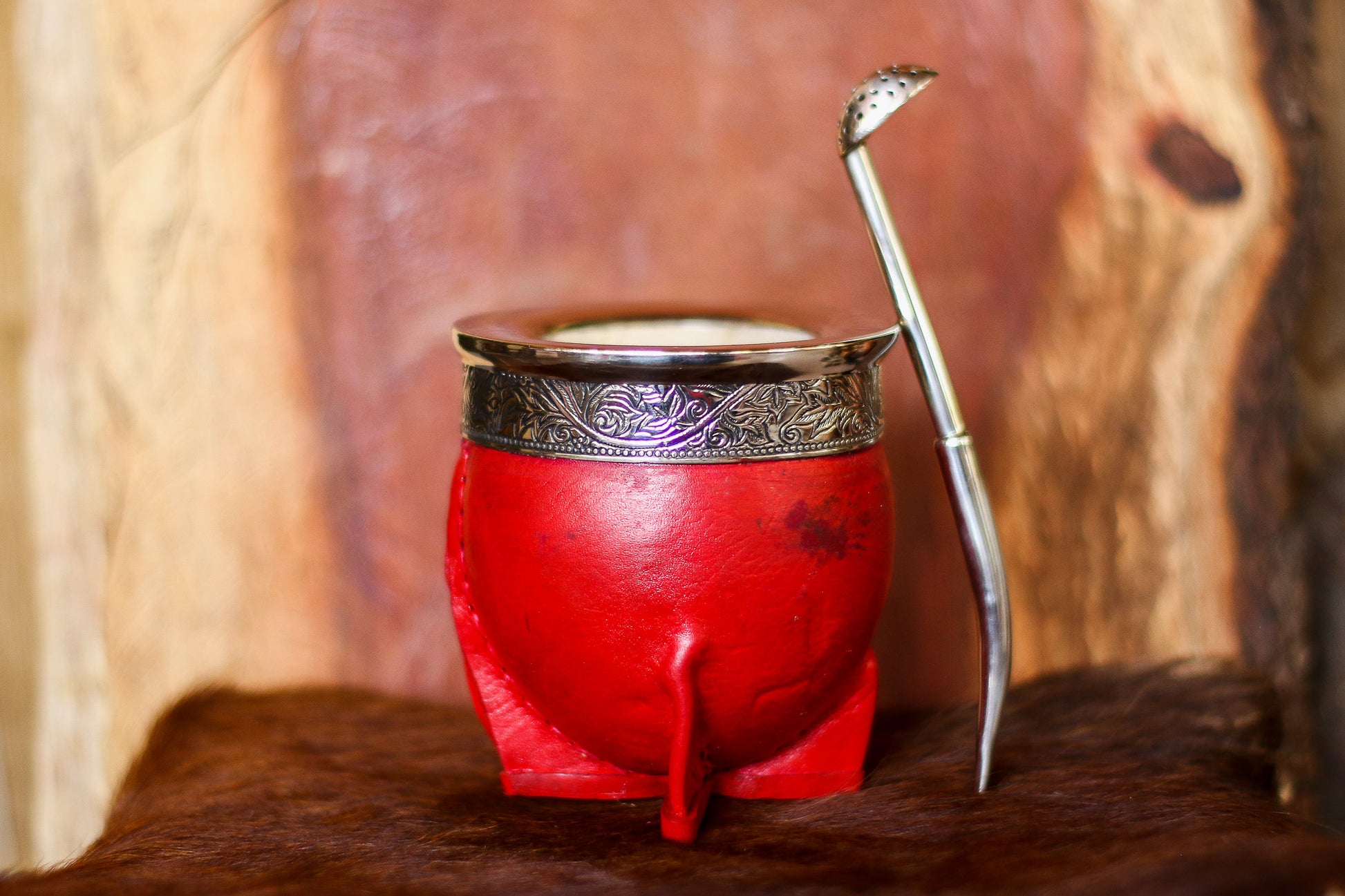 Mate imperial de porongo forrado artesanalmente en cuero natural.