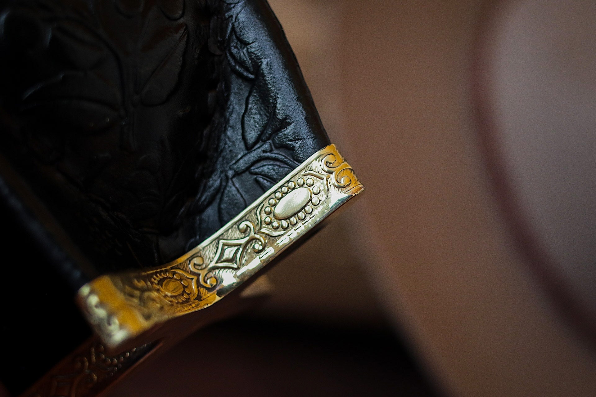 Mate imperial de porongo forrado artesanalmente en cuero natural, repujado artesanalmente