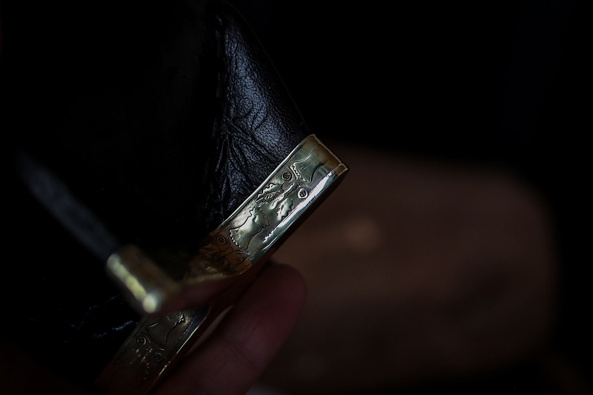 El cincelado en virola y base es a mano con bronce y esta soldado con plata