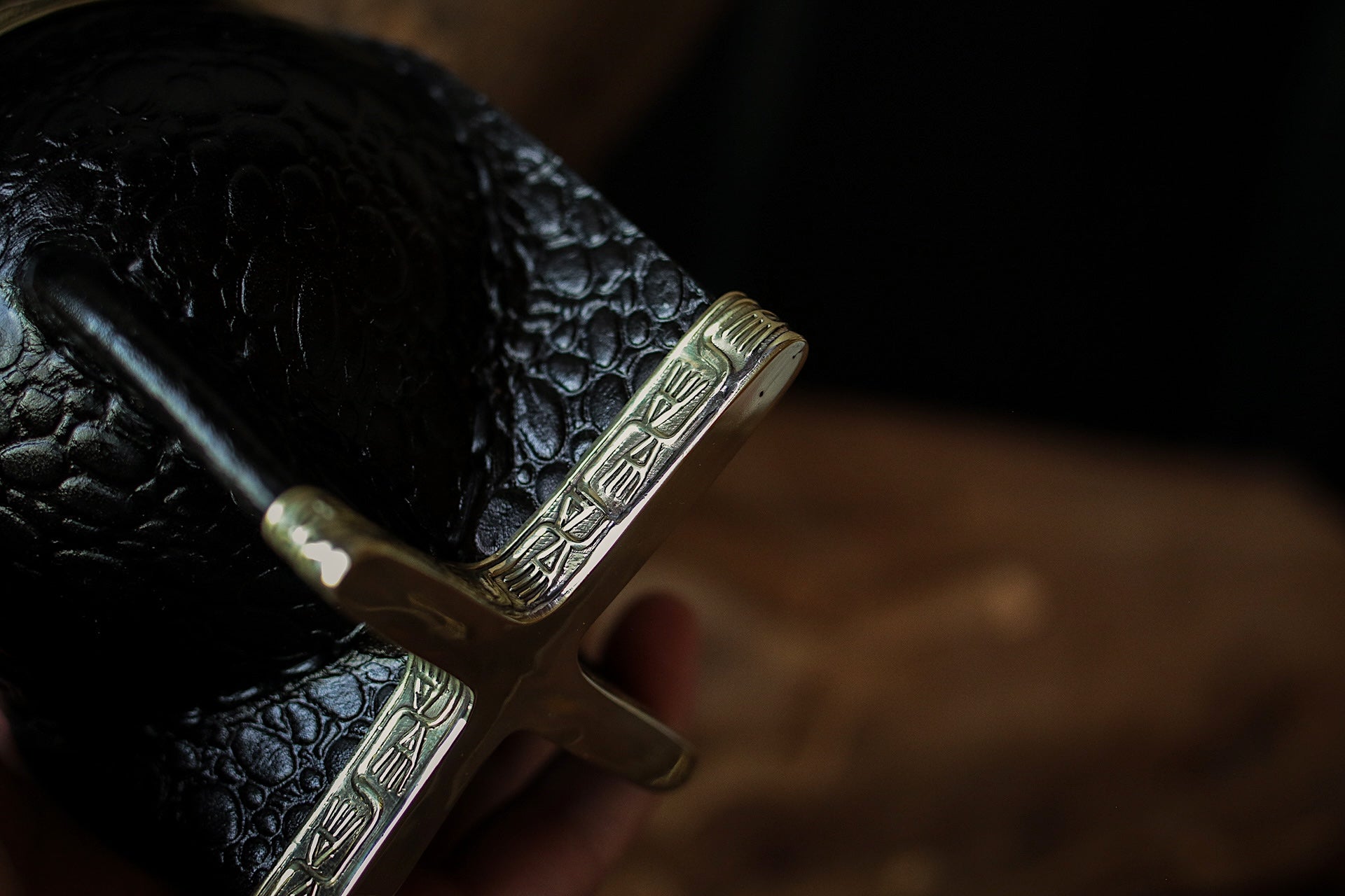 El cincelado en virola y base es a mano con bronce y esta soldado con plata