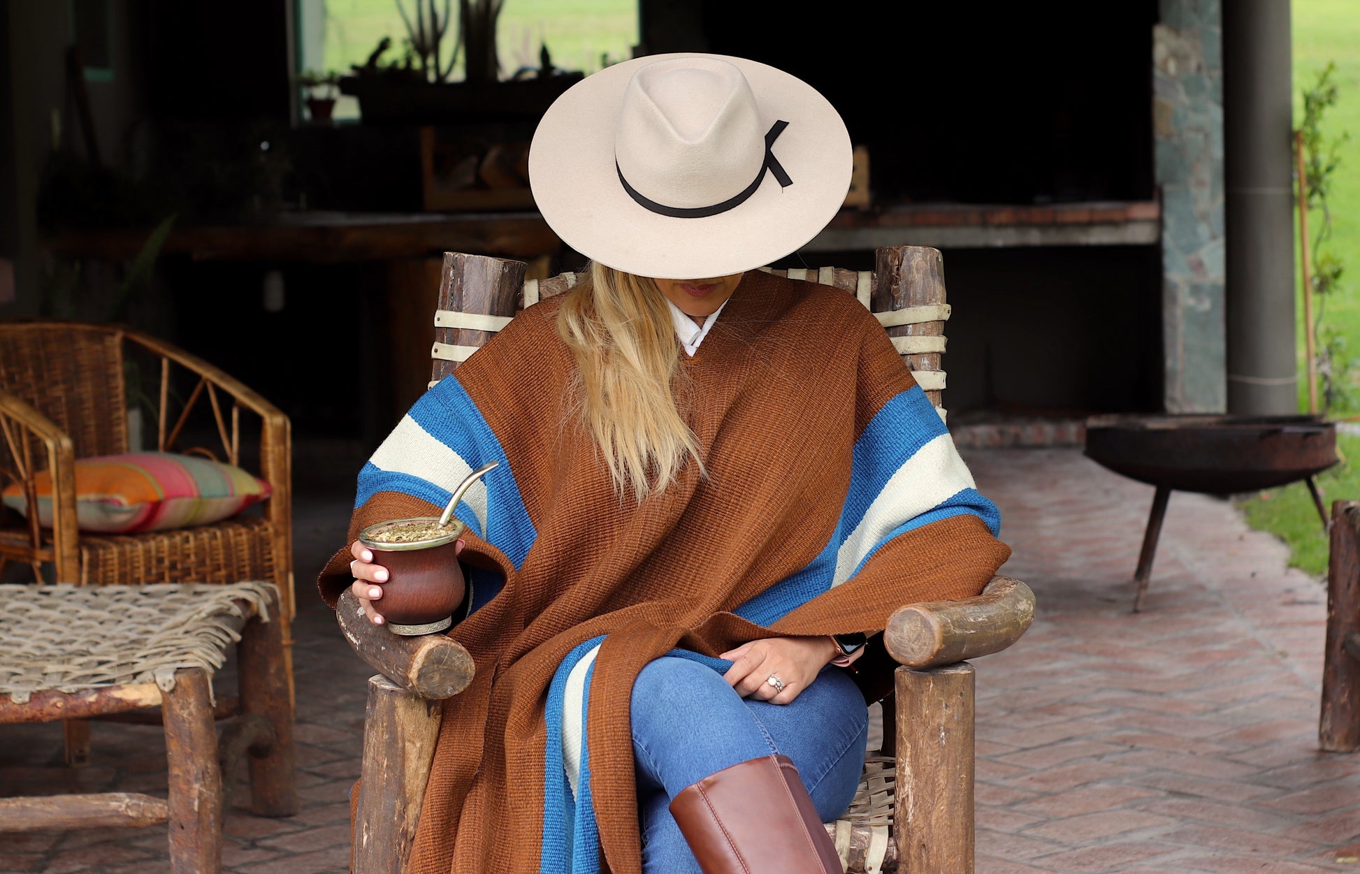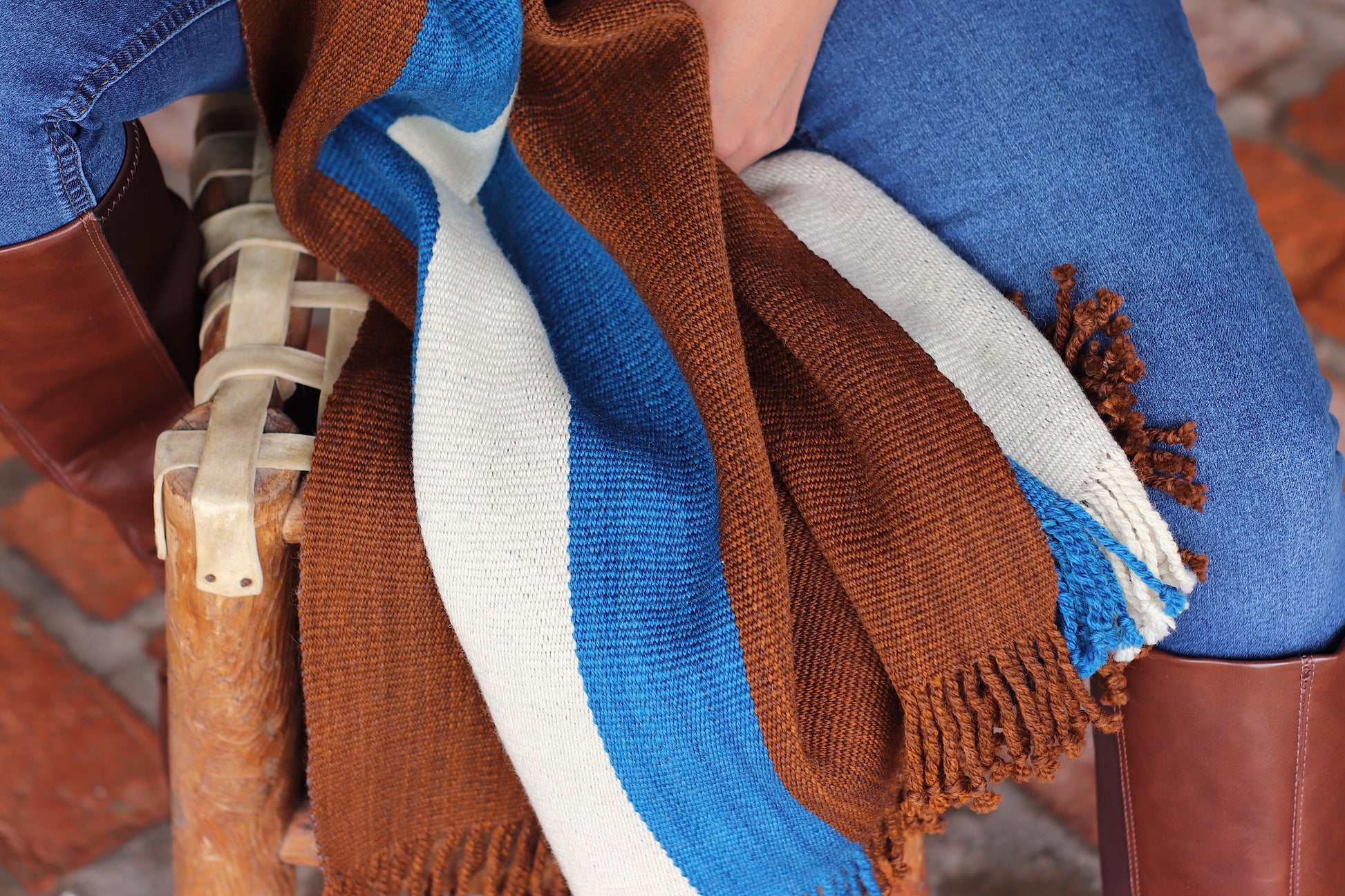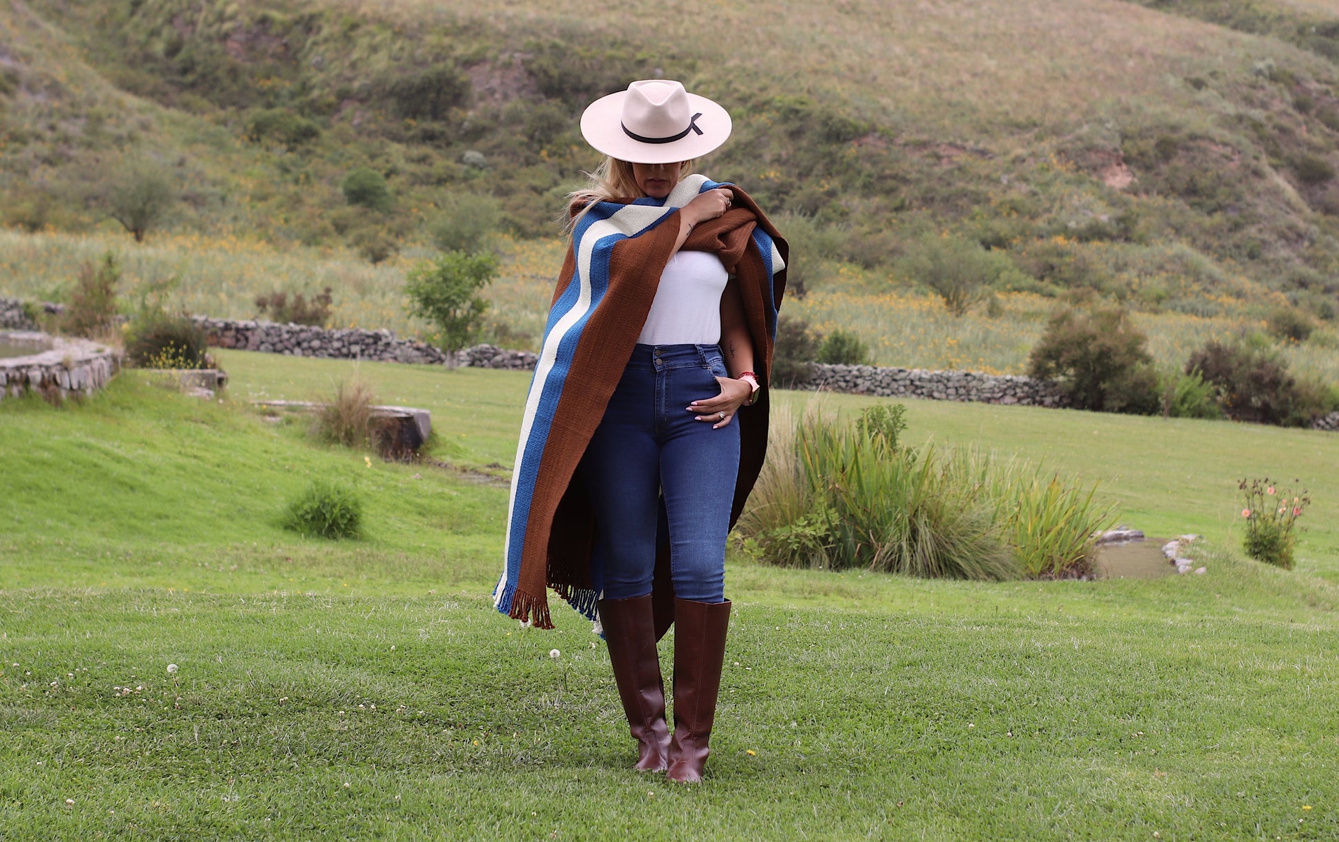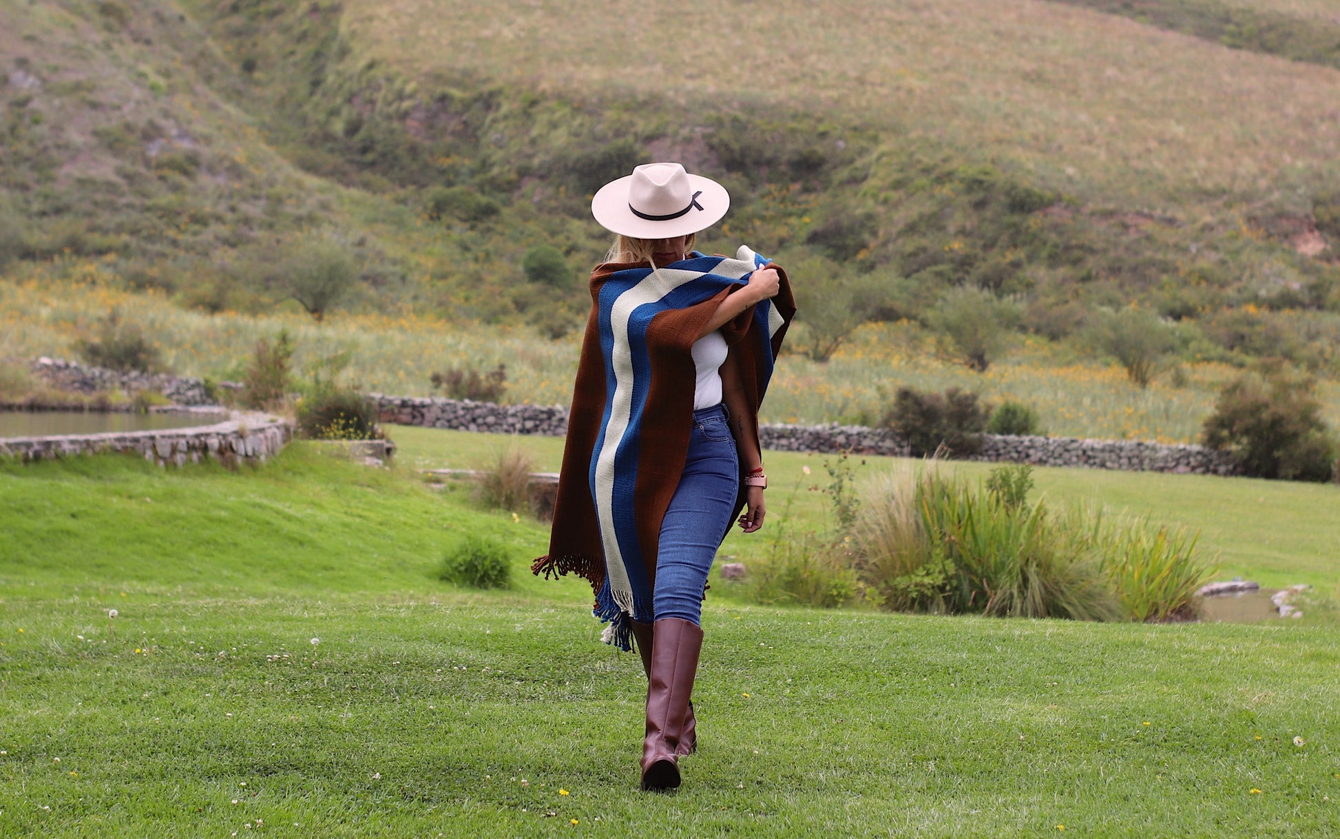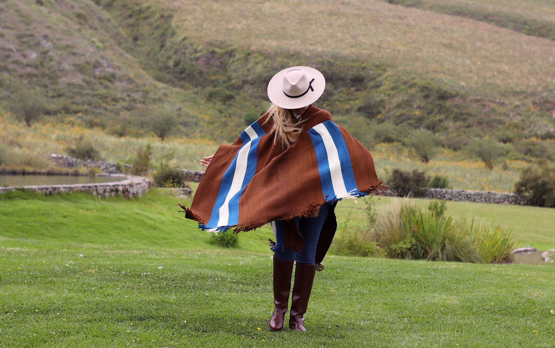 El poncho es una pieza única tejido artesanalmente en telar criollo, de alta densidad de trama cerrada y liviana en dos paños color Tabaco natural