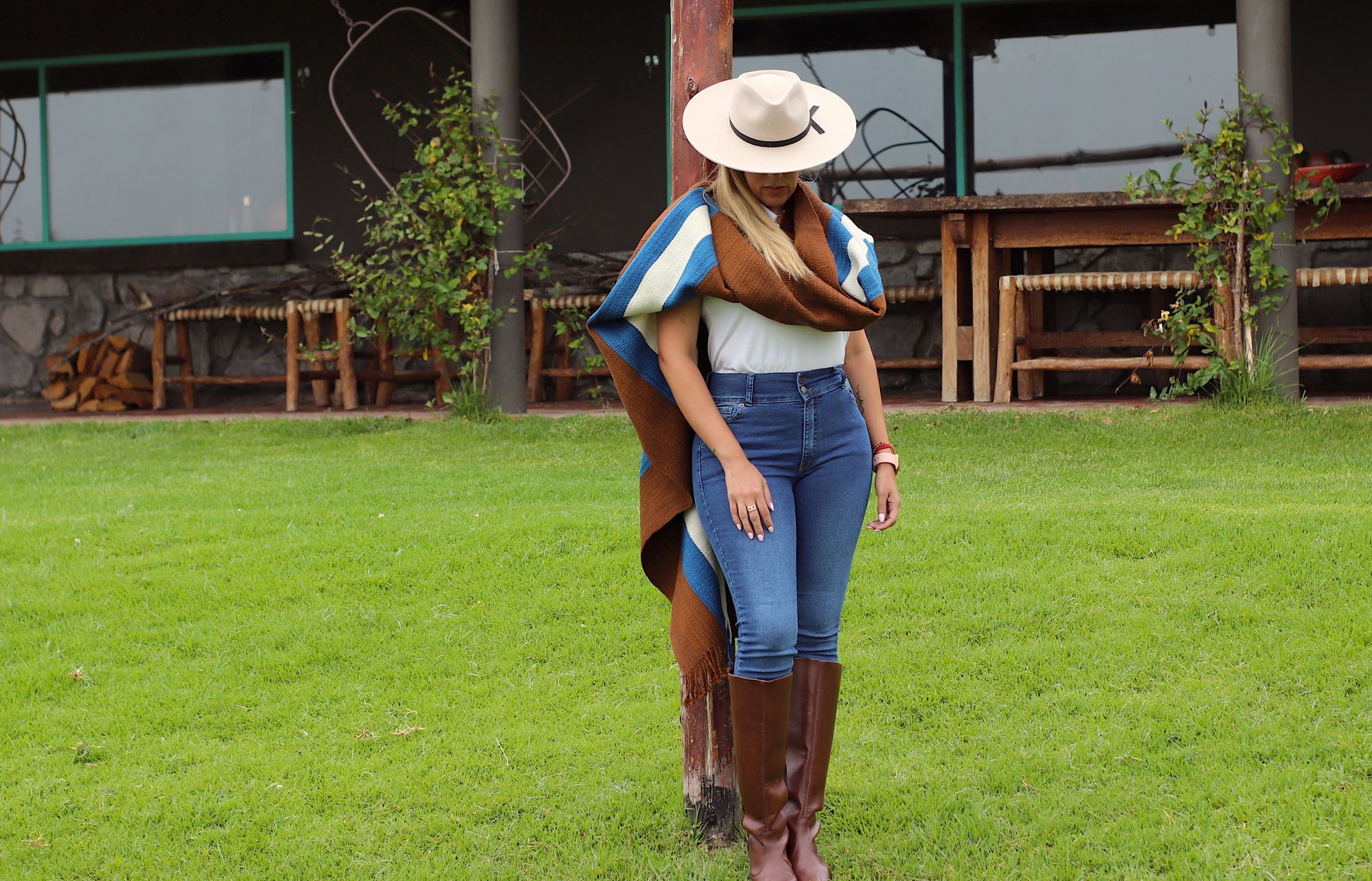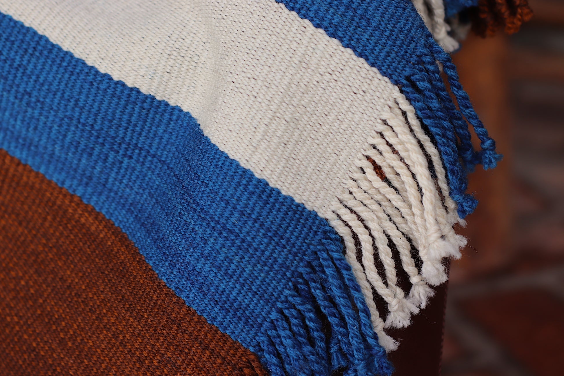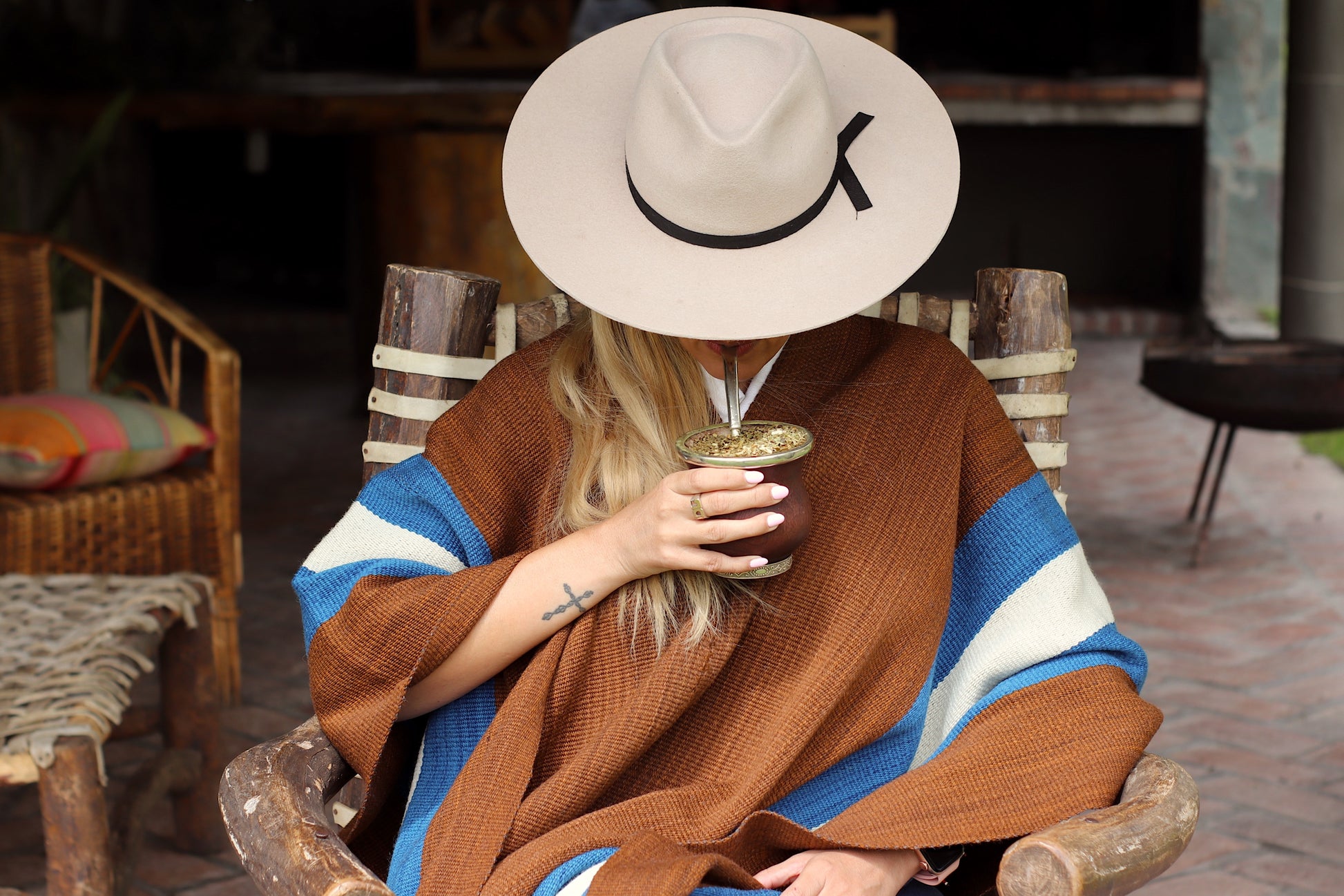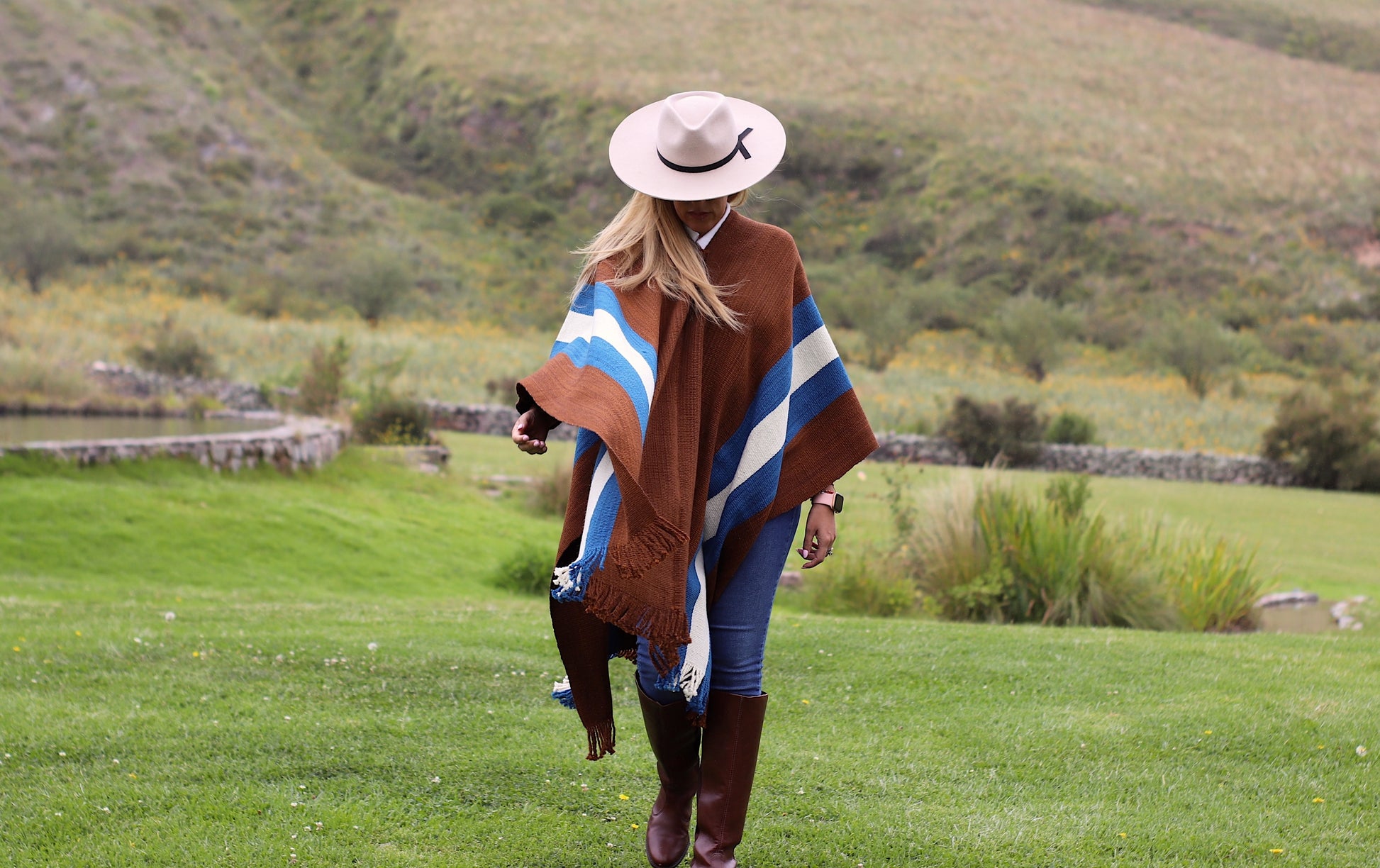 El poncho es una pieza única tejido artesanalmente en telar criollo, de alta densidad de trama cerrada y liviana en dos paños color Tabaco natural