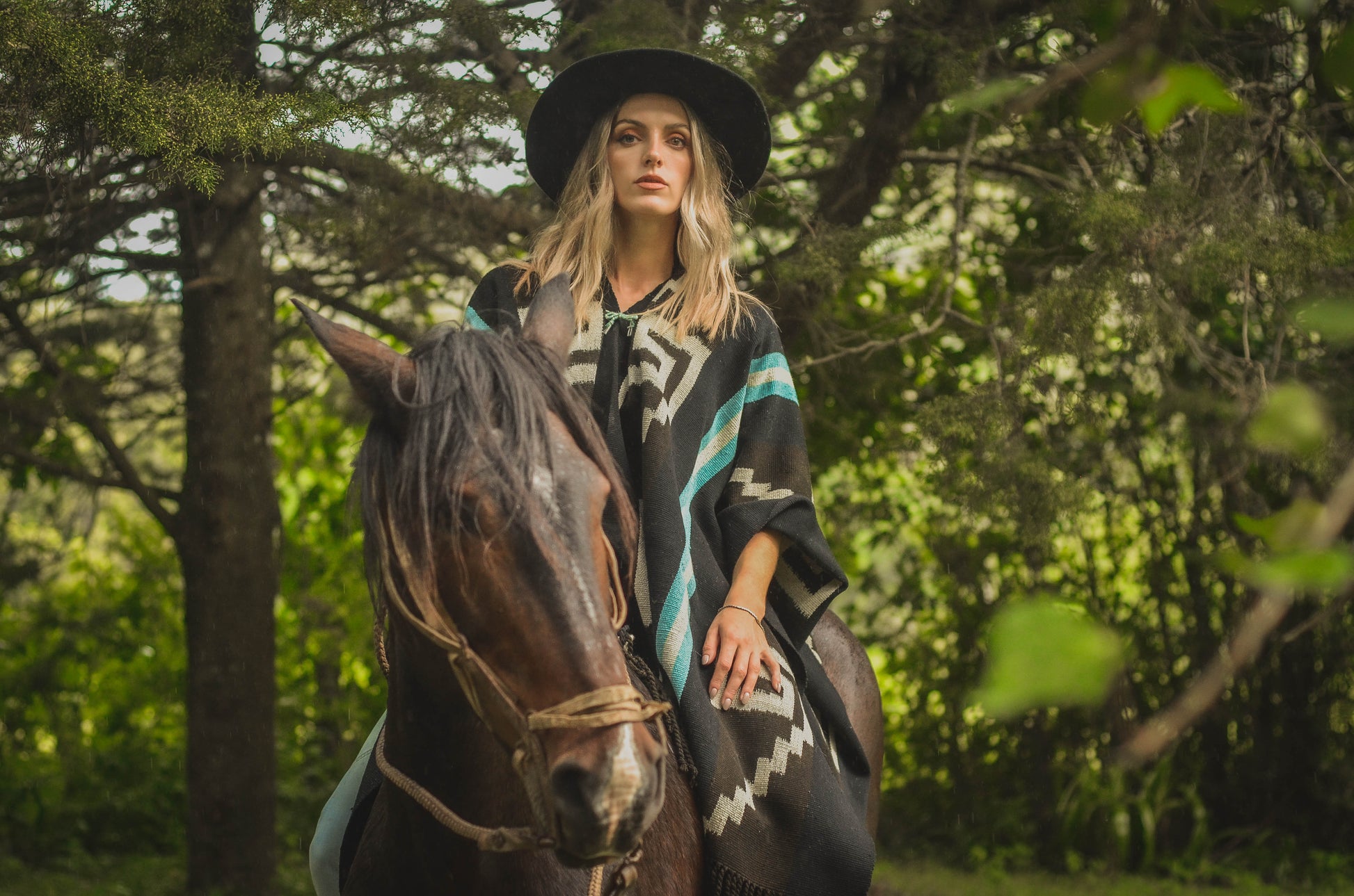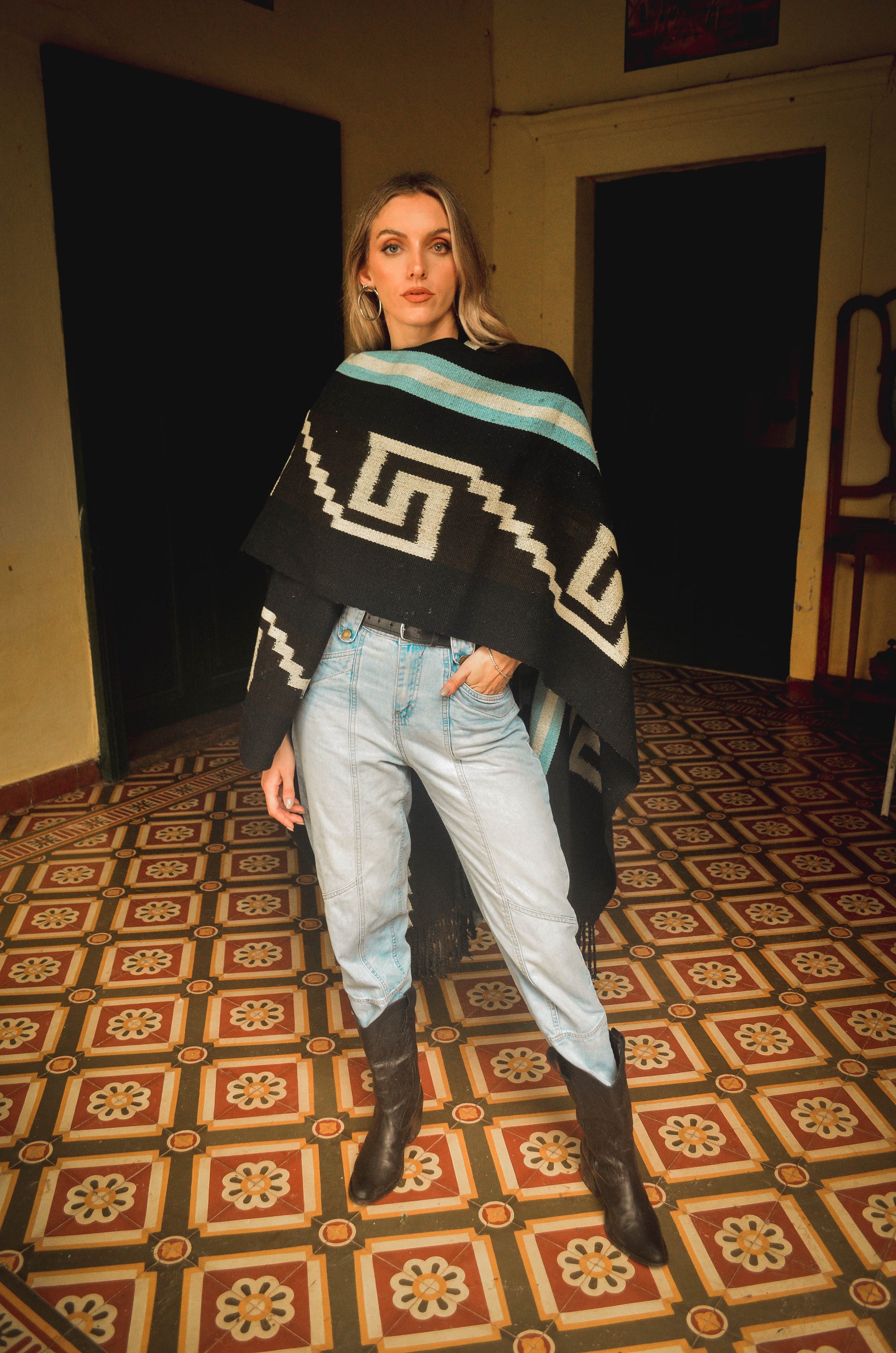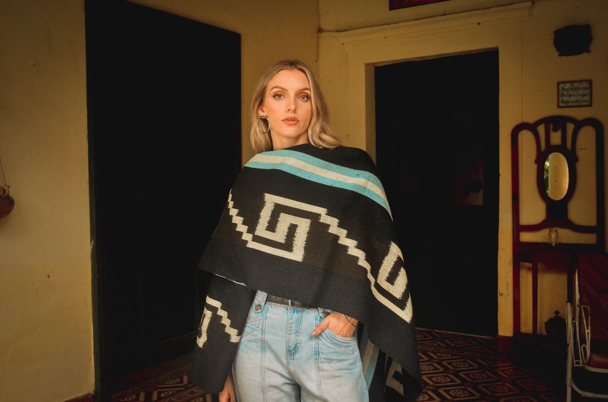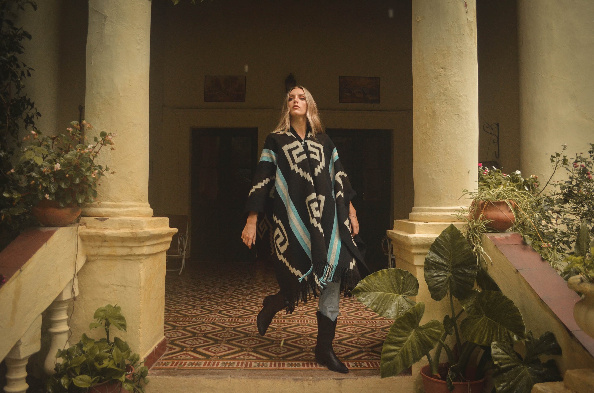 Poncho "Azurduy" es un poncho Guarda Atada y es parte de la Colección "Federal" de 23 obras textiles Uayno, es una pieza única tejida artesanalmente con hilos de lana de oveja en telar criollo.