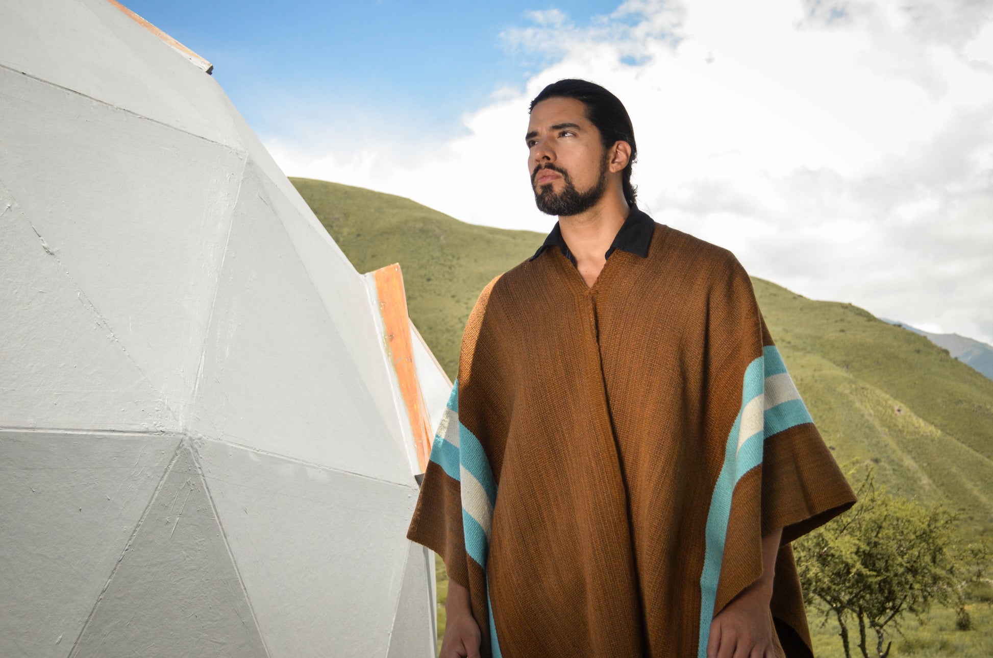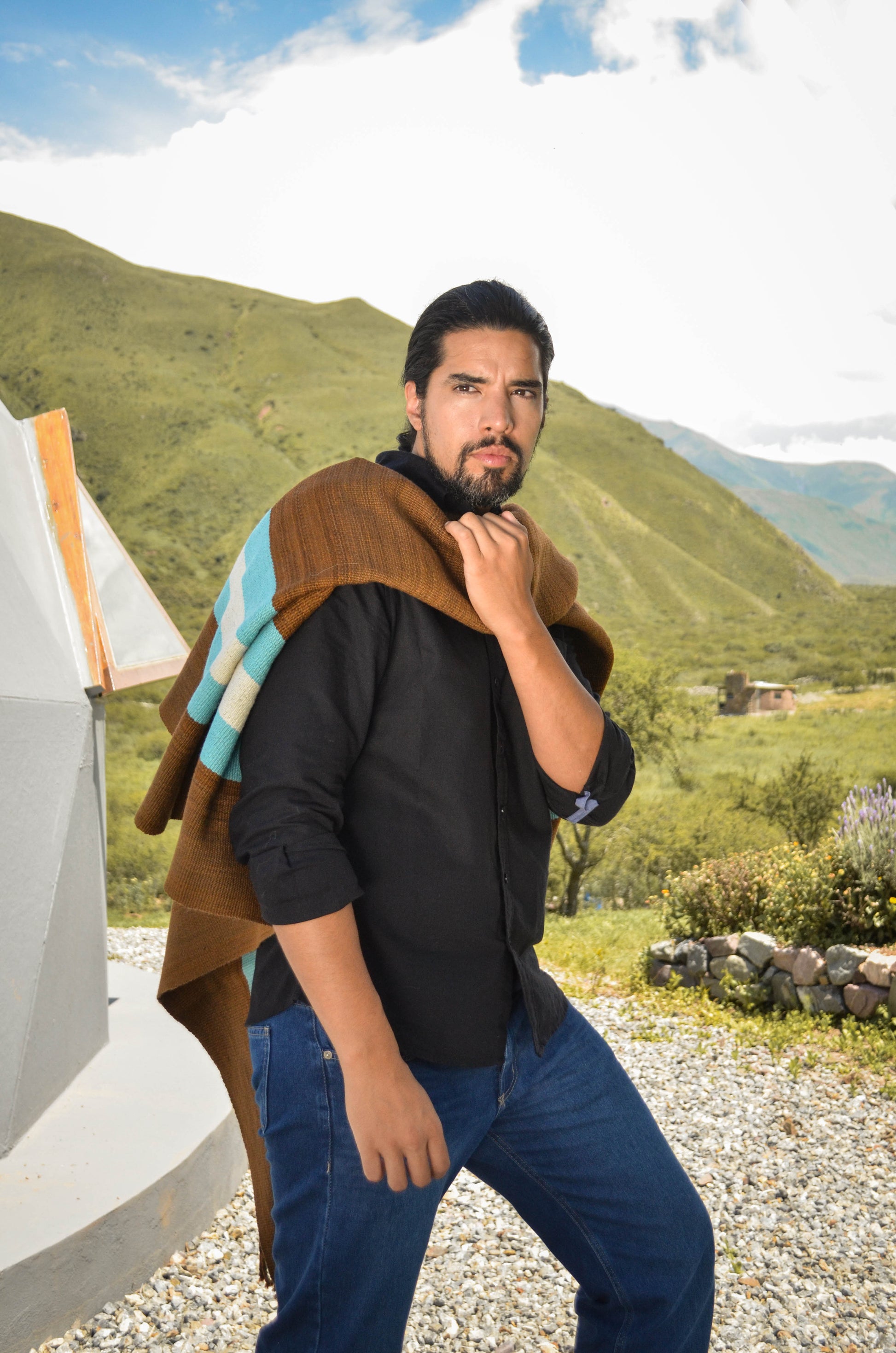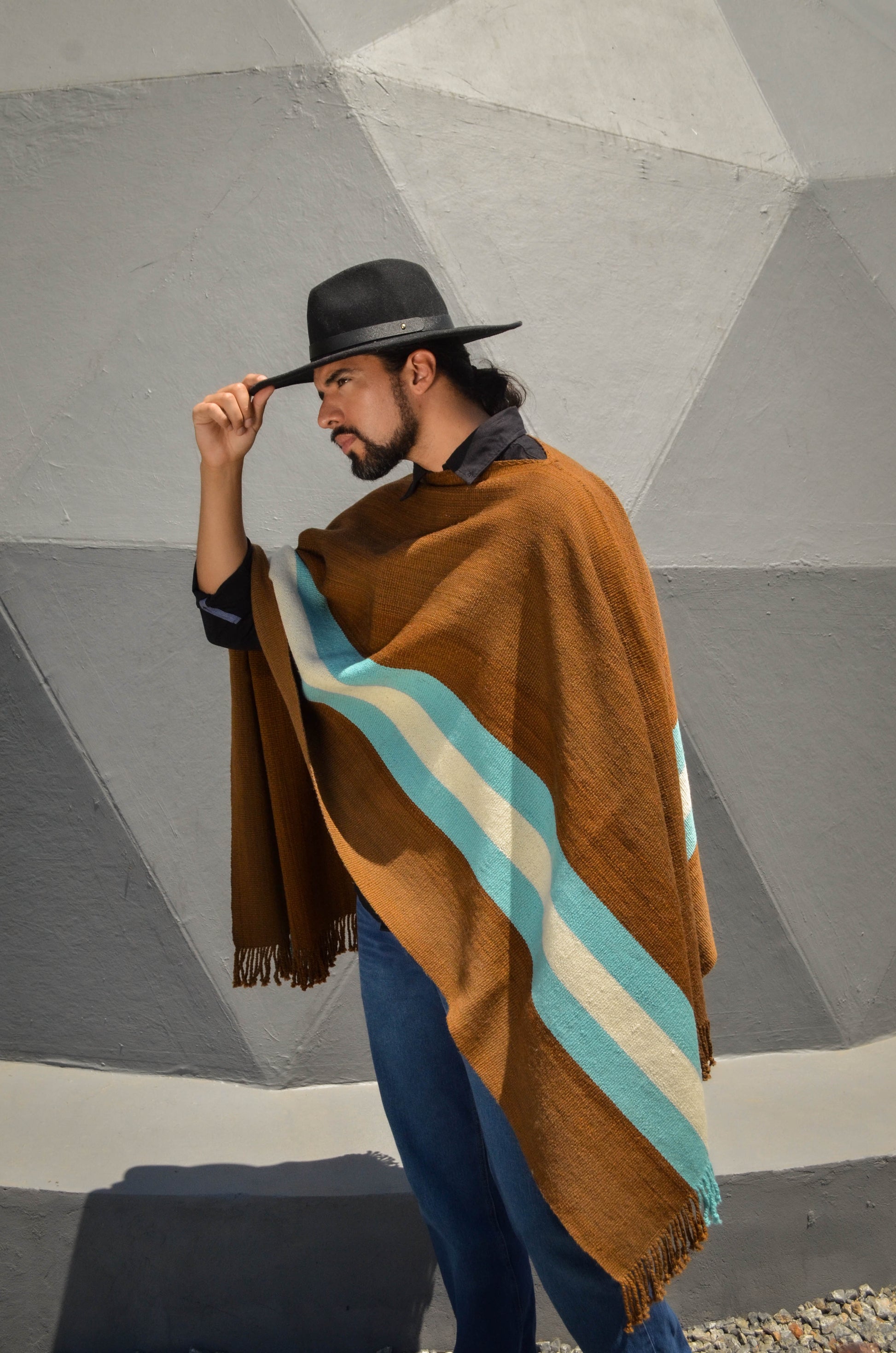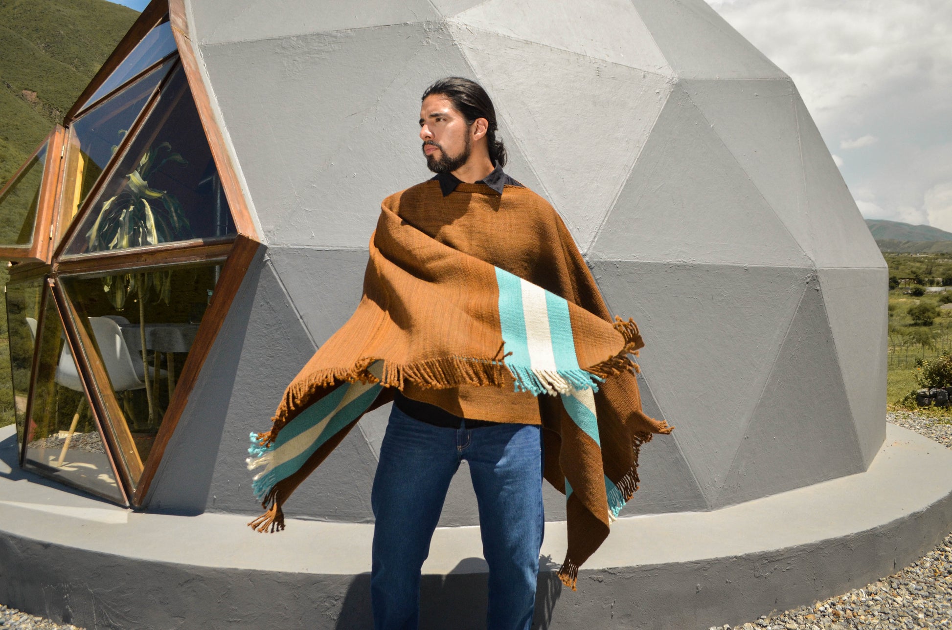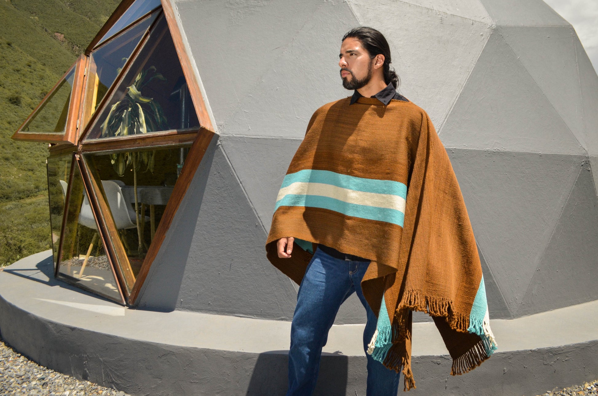El poncho es una pieza única tejido artesanalmente en telar criollo, de alta densidad de trama cerrada y liviana en dos paños color Chocolate natural