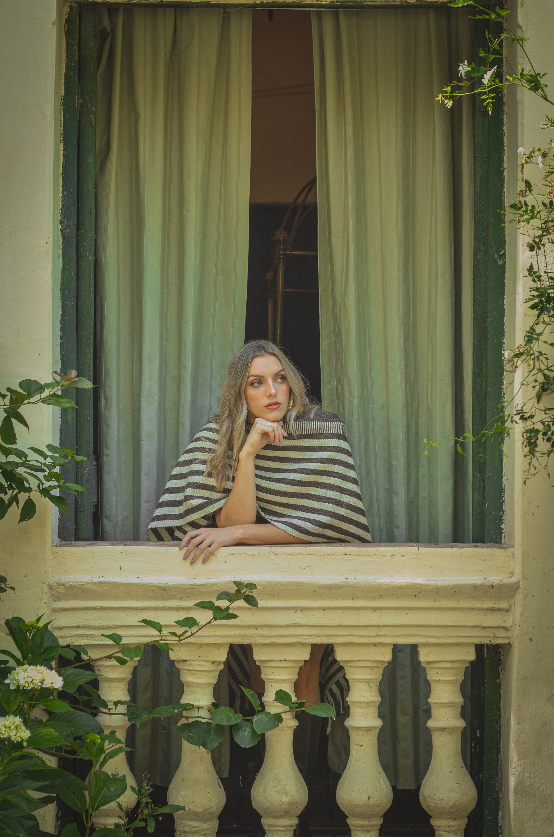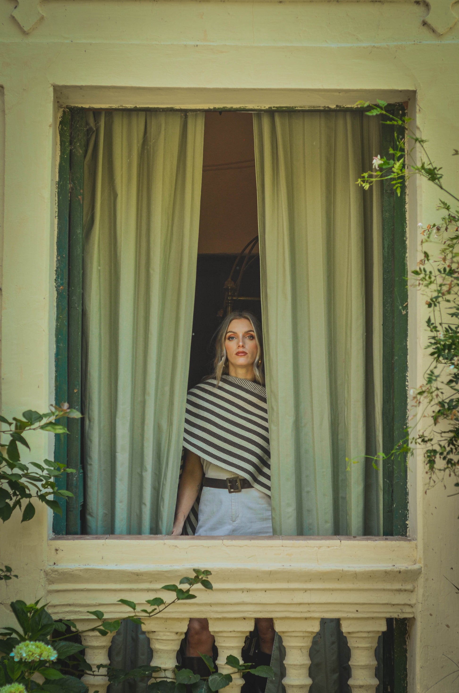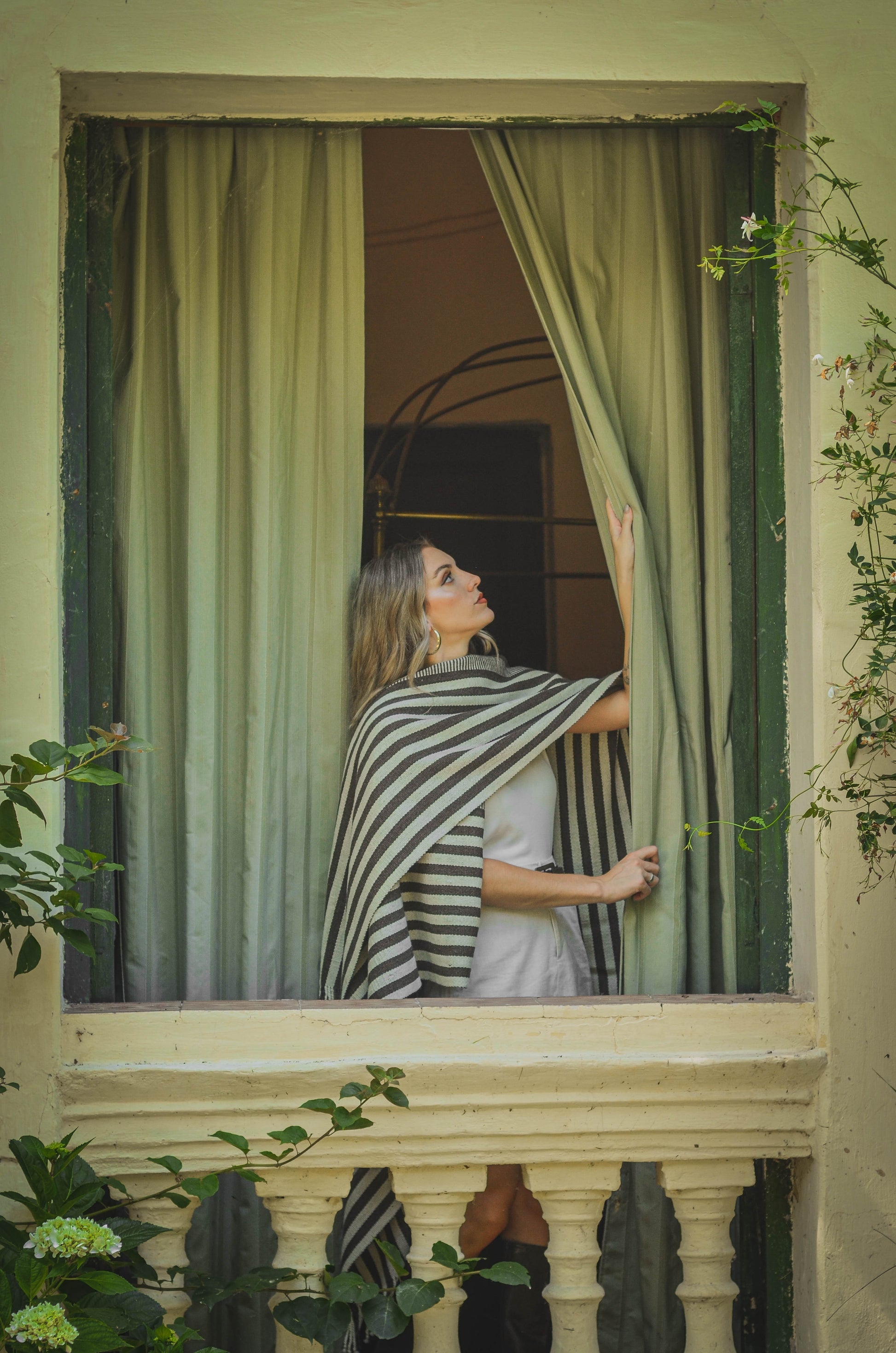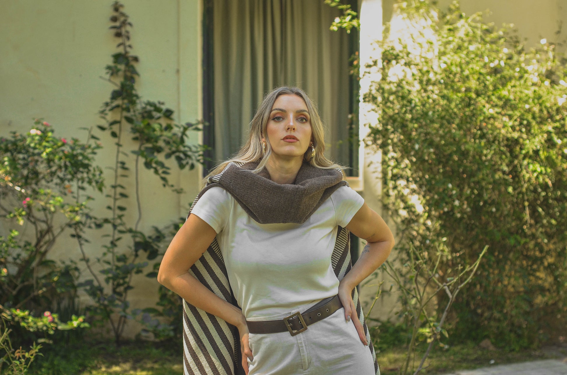 El poncho es una pieza única tejido artesanalmente en telar criollo, de alta densidad de trama cerrada y liviana en dos paños color Adobe natural