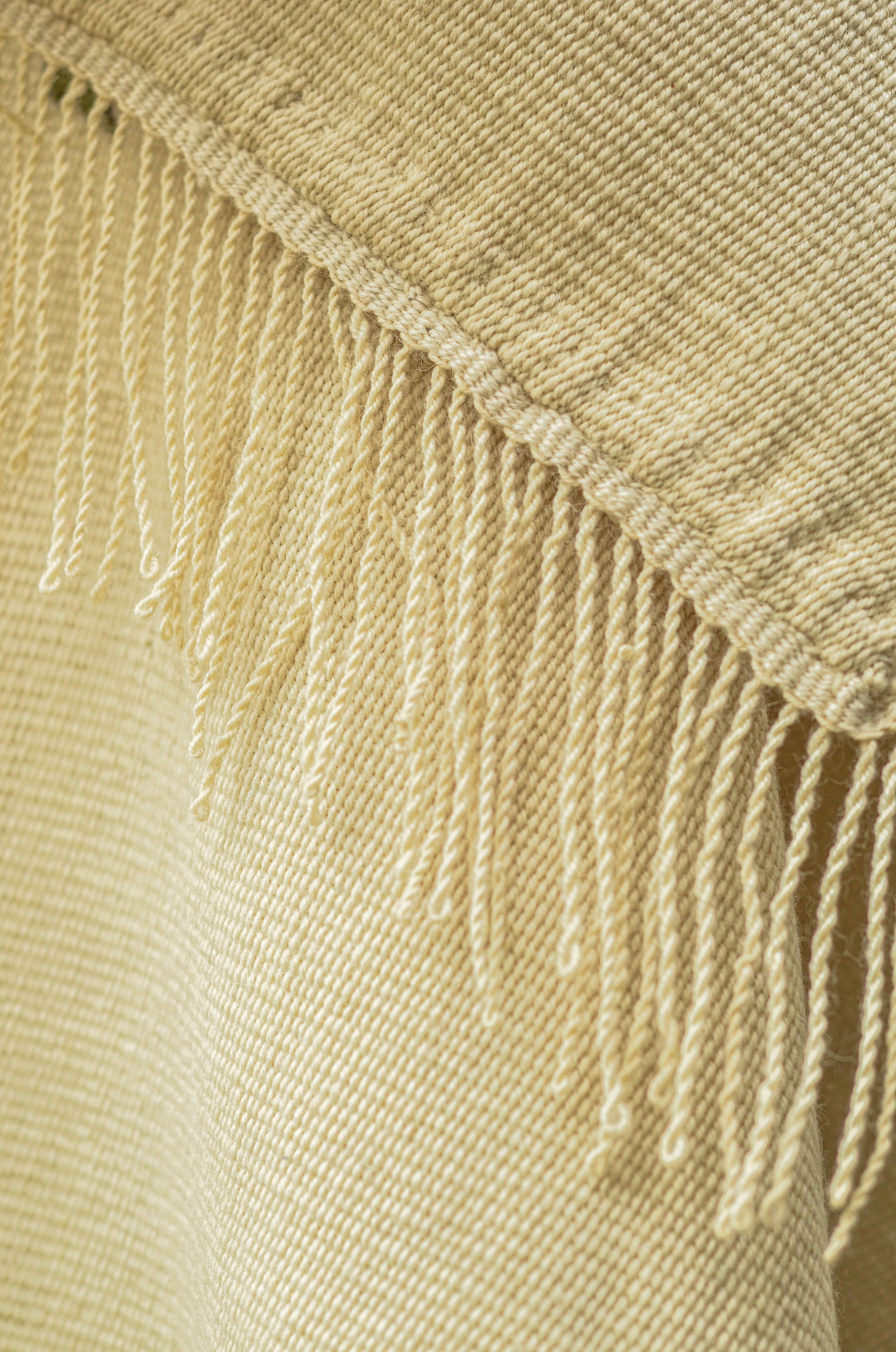 Sobre un paño horizontal en telar diseñamos el poncho, es un tejido de alta densidad de trama cerrada en 7 tonos de diferentes.
